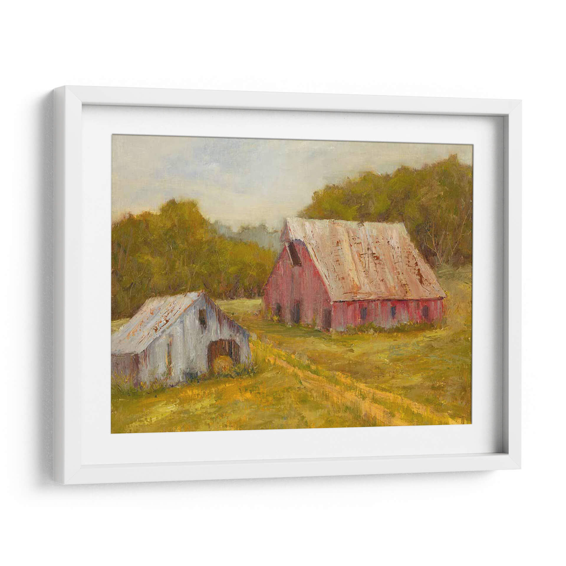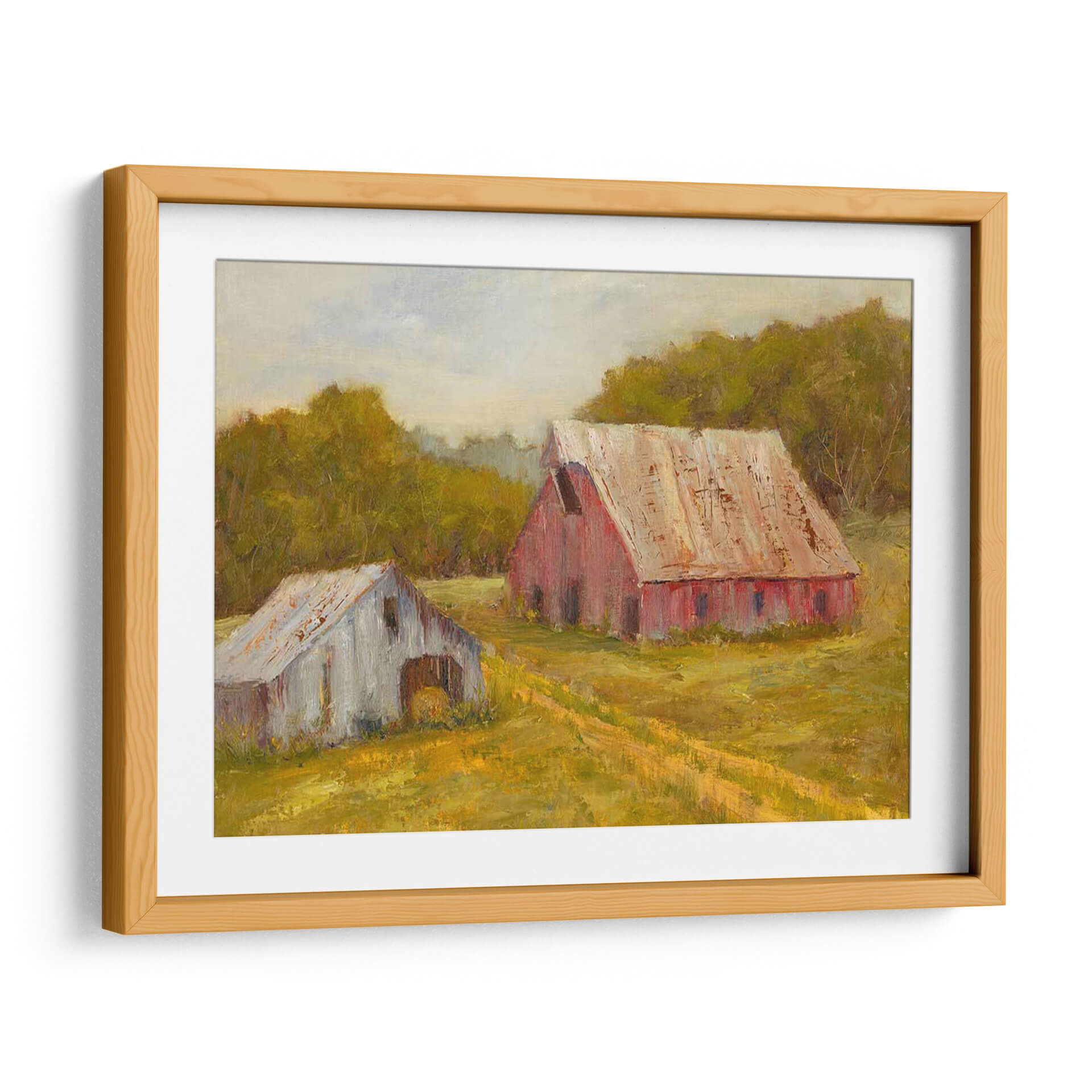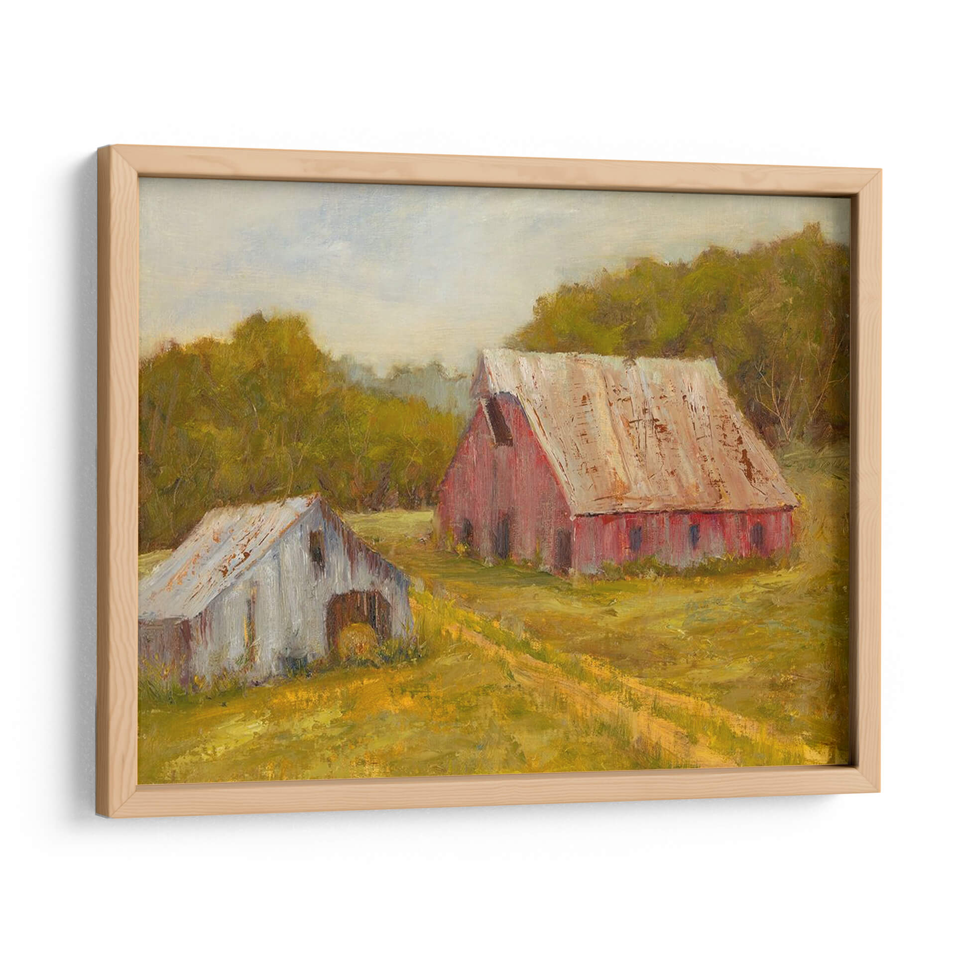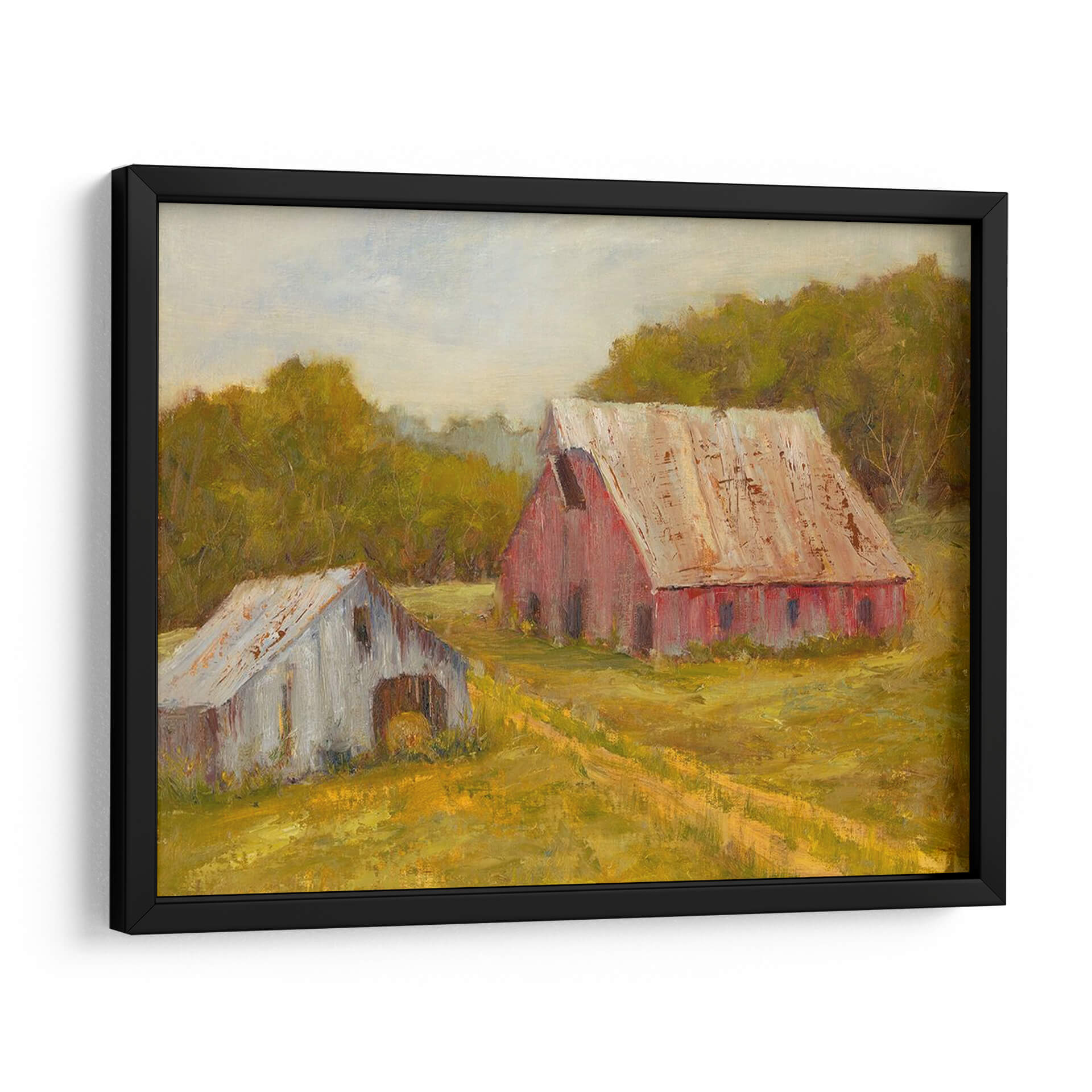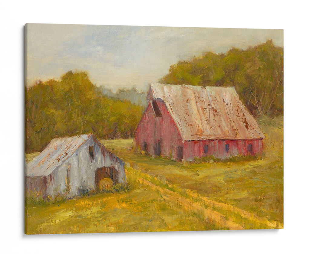 Captura la esencia rústica y serena de la vida campestre con "Graneros", una obra de arte cautivadora de Marilyn Wendling. Este cuadro decorativo transporta al espectador a un paisaje bucólico, dominado por dos graneros que evocan historias y recuerdos de tiempos pasados. La paleta de colores, rica en tonos tierra y verdes otoñales, crea una atmósfera cálida y nostálgica, invitando a la contemplación. Los detalles sutiles en la textura de los tejados y la luz que baña el entorno sugieren una escena pintada en un día tranquilo, transmitiendo una sensación de paz y simplicidad. El estilo, que recuerda al impresionismo con pinceladas visibles que dan vida a la composición, hace de esta pieza una adición perfecta para cualquier hogar o espacio de trabajo que busque un toque de autenticidad y calidez. Imagina este cuadro como un punto focal en tu sala de estar, aportando una conexión con la naturaleza y una dosis de encanto rural. Ideal para quienes aprecian el arte figurativo con un toque emotivo y una ejecución magistral. "Graneros" es más que una decoración; es una ventana a un momento de quietud y belleza perdurable, un testimonio del encanto perdurable de la arquitectura rural y los paisajes que la rodean, añadiendo profundidad y carácter a tu decoración.