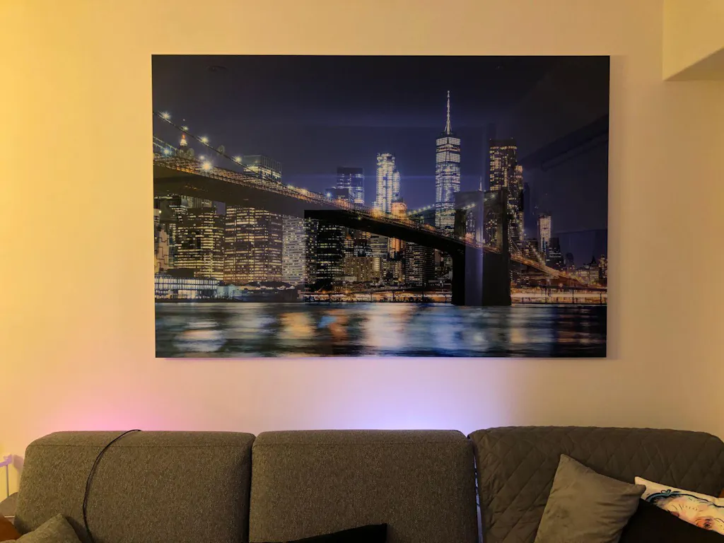 Captura la energía inconfundible de la Gran Manzana con nuestro impresionante cuadro decorativo "Nueva York Encendido". Esta obra de arte captura la icónica silueta de Manhattan al anochecer, con el majestuoso puente de Brooklyn como protagonista, iluminado por miles de luces que se reflejan en las tranquilas aguas del río. La paleta de colores profundos, dominada por azules nocturnos y el brillo cálido de los edificios, crea una atmósfera vibrante y sofisticada. Los rascacielos se alzan imponentes, un testimonio del dinamismo y la ambición de la ciudad, mientras que las luces del puente dibujan un camino de esperanza y conexión. Este cuadro decorativo es perfecto para aquellos que buscan infundir a sus espacios un toque de modernidad urbana y un recordatorio constante de la vitalidad de una de las metrópolis más fascinantes del mundo. Ideal para salones, oficinas o cualquier rincón que desee transformarse en un punto de inspiración y estilo cosmopolita. Añade un pedazo de la ciudad que nunca duerme a tu hogar y deja que su luz te guíe.