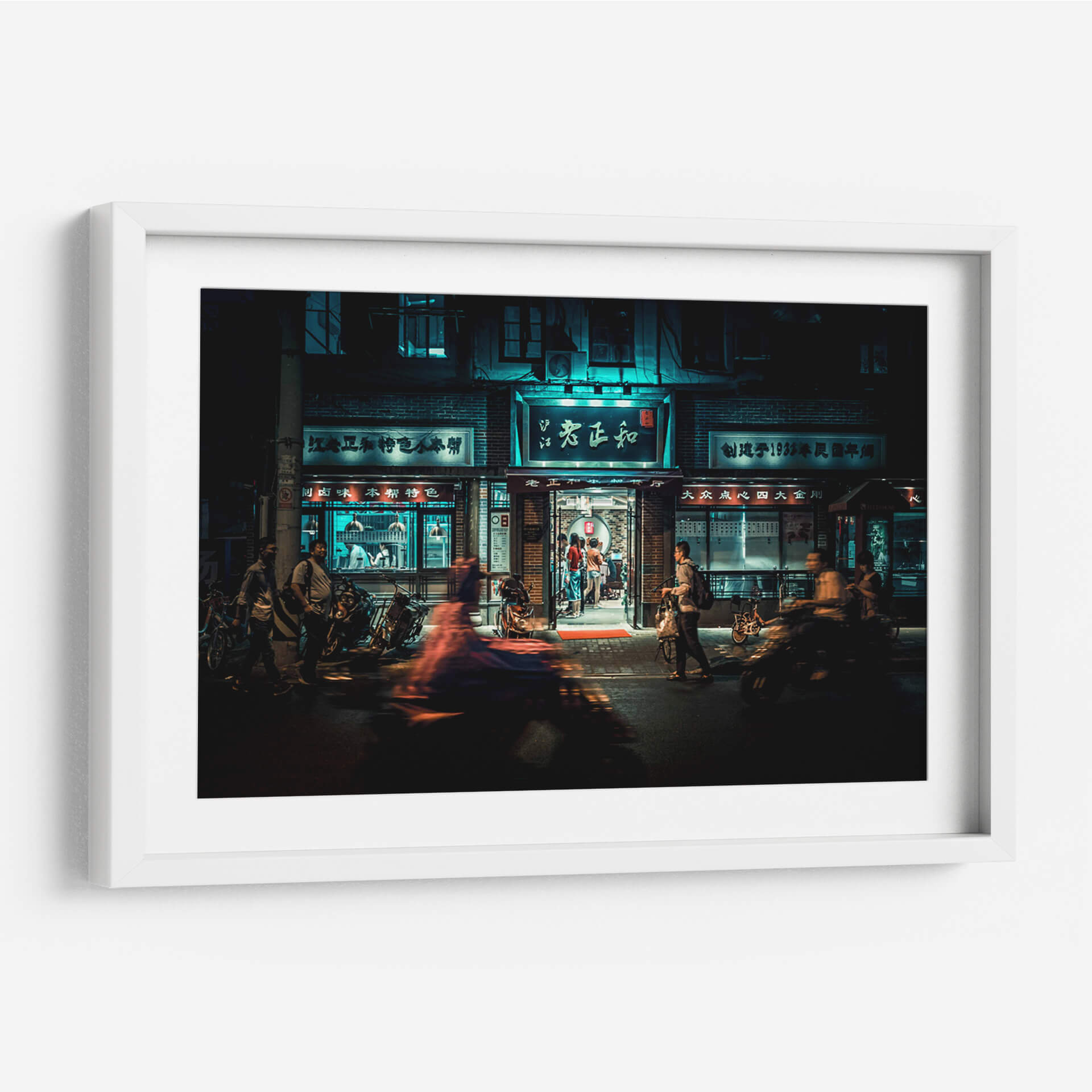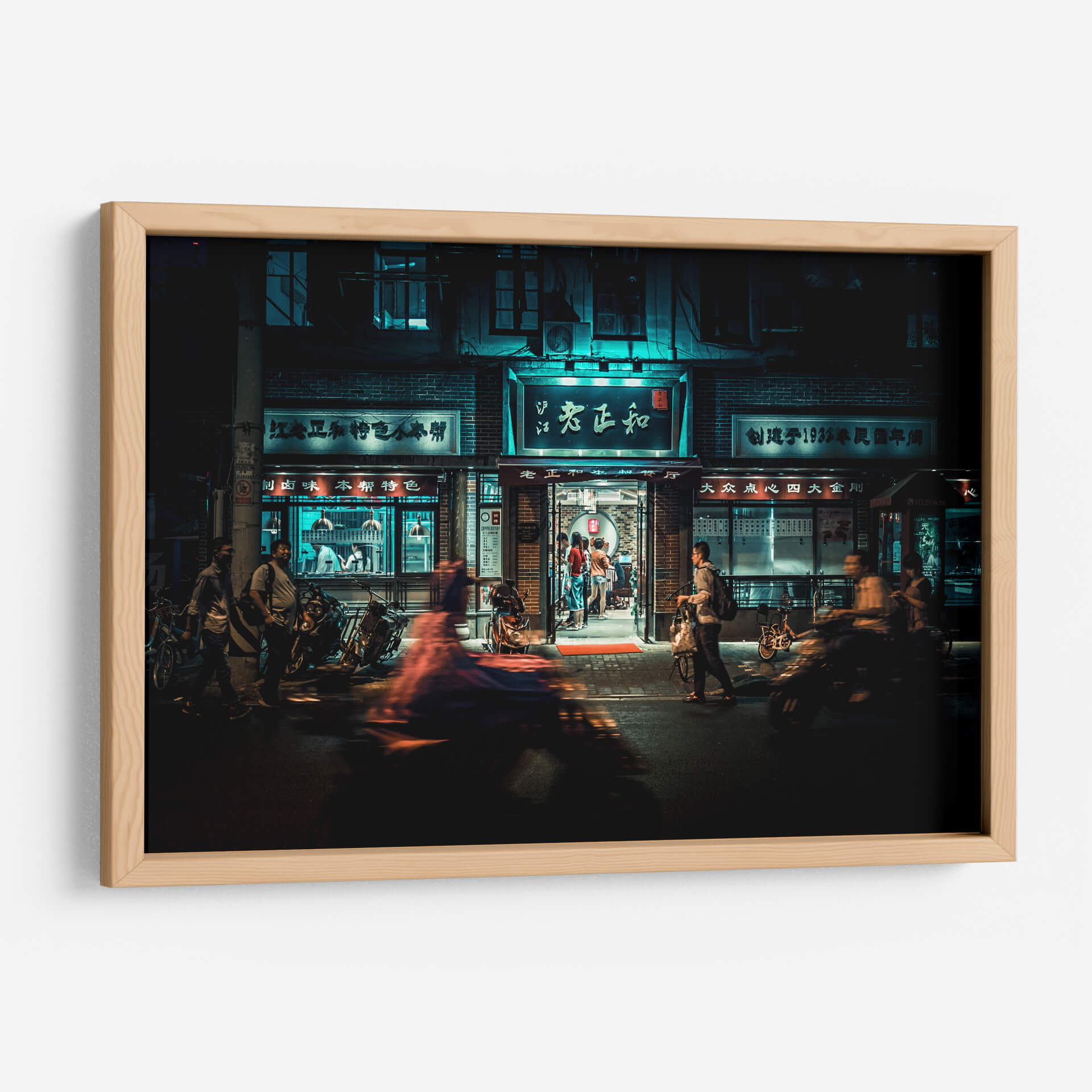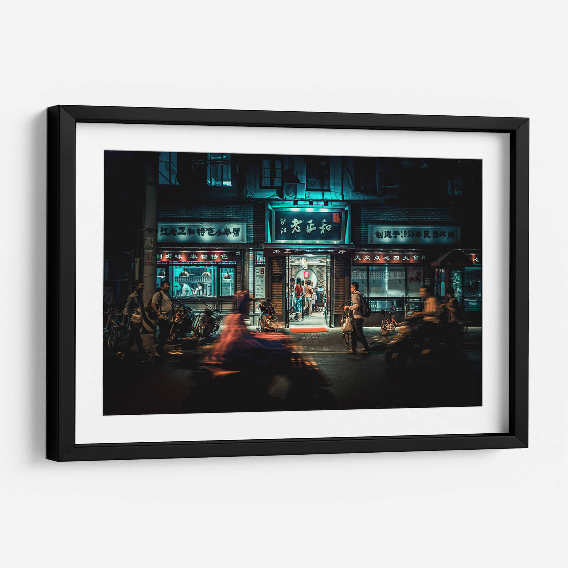 Sumérgete en la atmósfera vibrante y nocturna de 'Old Shanghai' con este cautivador cuadro decorativo. La obra captura la esencia de una calle urbana asiática al anochecer, con luces de neón brillantes que contrastan con las sombras profundas, creando una sensación de misterio y movimiento. Personas y vehículos capturados en un instante borroso añaden dinamismo a la escena, invitando al espectador a imaginar las historias que transcurren en este bullicioso escenario. Los tonos azules y cian dominantes, salpicados por el cálido resplandor de los interiores de los locales, generan una paleta de colores rica y envolvente, perfecta para añadir un toque de sofisticación y exotismo a cualquier espacio. Este cuadro decorativo es ideal para salas de estar modernas, comedores o incluso oficinas, actuando como un punto focal que evoca conversaciones y evoca la energía de la vida urbana. Su estilo, que fusiona la fotografía urbana con un toque artístico, lo convierte en una pieza única para aquellos que aprecian la belleza en la vida cotidiana y buscan una decoración de pared que cuente una historia. Añade un toque de carácter y personalidad a tu hogar u oficina con esta evocadora representación de 'Old Shanghai'.