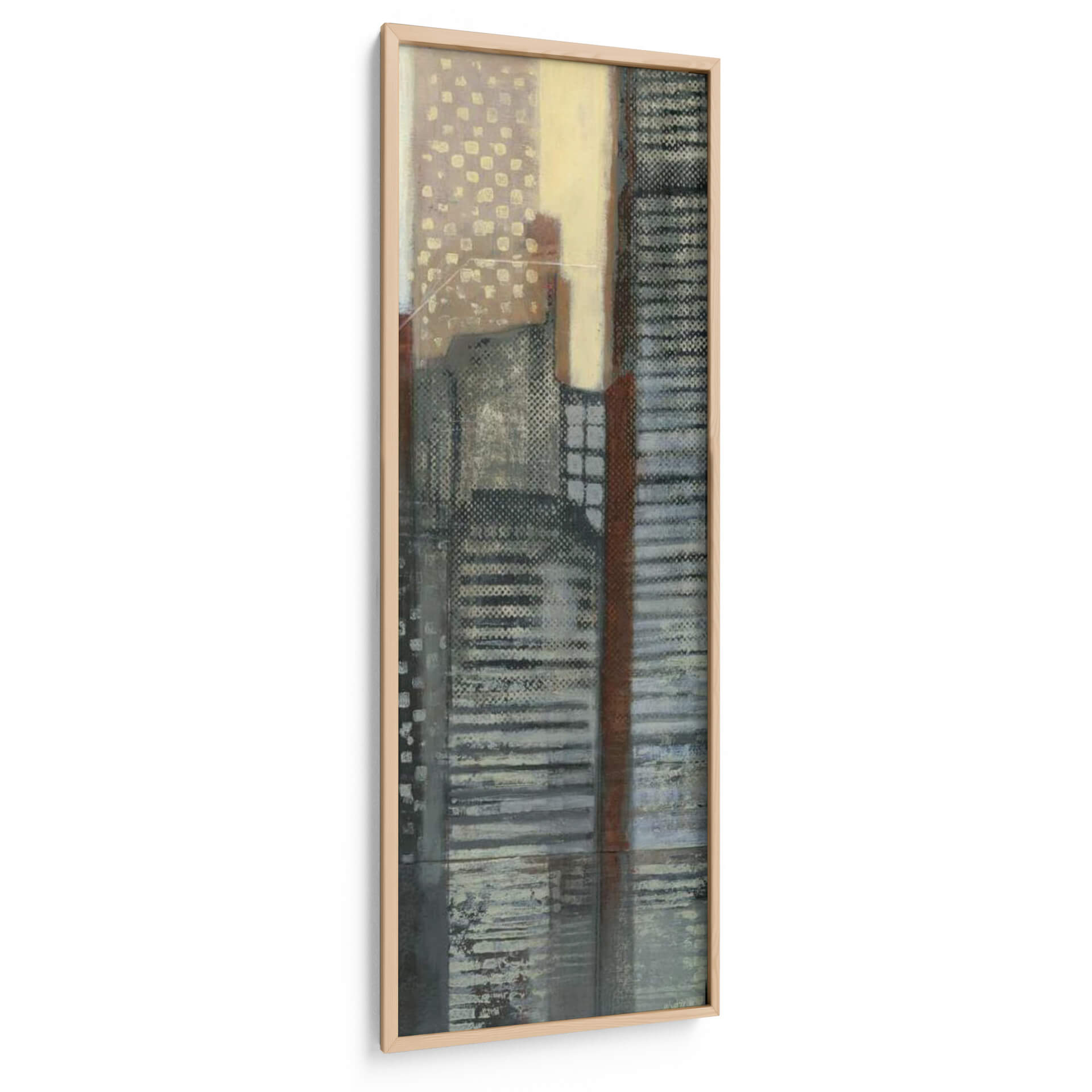 Sumérgete en la enigmática belleza de "Paisaje Urbano III", una obra abstracta y contemporánea del aclamado artista Norman Wyatt Jr. Este cuadro decorativo vertical cautiva con su intrincada composición, evocando la silueta de una ciudad a través de texturas ricas y capas de color sutil. La paleta de tonos tierra, grises profundos y toques de amarillo ocre crea una atmósfera sofisticada y serena, perfecta para añadir un toque de carácter moderno a cualquier espacio. Las líneas horizontales y verticales, junto con patrones punteados y áreas de textura desvanecida, invitan a la contemplación, sugiriendo la complejidad y el dinamismo de la vida urbana sin representarla explícitamente. "Paisaje Urbano III" es ideal para oficinas, estudios o salas de estar que buscan una pieza de arte que sea a la vez estimulante y relajante. Su estilo abstracto lo convierte en un punto focal versátil, capaz de complementar una amplia gama de decoraciones, desde las más minimalistas hasta las más eclécticas. Descubre cómo esta pieza puede transformar tu entorno y añadir una dimensión única a tu decoración de pared.
