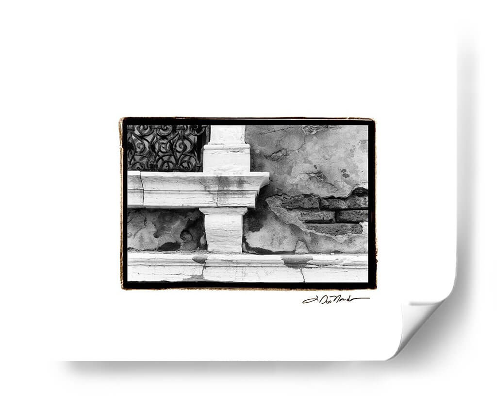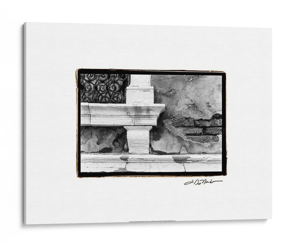 Sumérgete en la atmósfera atemporal de Venecia con 'Un Paseo Veneciano III', una obra de arte en blanco y negro que captura la esencia de la arquitectura histórica con una sensibilidad moderna. La fotografía, o pintura digital, de Laura DeNardo, se centra en una sección detallada de una pared de ladrillos expuestos, contrastada por la elegante textura de un pilar de piedra y una ornamentada reja de hierro forjado. La paleta monocromática, rica en matices de grises y blancos, evoca una sensación de nostalgia y elegancia, invitando a la contemplación. La composición, con su juego de luces y sombras, resalta la belleza de la decadencia y la resistencia del tiempo, creando una pieza visualmente impactante y cargada de historia. Este cuadro decorativo es perfecto para añadir un toque de sofisticación y un aire de misterio a cualquier espacio, ya sea una sala de estar moderna, un estudio o un pasillo. Su estilo atemporal lo convierte en una adición versátil para una variedad de decoraciones, desde lo clásico hasta lo contemporáneo, aportando profundidad y carácter a tu hogar u oficina.