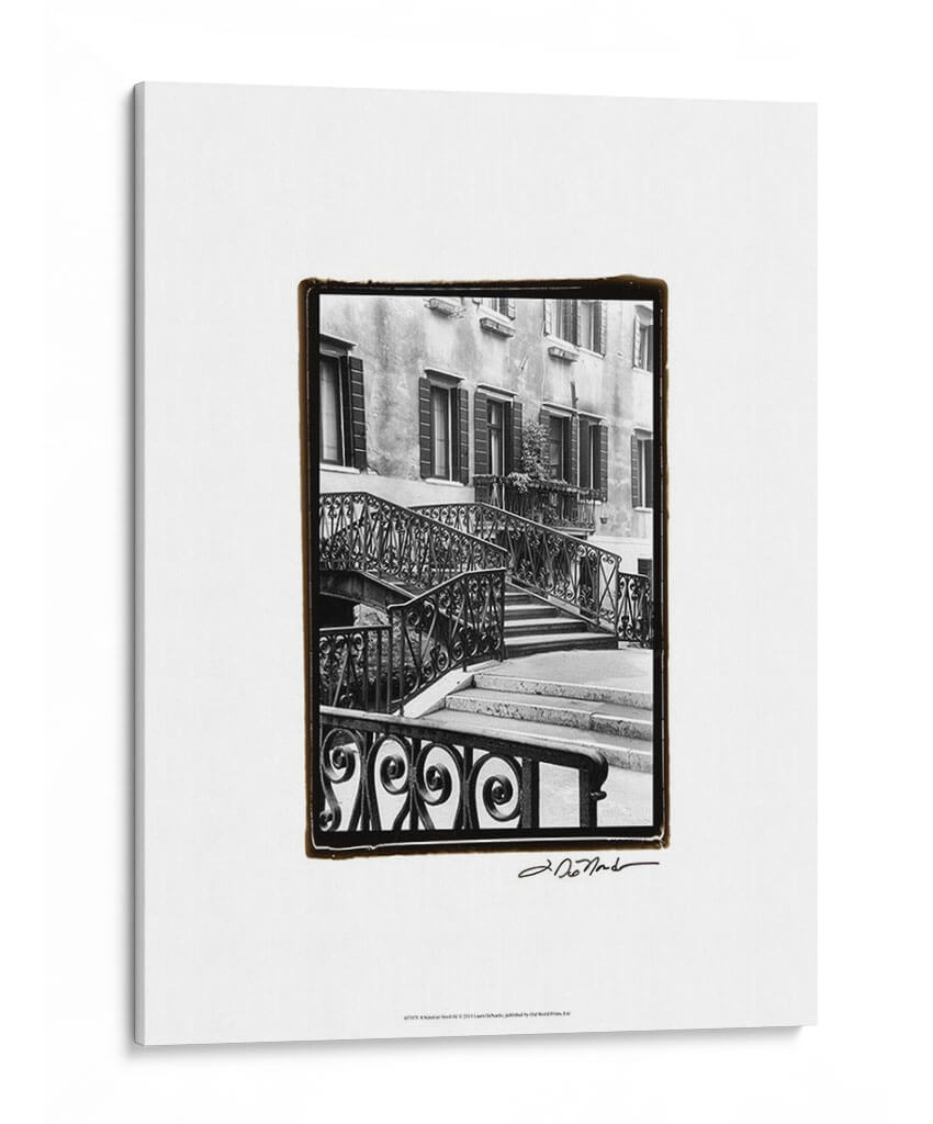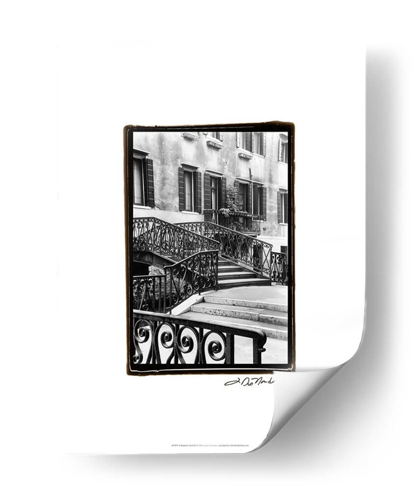 Sumérgete en la arquitectura atemporal de Venecia con "Un Paseo Veneciano IV", una cautivadora fotografía en blanco y negro de Laura DeNardo. Esta obra de arte captura la esencia de un pintoresco puente con sus barandillas de hierro forjado intrincadamente detalladas, invitando a la contemplación y al viaje. La composición, con sus escaleras ascendentes y la fachada texturizada de los edificios venecianos, crea una sensación de profundidad y misterio. La paleta de grises y negros evoca una atmósfera melancólica y sofisticada, perfecta para quienes aprecian la elegancia sutil. Ideal como cuadro decorativo para salas de estar, estudios o recibidores, esta pieza aporta un toque de clasicismo y encanto europeo a cualquier espacio. "Un Paseo Veneciano IV" no es solo una imagen, sino una ventana a un mundo de historia y belleza, un recordatorio de los rincones ocultos y las historias que aguardan ser descubiertas. Añade esta obra maestra a tu colección y deja que su serenidad y detalle enriquezcan tu hogar con un estilo inconfundible y una narrativa visual profunda.
