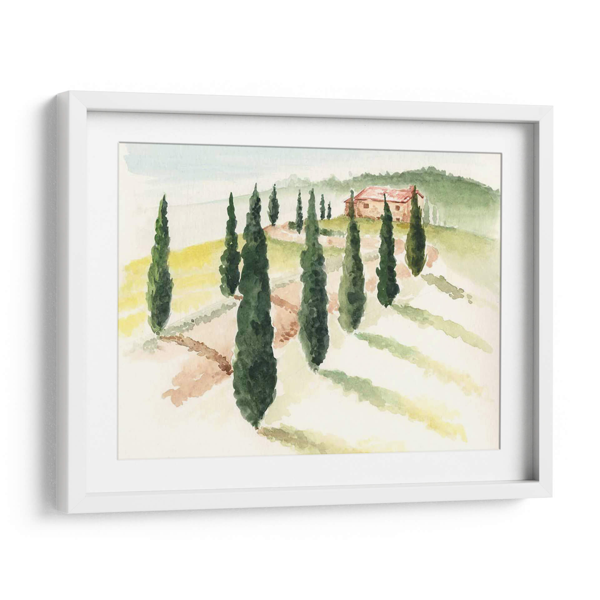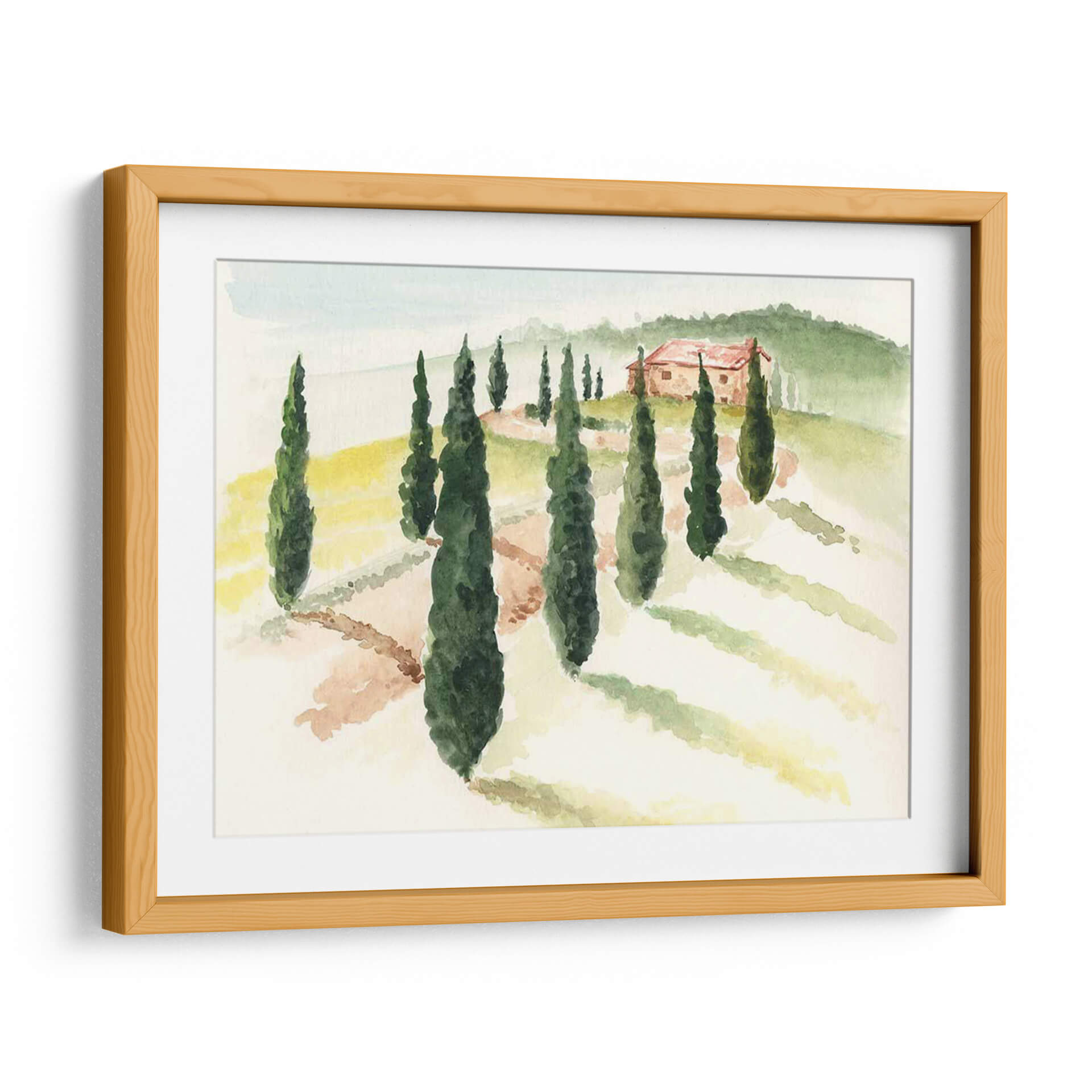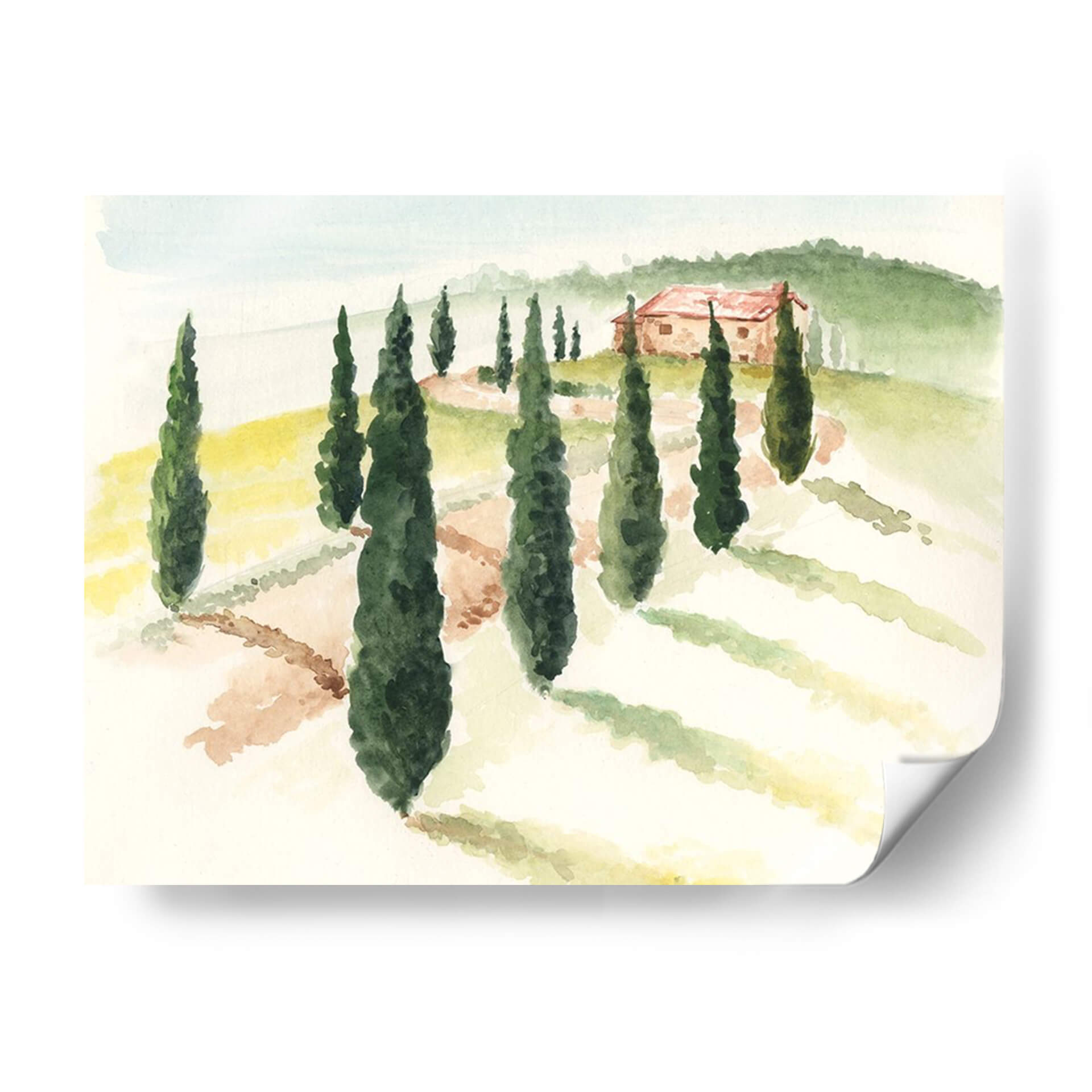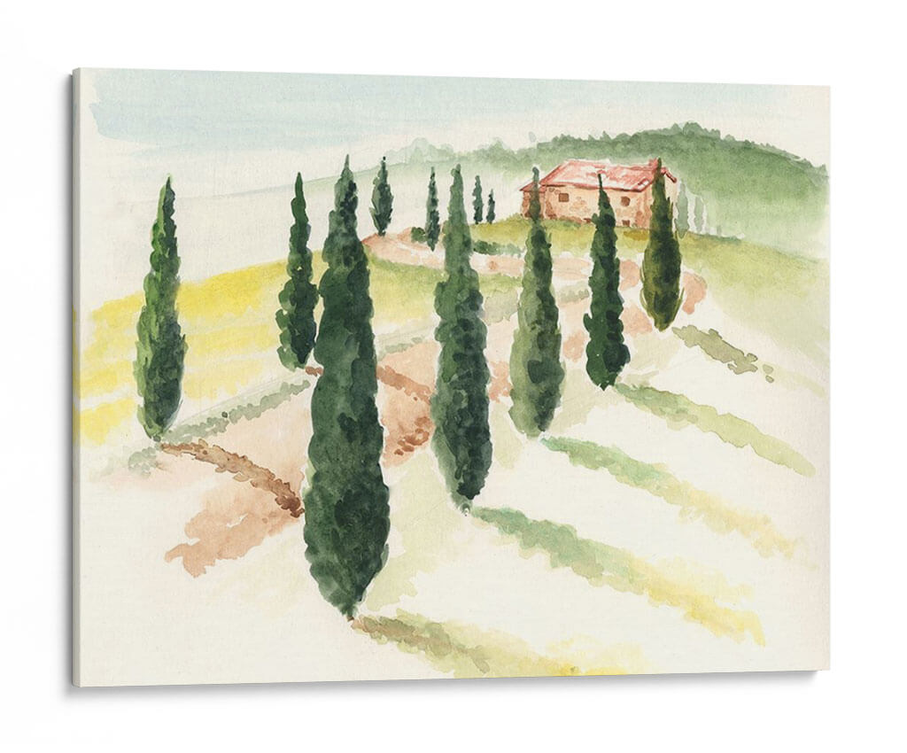 Sumérgete en la serena belleza de "Villa Toscana Iv", una cautivadora obra de arte que evoca la tranquilidad y el encanto del campo italiano. Esta pintura, con su estilo acuarela delicado y etéreo, presenta un paisaje idílico con cipreses altos y esbeltos que flanquean un camino serpenteante hacia una acogedora casa de campo con tejado de terracota. La paleta de colores, dominada por verdes profundos, tonos tierra cálidos y toques de amarillo y ocre, crea una atmósfera de paz y armonía natural. La técnica de acuarela aporta una ligereza y fluidez únicas, con pinceladas suaves que sugieren la brisa moviendo la vegetación y las sombras danzantes sobre el terreno. "Villa Toscana Iv" es más que una simple decoración de pared; es una ventana a un mundo de calma y belleza atemporal. Es la pieza perfecta para añadir un toque de sofisticación rústica a tu sala de estar, un remanso de paz a tu dormitorio, o un acento inspirador en tu estudio u oficina. Deja que esta evocadora escena te transporte a un rincón de serenidad, transformando cualquier espacio en un refugio de tranquilidad y estilo. Este cuadro decorativo es ideal para quienes buscan arte que hable de viajes, naturaleza y la simple elegancia de la vida rural.