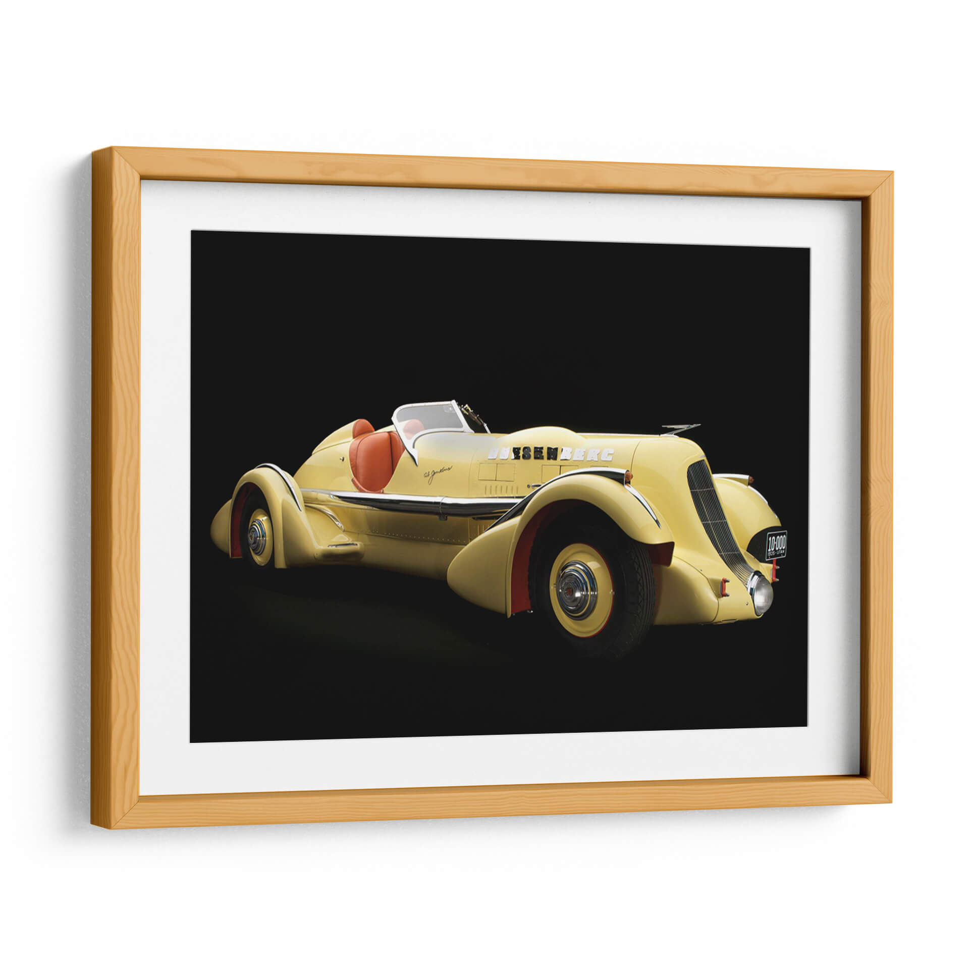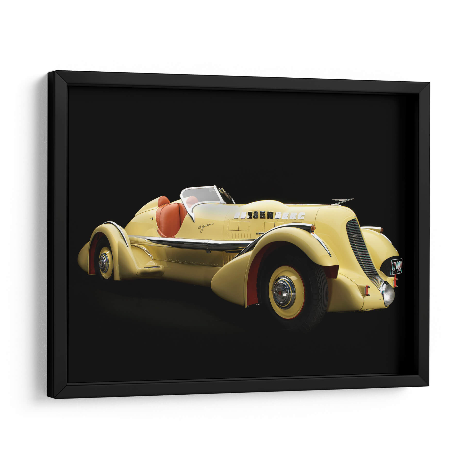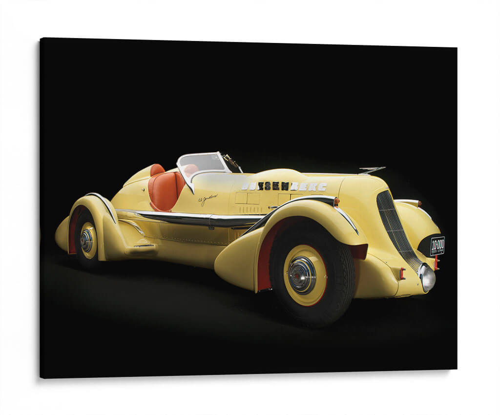 Captura la esencia de la velocidad y el diseño clásico con este impresionante cuadro decorativo del "1935 Duesenberg SJ 557 Mormon Meteor Speedster". La obra presenta un icónico automóvil deportivo de época en un vibrante tono amarillo, acentuado por detalles en naranja y detalles cromados pulidos, todo ello enmarcado sobre un profundo fondo negro que resalta su silueta audaz. La composición enfoca la atención en las líneas aerodinámicas y la potencia que evoca este vehículo histórico, invitando a la admiración por la ingeniería y la estética de una era dorada del automovilismo. Es una pieza perfecta para añadir un toque de elegancia retro y sofisticación a cualquier espacio, ya sea una sala de estar moderna, un estudio de diseño o un garaje temático. Este cuadro decorativo es ideal para entusiastas de los coches clásicos, amantes del diseño industrial o cualquiera que busque una declaración visual audaz y llena de carácter. Su paleta de colores cálidos y su diseño potente lo convierten en un punto focal que inspira conversación y evoca una sensación de nostalgia y aventura. Añade un toque de historia automotriz a tu decoración.
