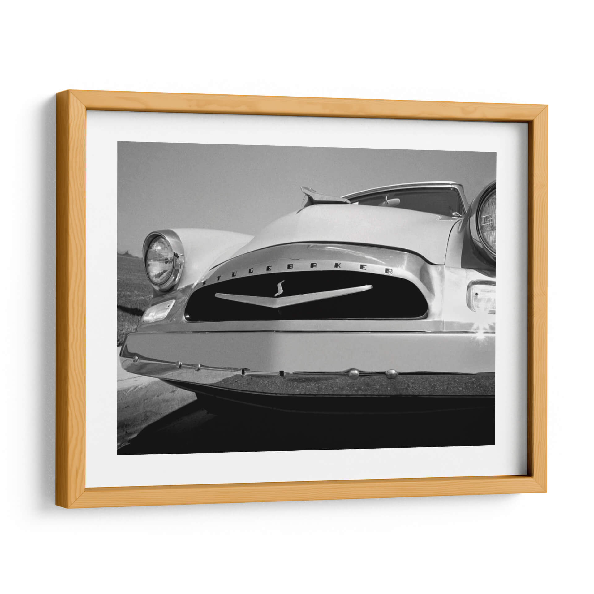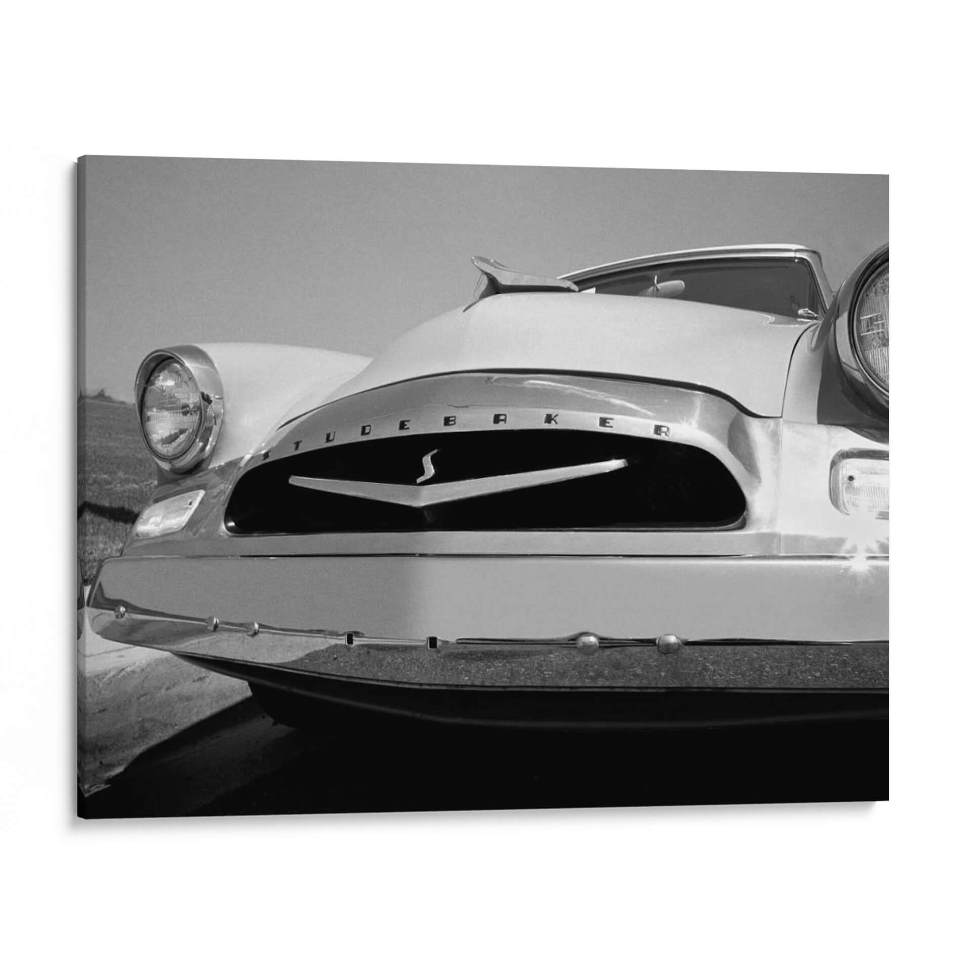 Captura la esencia de la nostalgia automotriz con este cautivador cuadro decorativo, una obra en blanco y negro que rinde homenaje a la icónica "55 Studebaker". La fotografía, con un enfoque detallado en la imponente parrilla y los faros delanteros, evoca una sensación de elegancia clásica y potencia. La paleta monocromática resalta las curvas aerodinámicas y los acabados cromados del vehículo, creando un juego de luces y sombras que añade profundidad y dramatismo. Este cuadro decorativo es perfecto para espacios que buscan un toque de sofisticación retro y un guiño a la historia del diseño automotriz. Ideal para salas de estar, estudios o garajes, esta pieza se convertirá en un punto focal que inspirará conversaciones y admiración. Su estilo fotográfico y la atención al detalle lo hacen ideal para amantes de los coches clásicos y del arte con carácter.