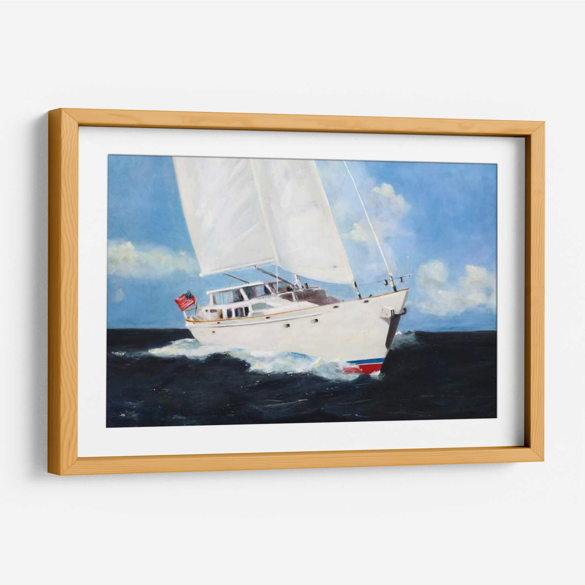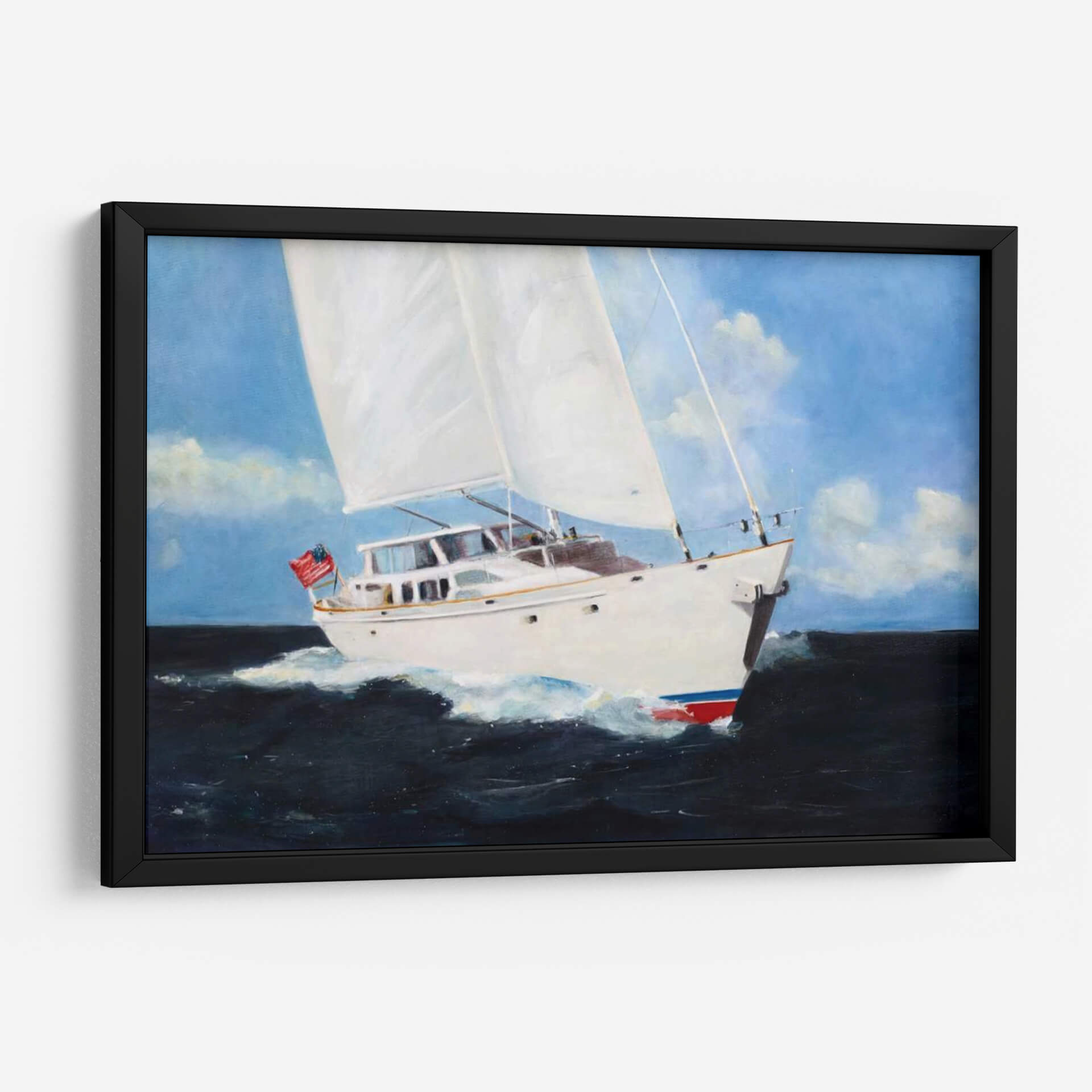 Embárquese en un viaje visual con "Altura", una cautivadora obra de arte que captura la majestuosidad de un velero navegando en aguas abiertas. El artista Curt Crain ha plasmado con maestría la dinámica del movimiento, con las velas infladas por el viento y las olas rompiendo contra el casco de la embarcación, creando una escena llena de energía y libertad. La paleta de colores, dominada por el azul profundo del océano y el cielo, se complementa con el blanco puro de las velas y los sutiles detalles en rojo y azul del casco, evocando una sensación de aventura y serenidad. Este cuadro decorativo, con su composición equilibrada y estilo realista, es perfecto para añadir un toque de sofisticación y vitalidad a cualquier espacio, ya sea una sala de estar, un estudio o una oficina. "Altura" no es solo una imagen, es una invitación a soñar con horizontes lejanos y la inmensidad del mar, un recordatorio de la belleza y el poder de la naturaleza. Ideal para amantes de la náutica, el arte clásico y para quienes buscan una pieza que inspire y eleve el espíritu.