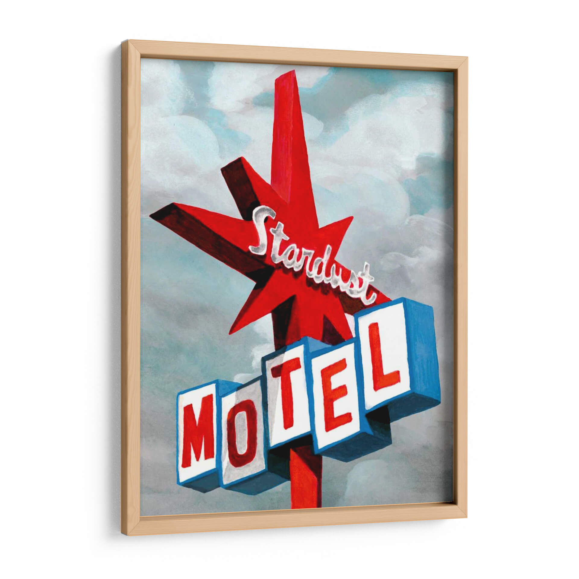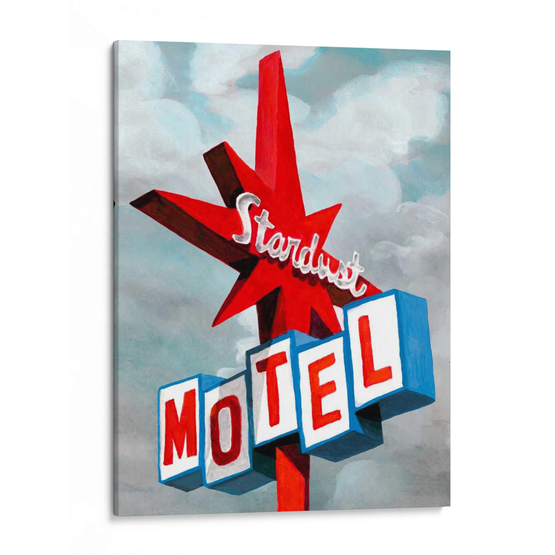 Sumérgete en la nostalgia y el encanto del camino con "American Roadside VI" de Naomi McCavitt. Esta cautivadora obra de arte captura la esencia icónica de los letreros de neón de la vieja escuela, evocando una sensación de aventura y libertad. La vibrante paleta de rojos intensos, azules audaces y blancos nítidos contrasta con un cielo nublado y etéreo, creando una composición visualmente impactante. La estrella roja brillante, un símbolo de la cultura estadounidense, se alza majestuosa sobre las letras del motel "Stardust", invitando a soñar con viajes por carretera y paradas inesperadas. El estilo pictórico de McCavitt, con sus pinceladas visibles y su enfoque en la luz y la sombra, añade una profundidad emocional a la pieza, transformándola en más que una simple imagen: es una ventana a una época pasada y a la promesa de lo desconocido. Este cuadro decorativo es perfecto para aquellos que buscan infundir a sus espacios un toque de carácter vintage y un aire de escapismo. Ideal para salones, estudios o cualquier rincón que necesite una chispa de personalidad y un recordatorio del espíritu audaz del viaje. Añade un toque de arte retro a tu decoración y deja que "American Roadside VI" te inspire a explorar.