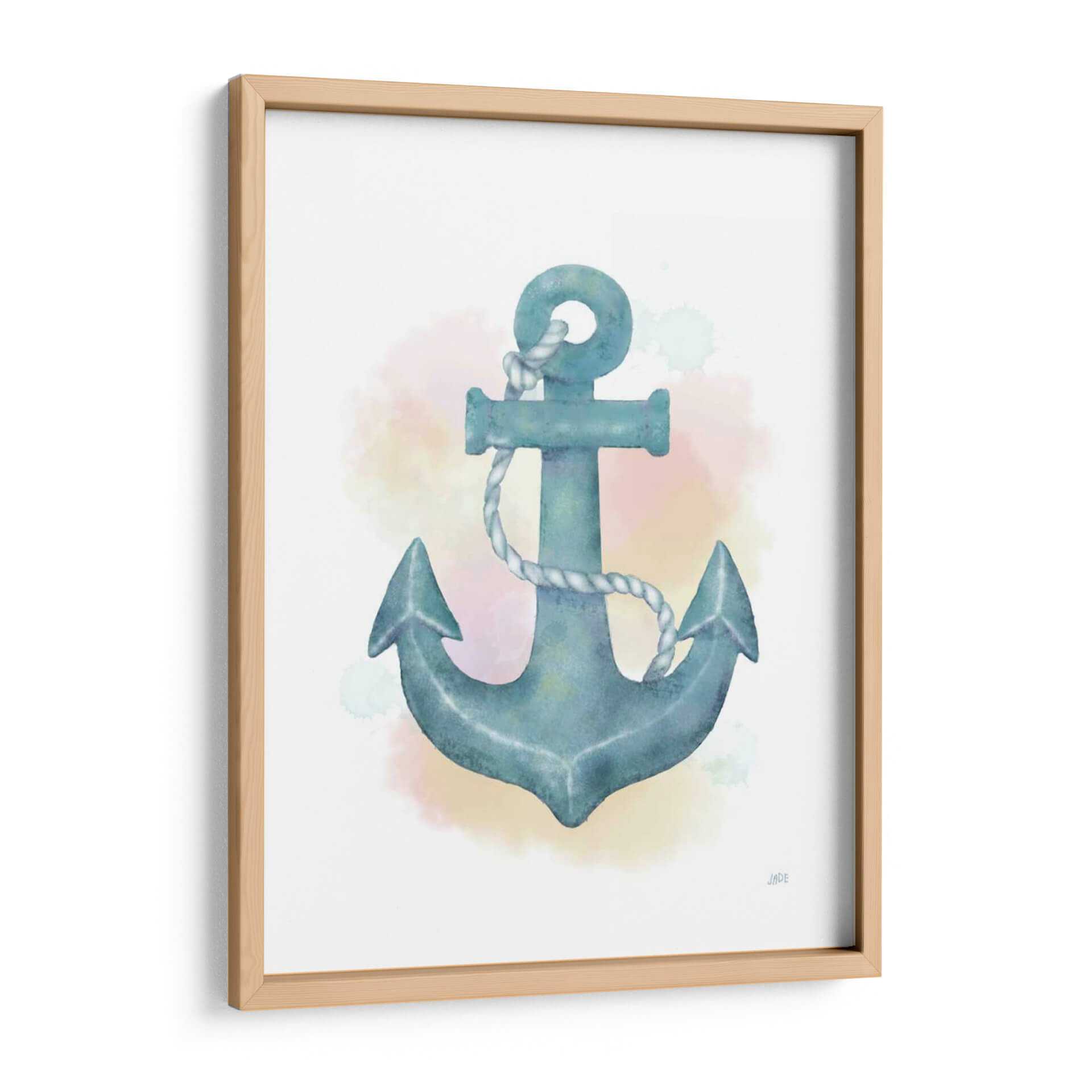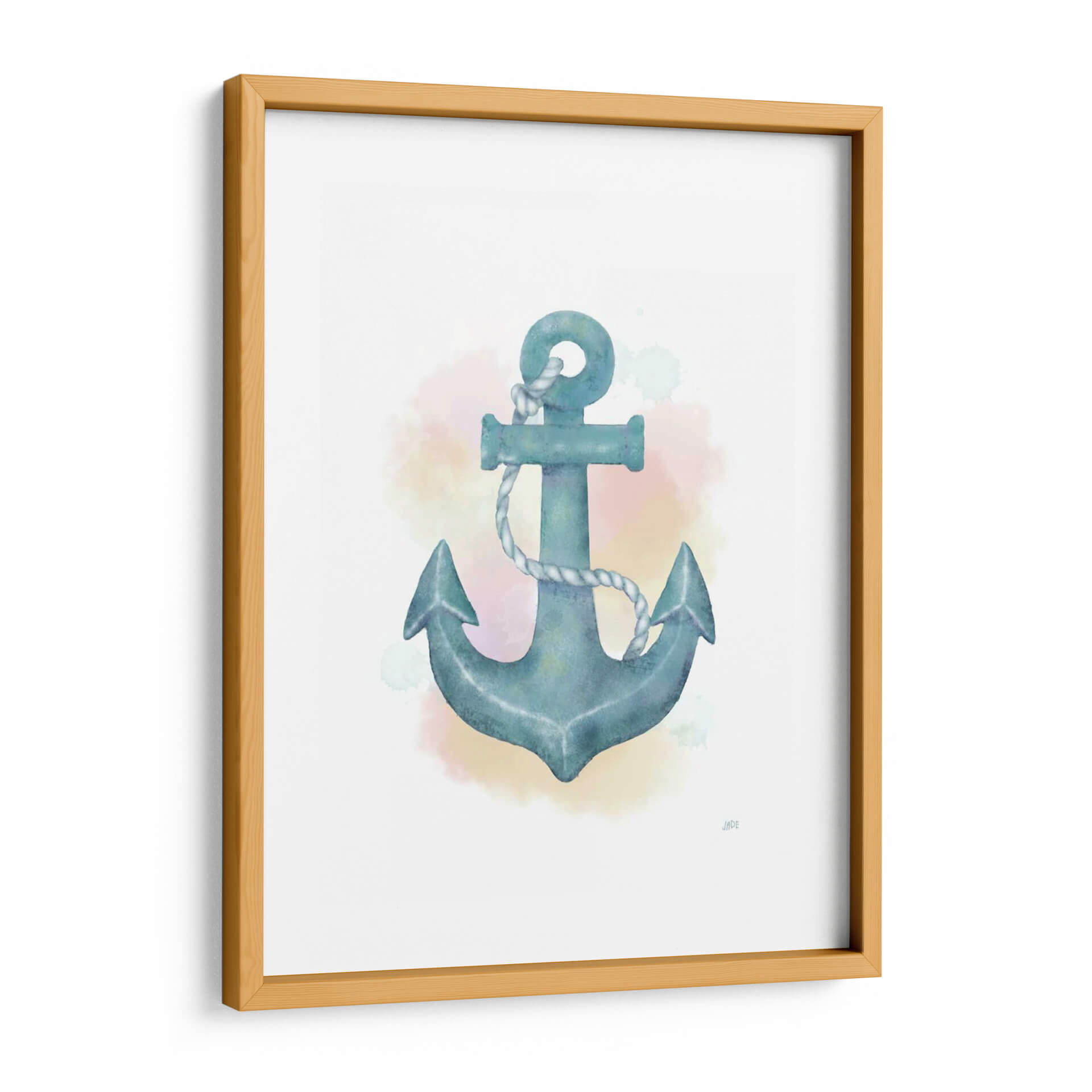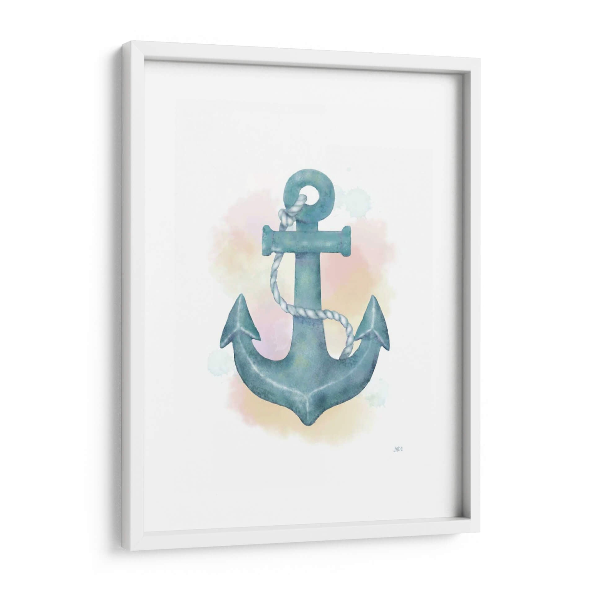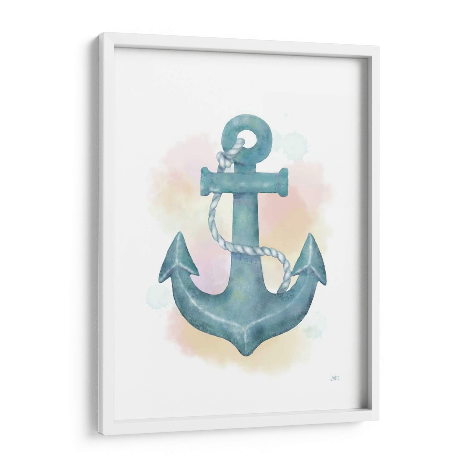 Este cautivador cuadro decorativo 'Ancla de Acuarela' de Jade Reynolds es una oda a la serenidad y la conexión con el mar. La obra presenta un ancla estilizada en tonos azul verdoso, representada con la delicadeza y fluidez de la técnica de acuarela. Las sutiles manchas de color en tonos pastel que rodean el ancla evocan la atmósfera de un amanecer o atardecer sobre el océano, aportando una sensación de calma y tranquilidad al espacio. La composición centra la mirada en este símbolo de estabilidad y regreso, invitando a la contemplación y al sosiego. Ideal para quienes buscan infundir paz y un toque náutico sofisticado en sus hogares u oficinas, este cuadro decorativo se integra perfectamente en ambientes costeros, modernos o minimalistas. Su estilo suave y evocador lo convierte en una pieza versátil, capaz de añadir un punto de interés visual sin abrumar, creando un refugio visual que inspira confianza y serenidad. Añade esta obra maestra a tu colección y transforma cualquier habitación en un oasis de paz.
