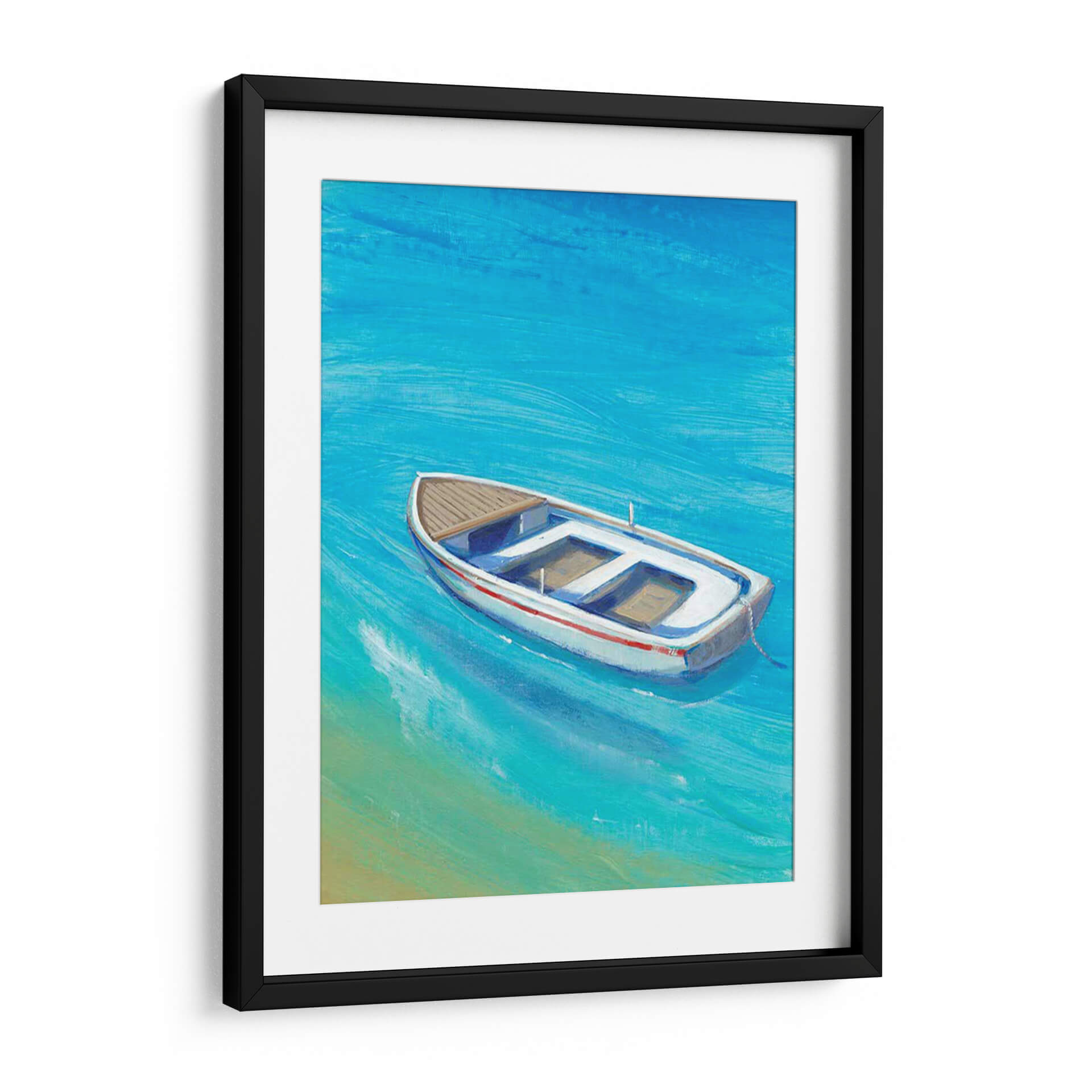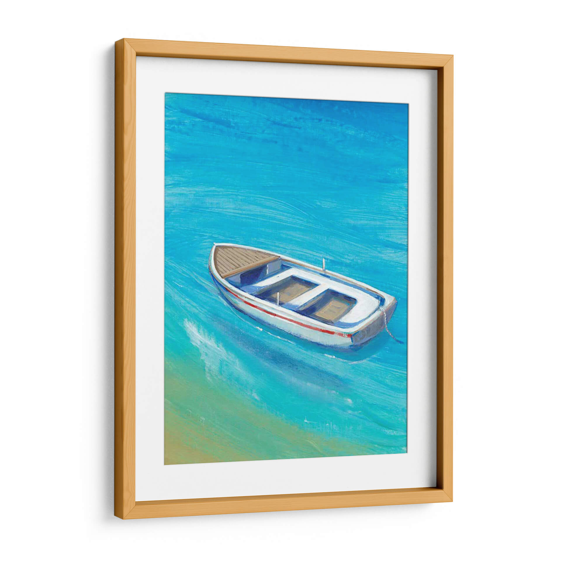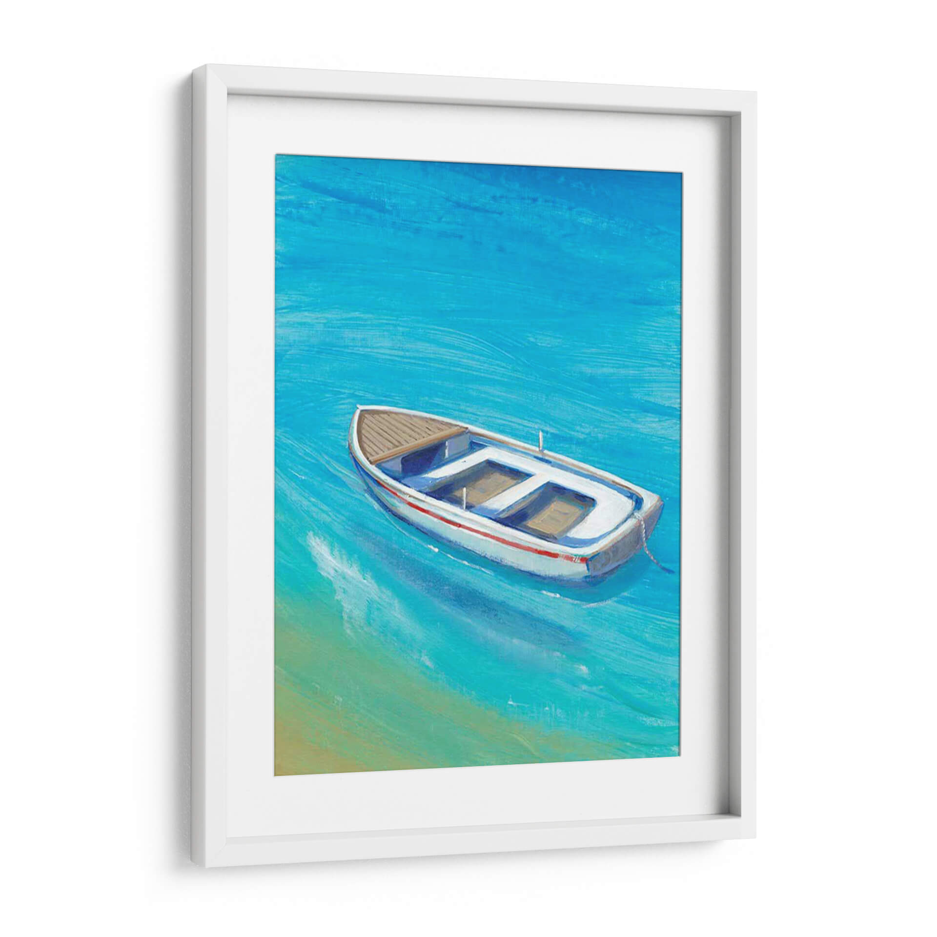 Sumérgete en la serenidad del mar con 'Anclada Sucio I', una obra de arte que captura la esencia de un día tranquilo junto al agua. Este cuadro decorativo presenta una embarcación solitaria flotando en aguas cristalinas de un vibrante tono azul turquesa, con sutiles pinceladas que evocan el movimiento suave de las olas. La paleta de colores, dominada por azules intensos y toques de arena dorada, crea una atmósfera de paz y evasión, transportando al espectador a un paraíso costero. La composición, centrada en el bote blanco con detalles en rojo y madera, invita a la contemplación y a la reflexión sobre la calma de la soledad. Ideal para salones modernos, dormitorios o incluso oficinas, 'Anclada Sucio I' es la pieza perfecta para añadir un toque de frescura y tranquilidad a cualquier espacio. Su estilo evocador y su temática marinera la convierten en una adición versátil y atemporal a tu colección de arte de pared, ideal para quienes buscan una conexión visual con la naturaleza y la serenidad.