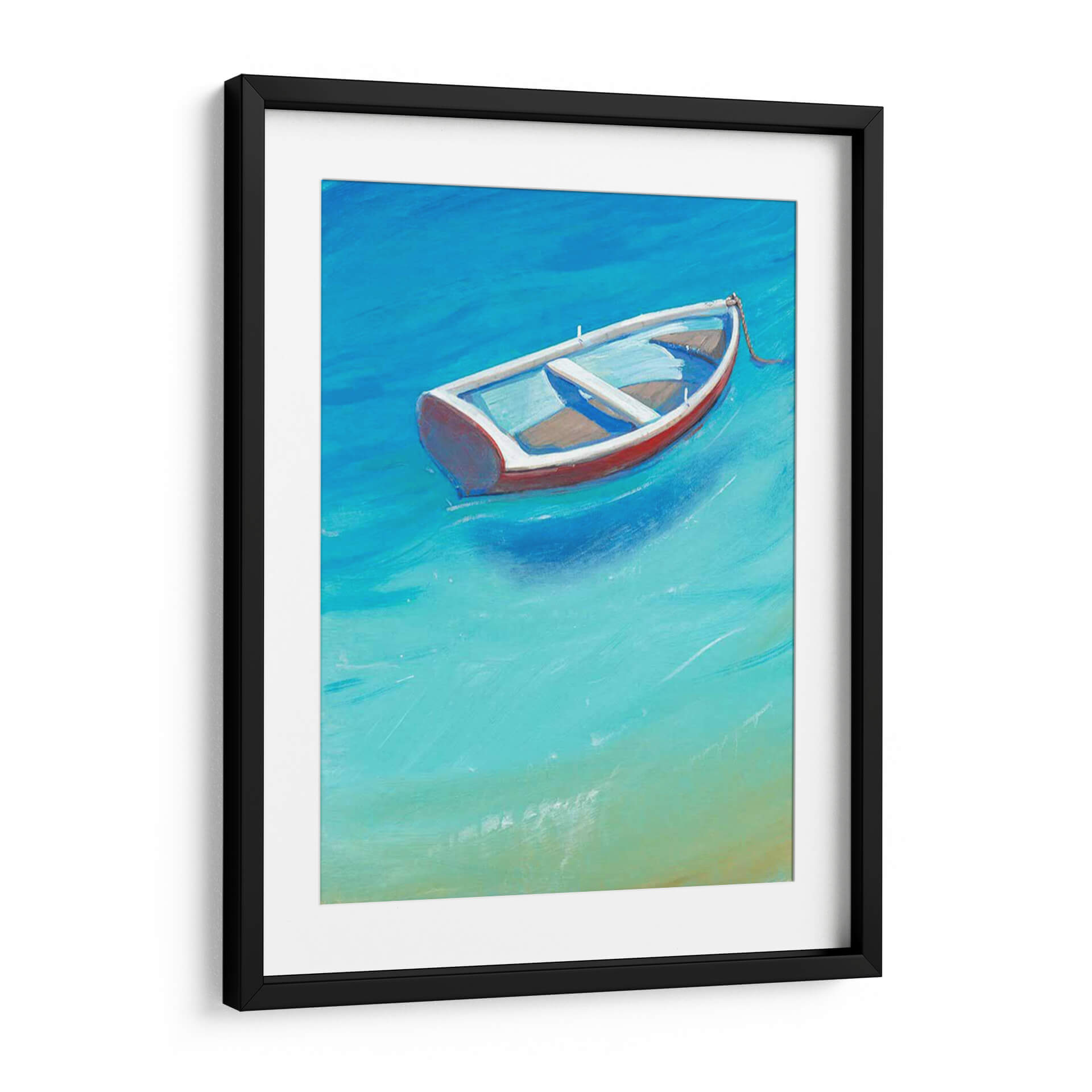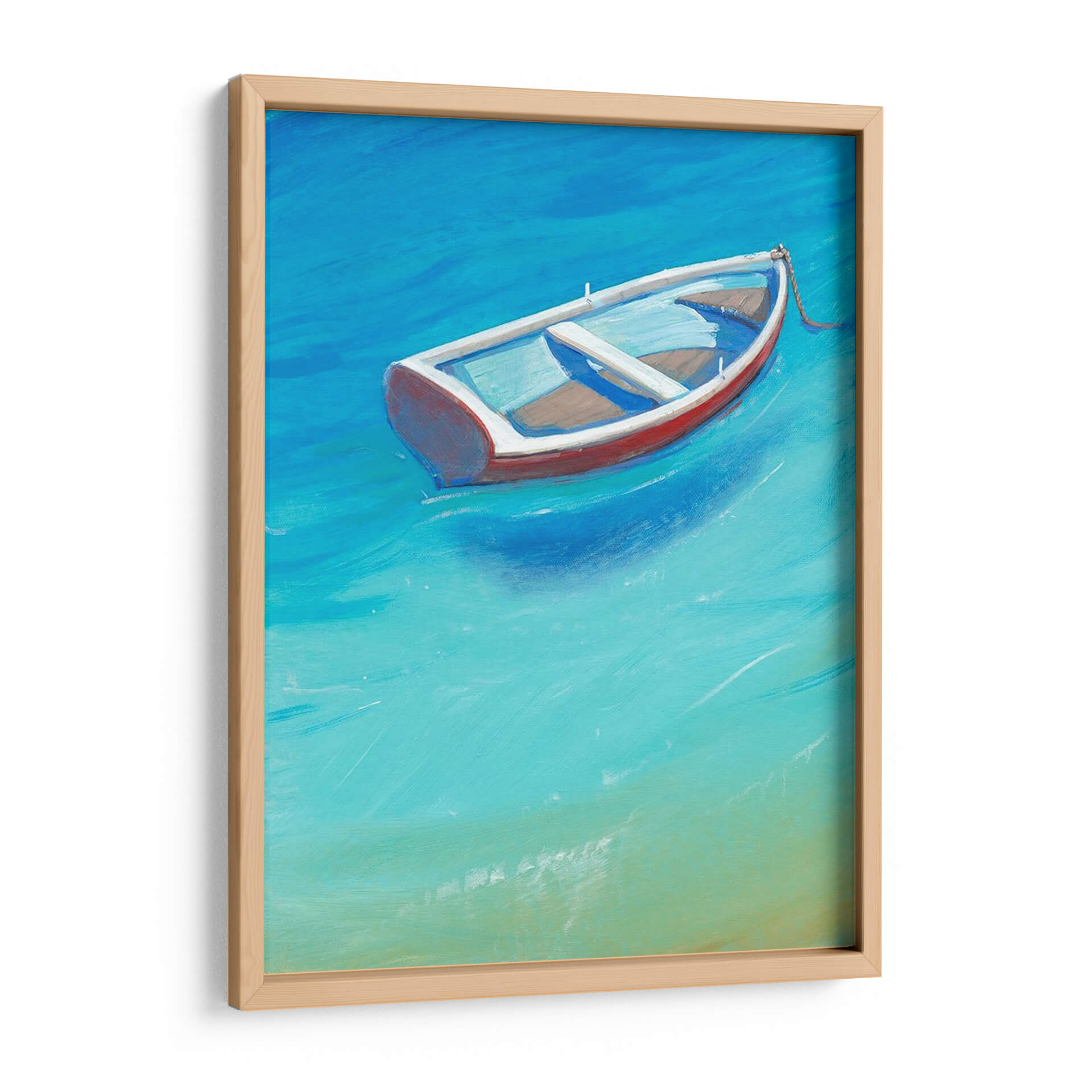 Sumérgete en la tranquilidad del mar con "Anclado Dingy II", una obra de Tim O'Toole que captura la serena belleza de un bote solitario flotando en aguas cristalinas. Los vibrantes tonos azules del océano, desde el zafiro profundo hasta el turquesa brillante, crean una atmósfera de calma y paz, invitando a la contemplación. La paleta de colores se complementa con los tonos cálidos de madera del bote y un sutil toque de rojo en su borde, anclando visualmente la composición. El estilo pictórico, con pinceladas visibles y un enfoque en la luz y el color, evoca una sensación de impresionismo moderno, transmitiendo la fluidez del agua y la quietud del momento. Esta pieza es ideal para aquellos que buscan añadir un toque de serenidad costera a su hogar u oficina. Imagina este cuadro decorativo en tu sala de estar, aportando una sensación de escapismo y frescura, o como un punto focal relajante en un dormitorio. "Anclado Dingy II" es más que una simple decoración de pared; es una invitación a un momento de paz y reflexión en medio de la rutina diaria. Descubre el arte contemporáneo que transforma espacios y eleva el espíritu.