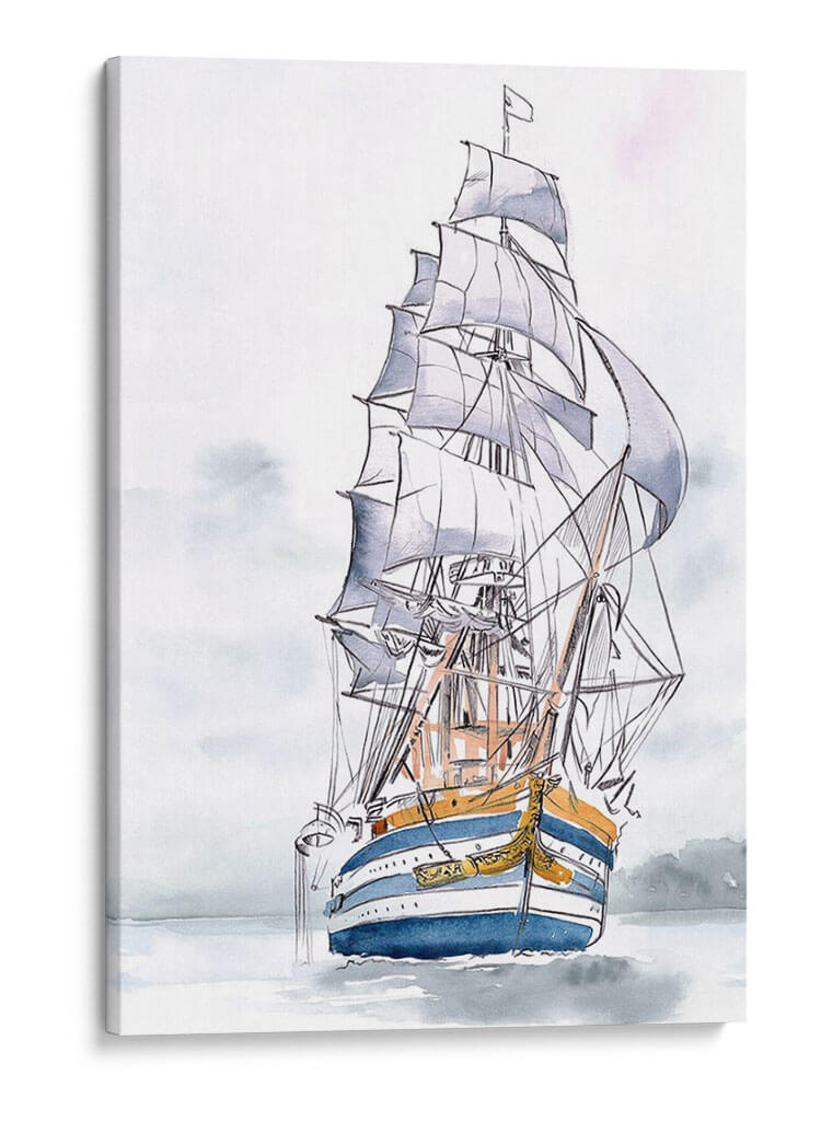 Navega hacia la inspiración con "Barco Alto I", una obra de arte cautivadora de Jennifer Paxton Parker. Este cuadro decorativo captura la majestuosidad de un majestuoso velero navegando en aguas serenas, con sus velas desplegadas capturando la brisa. La paleta de colores, dominada por azules profundos y blancos etéreos, evoca una sensación de calma y aventura marítima. El estilo de acuarela, con líneas delicadas y toques de color, añade una atmósfera ligera y soñadora a la pieza. Las texturas sutiles y la composición dinámica invitan al espectador a imaginar el sonido de las olas y el viento en las velas. "Barco Alto I" es perfecto para infundir una sensación de tranquilidad y exploración en cualquier espacio, ya sea una sala de estar, un estudio o un dormitorio. Este cuadro decorativo no es solo una adición visualmente atractiva, sino una invitación a soñar con horizontes lejanos y la libertad del mar. Su diseño versátil lo convierte en un punto focal ideal para estilos de decoración náutica, costera o contemporánea, aportando un toque de elegancia atemporal y narrativa a tu hogar u oficina. Añade este tesoro artístico a tu colección y deja que su espíritu aventurero transforme tu entorno.