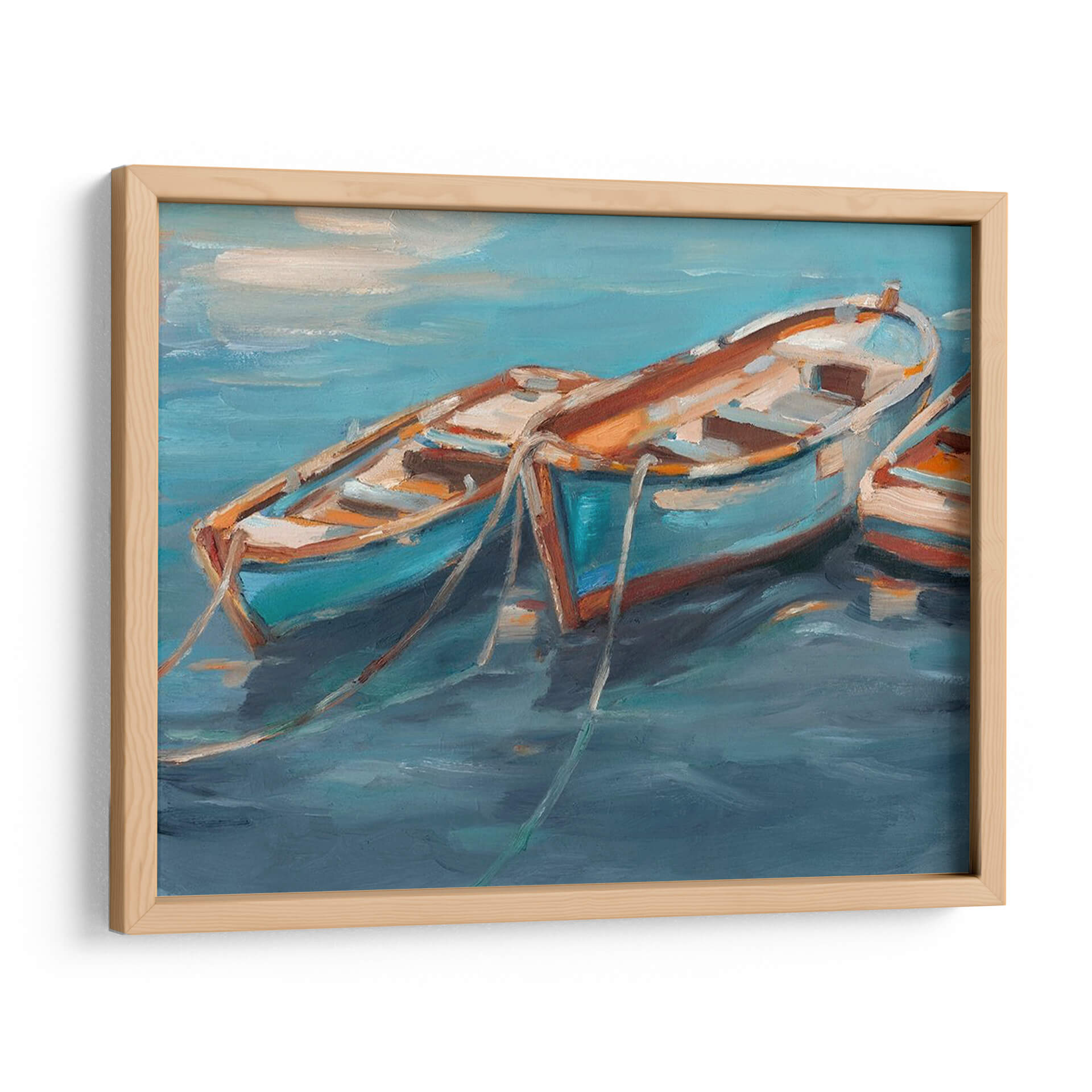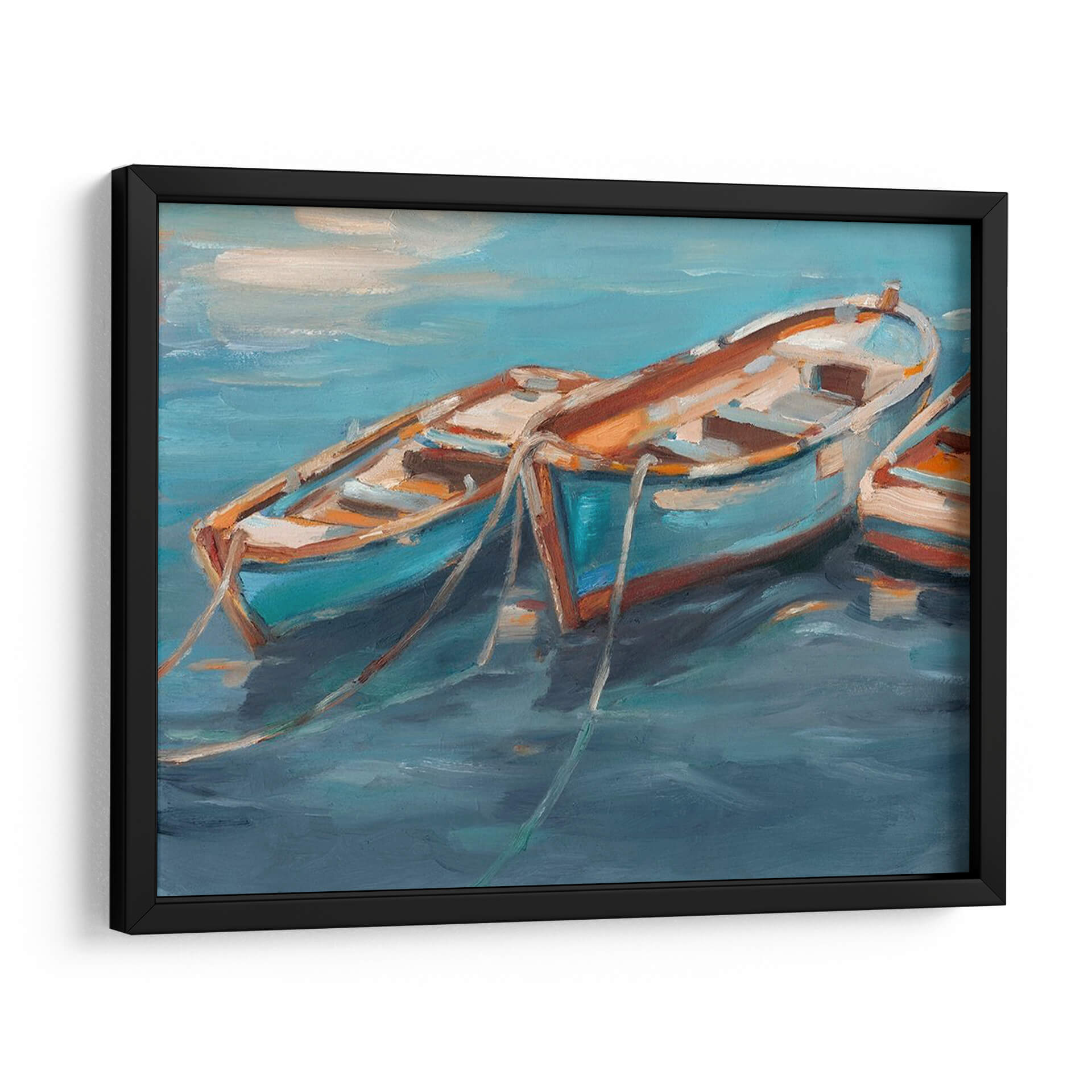 Sumérgete en la serenidad costera con "Barcos De Fila Atados I", una obra de arte cautivadora de Ethan Harper. Este cuadro decorativo captura la esencia de una tarde tranquila junto al mar, con una composición donde varios barcos de remo de colores vivos, pintados en tonos azules y naranjas cálidos, flotan amarrados en aguas serenas. Las pinceladas visibles y expresivas del artista aportan una textura rica y una sensación de movimiento al agua, invitando a la contemplación. Los azules profundos del mar contrastan armoniosamente con los detalles en madera anaranjada de los barcos, creando una paleta de colores refrescante y equilibrada. La obra transmite una atmósfera de paz y simplicidad, ideal para aquellos que buscan añadir un toque de tranquilidad y estilo náutico a sus hogares u oficinas. Este lienzo es perfecto para embellecer un salón, un dormitorio o incluso un espacio de trabajo, aportando una ventana a un momento de calma y conexión con la naturaleza. Su estilo pictórico evoca la esencia del impresionismo, centrándose en la captura de la luz y el ambiente sobre los detalles precisos, lo que lo convierte en una pieza versátil y atemporal que resonará con amantes del arte y la decoración costera.