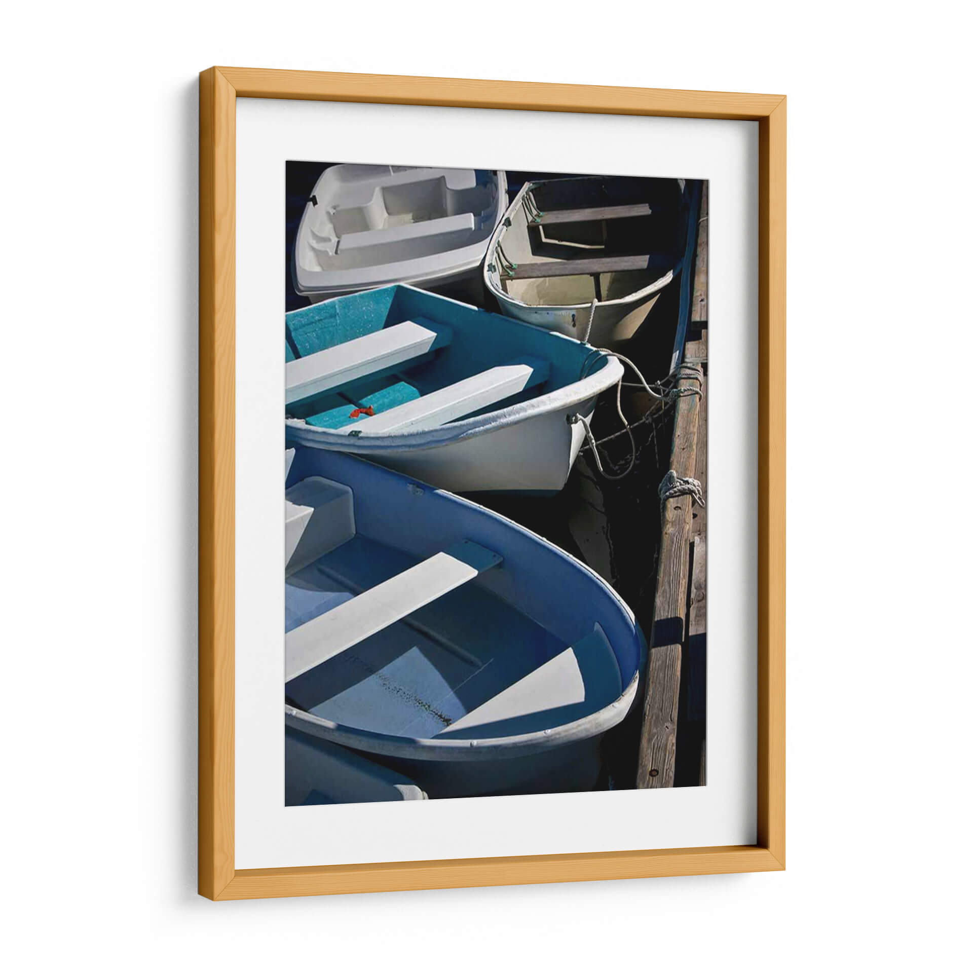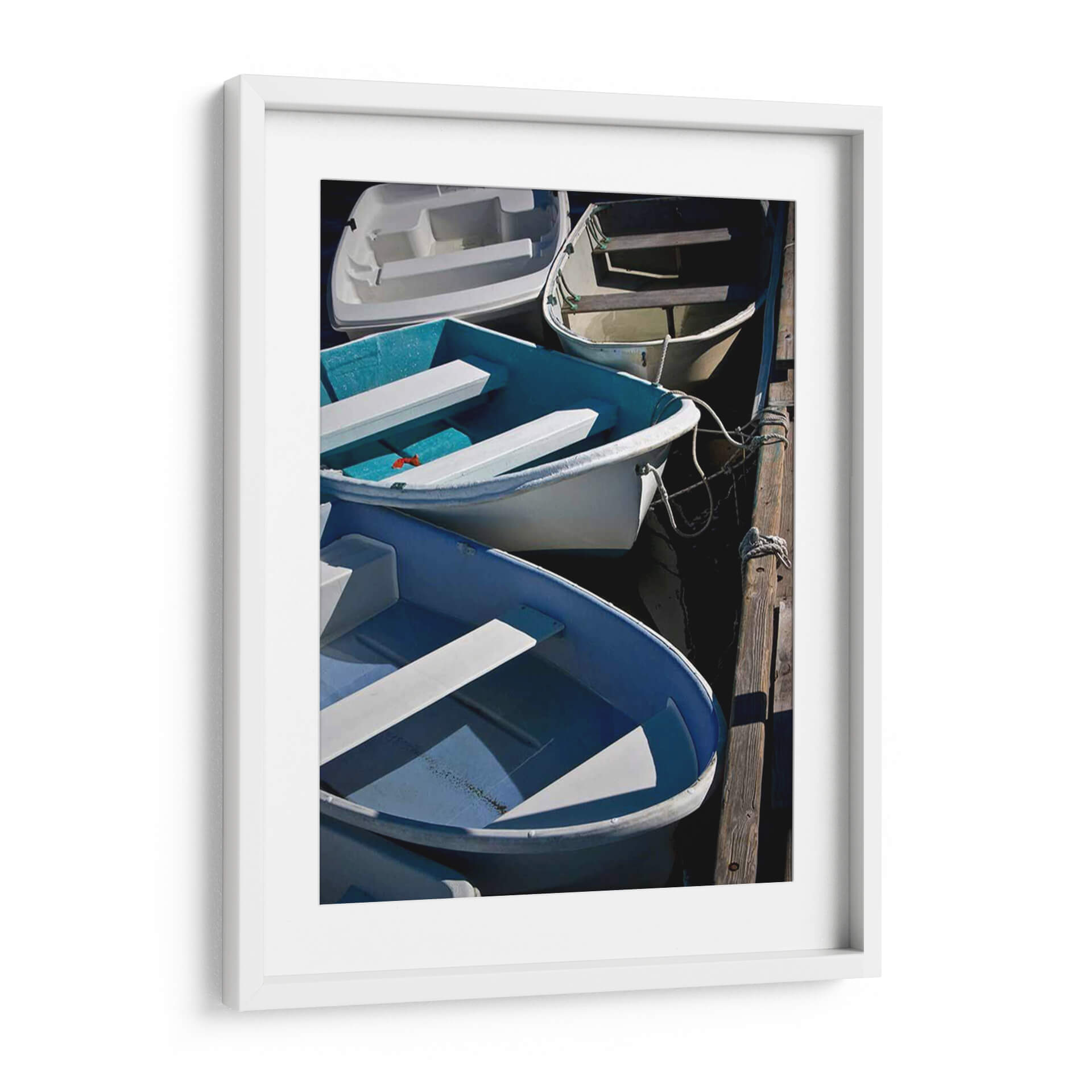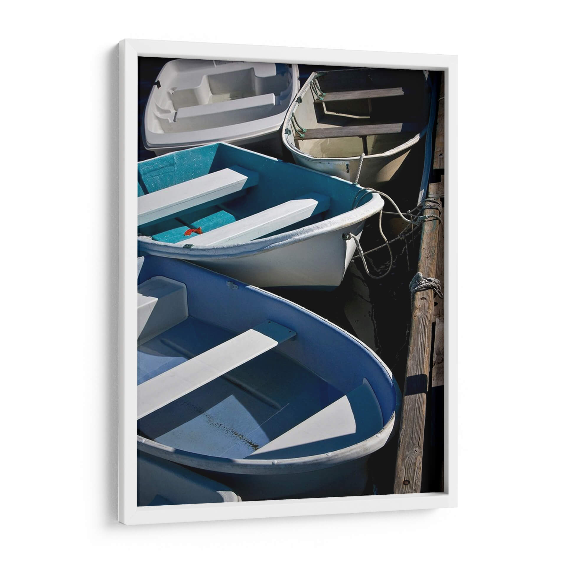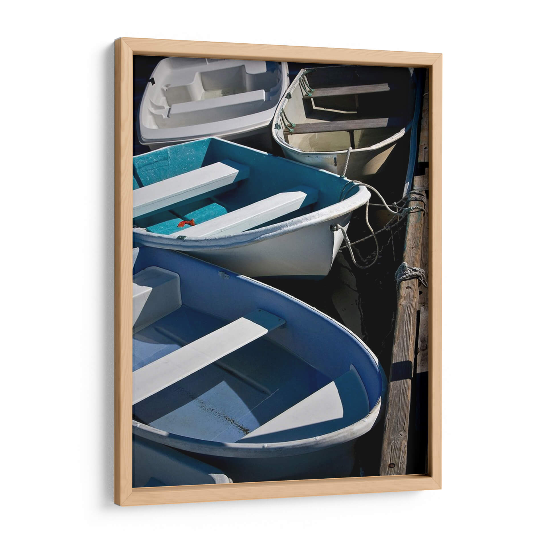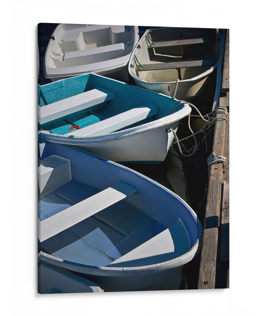 Sumérgete en la serenidad marítima con 'Barcos De Fila IV', una obra de Rachel Perry que captura la esencia de un día tranquilo en el muelle. Este cuadro decorativo presenta una composición íntima de varios botes anclados, sus cascos de un azul profundo y blanco nítido contrastando maravillosamente con las aguas oscuras y la textura rústica de la madera del muelle. La luz del sol juega sobre las superficies, creando sombras y reflejos que añaden profundidad y realismo a la escena. Perry utiliza una paleta de colores que evoca calma y contemplación, perfecta para quienes buscan un refugio visual en su hogar u oficina. La simplicidad de las formas de los botes y la claridad de la composición invitan a la relajación y a la reflexión sobre la vida costera. Este cuadro es ideal para añadir un toque de frescura y tranquilidad a cualquier espacio, transformando una pared en una ventana a un momento de paz. Su estilo fotográfico y el enfoque detallado lo convierten en una pieza versátil, capaz de complementar tanto decoraciones modernas como rústicas, aportando una atmósfera de vacaciones y desconexión.
