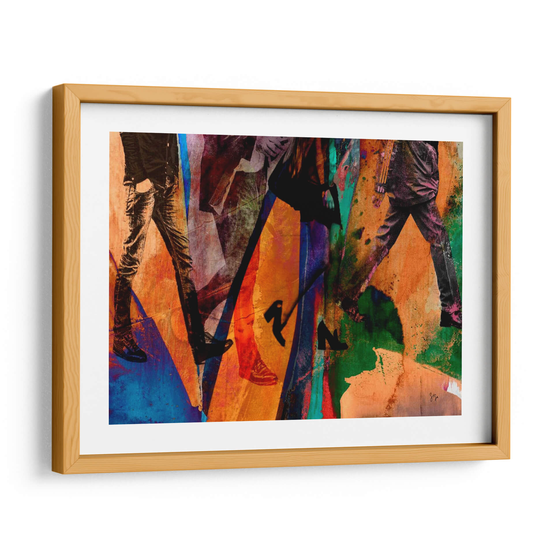Captura la energía vibrante y el dinamismo de la vida urbana con "Bullicio de San Francisco", una obra de arte contemporáneo de Sisa Jasper. Este cuadro decorativo trasciende la mera representación para invitar a la reflexión sobre el movimiento y la interacción humana en un entorno cosmopolita. La composición se centra en las piernas y los pies de varias figuras en movimiento, sugiriendo un paseo por una calle bulliciosa. El artista emplea una paleta de colores audaz y texturas ricas, con predominio de naranjas cálidos, azules intensos y verdes vibrantes, que se fusionan en un tapiz visualmente impactante. Las formas abstractas y las pinceladas enérgicas crean una sensación de urgencia y vitalidad, evocando el ritmo acelerado de la vida en la ciudad. Este cuadro es ideal para espacios que buscan un toque de modernidad y audacia, como salas de estar, estudios de diseño o oficinas. "Bullicio de San Francisco" no es solo una pieza decorativa, sino una ventana a la complejidad y la belleza del movimiento humano, perfecta para quienes aprecian el arte abstracto con narrativa. Su estilo único y la intensidad de sus colores lo convierten en un punto focal inconfundible para cualquier decoración.