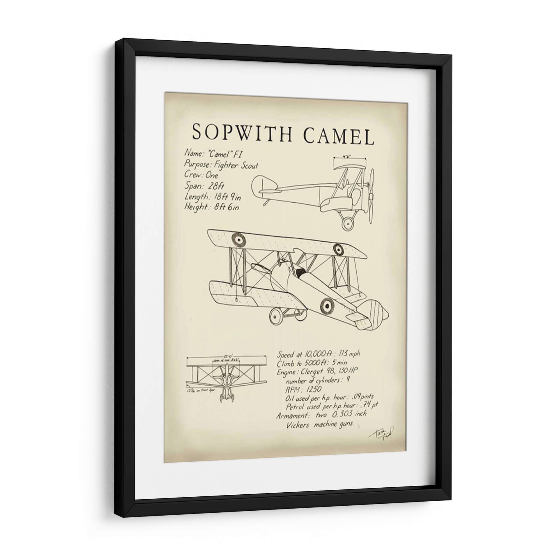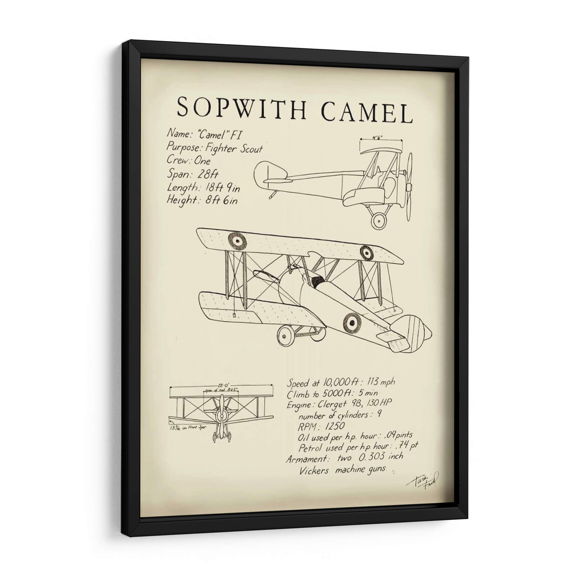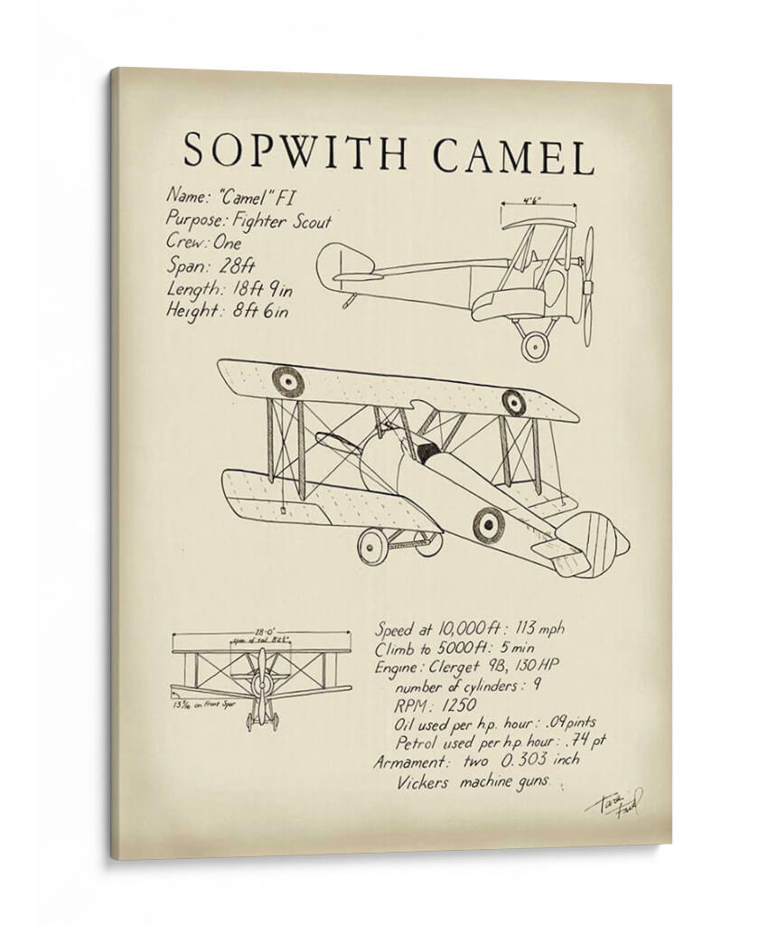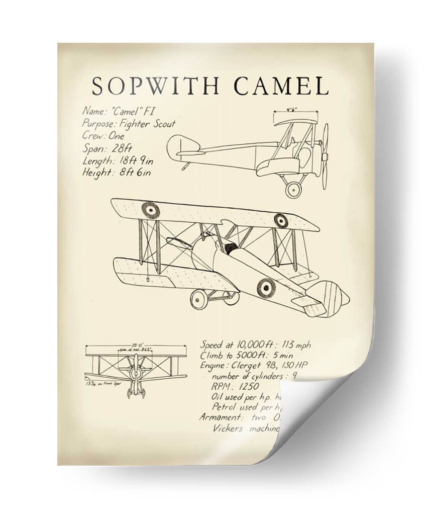 Celebra la ingeniería aeronáutica y el espíritu de la aviación con este impresionante cuadro decorativo del Sopwith Camel. Diseñada con un estilo de diagrama técnico, esta obra captura la esencia de uno de los aviones de combate más icónicos de la Primera Guerra Mundial. La pieza presenta un detallado boceto del biplano, junto con sus especificaciones técnicas clave como su propósito como caza, la tripulación, envergadura, longitud y altura, así como detalles de rendimiento y armamento. La paleta de colores se mantiene neutra, centrada en tonos sepia y blanco roto, que evocan una sensación de nostalgia y autenticidad histórica. Este cuadro decorativo es perfecto para cualquier entusiasta de la aviación, aficionado a la historia militar o para aquellos que buscan añadir un toque de carácter industrial y vintage a su hogar u oficina. Su diseño limpio y directo lo convierte en un punto focal interesante para una sala de estar moderna, un estudio o incluso un dormitorio temático, aportando una dosis de historia y un aire de aventura a cualquier espacio. Añade este diagrama detallado a tu colección y rinde homenaje a una máquina voladora legendaria.