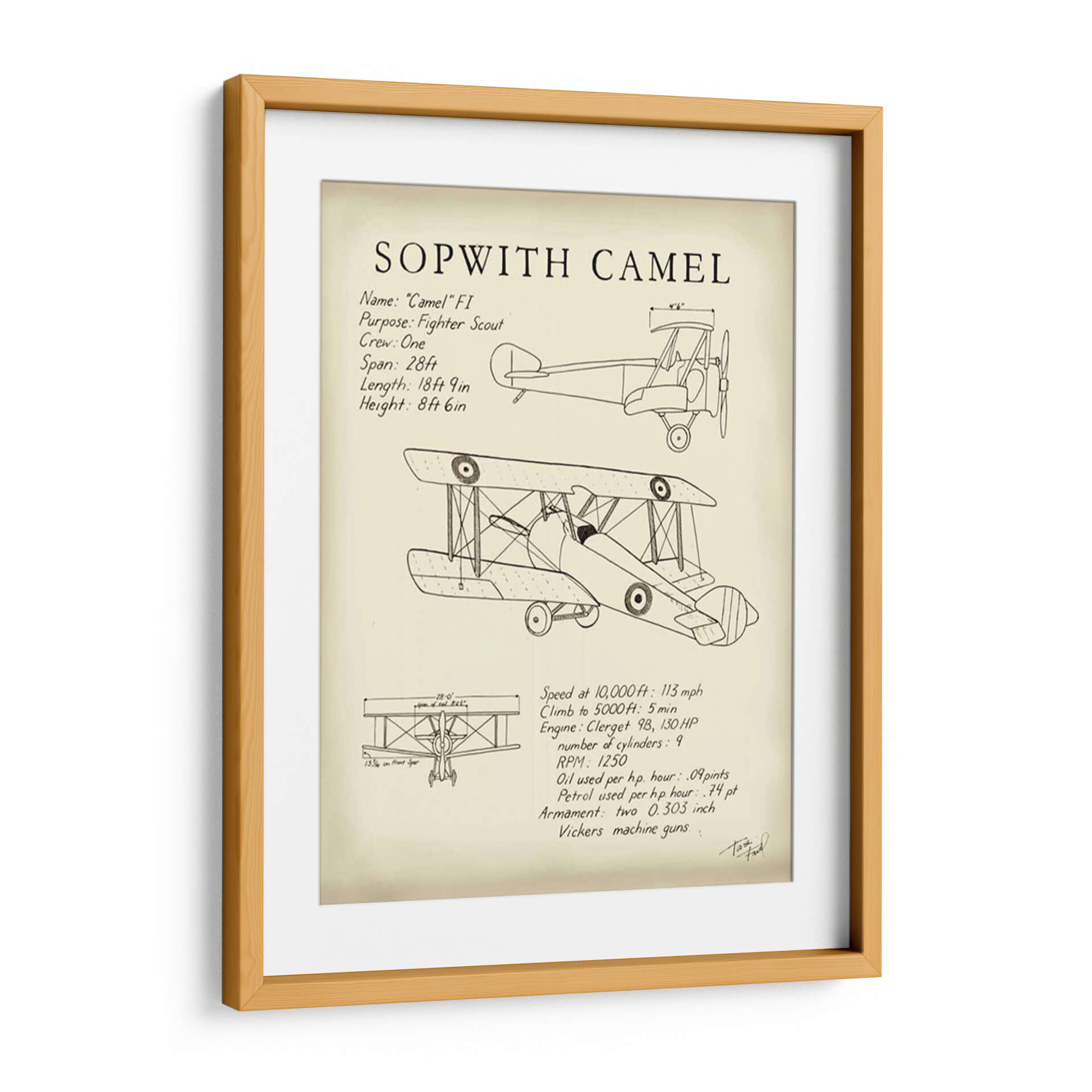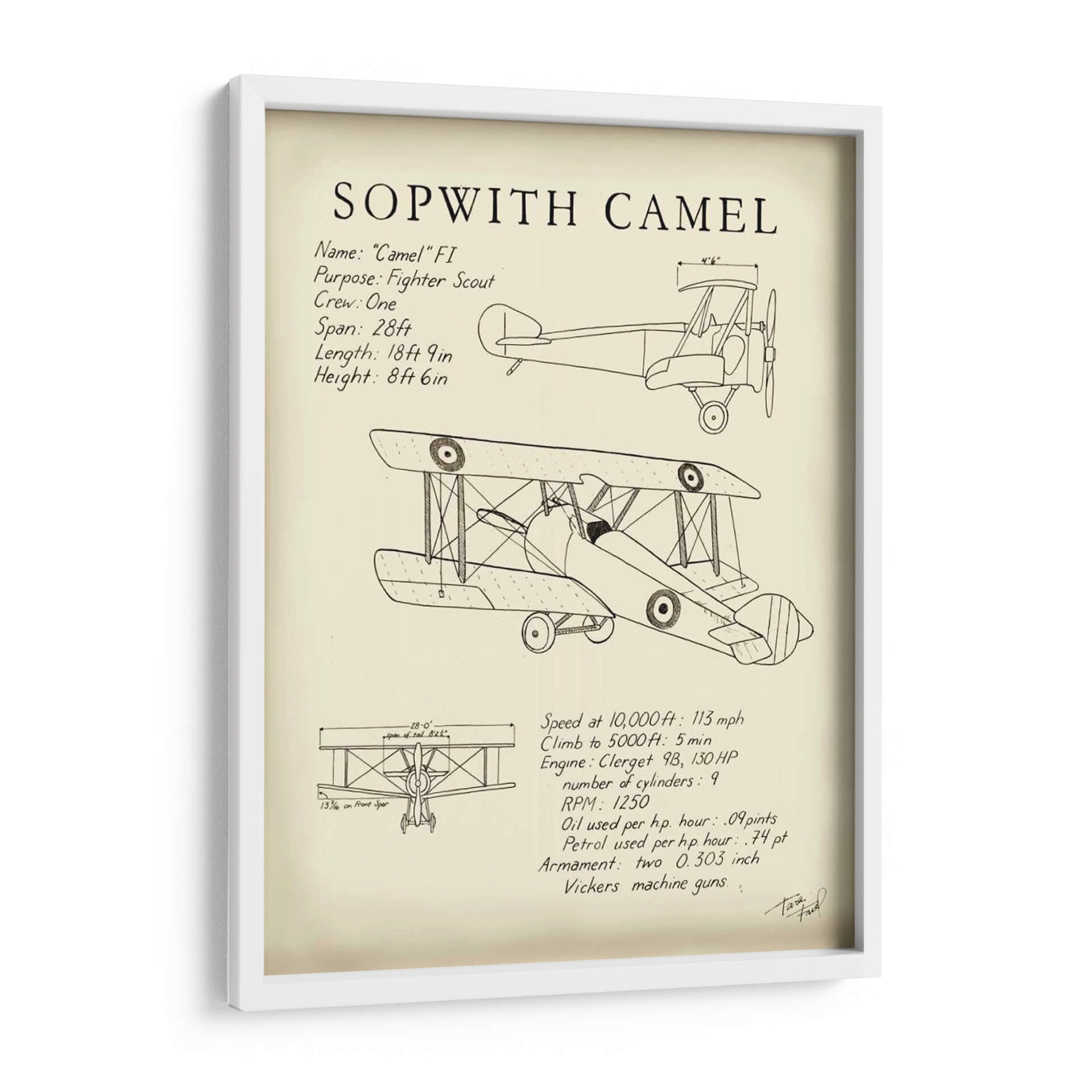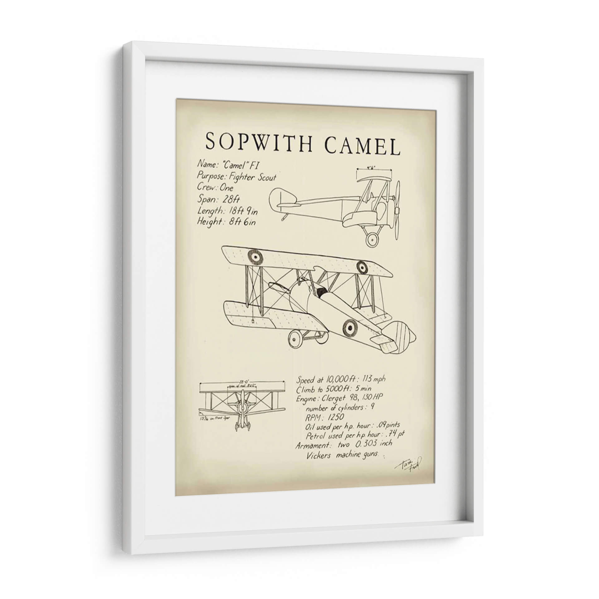 Celebra la ingeniería aeronáutica y el espíritu de la aviación con este impresionante cuadro decorativo del Sopwith Camel. Diseñada con un estilo de diagrama técnico, esta obra captura la esencia de uno de los aviones de combate más icónicos de la Primera Guerra Mundial. La pieza presenta un detallado boceto del biplano, junto con sus especificaciones técnicas clave como su propósito como caza, la tripulación, envergadura, longitud y altura, así como detalles de rendimiento y armamento. La paleta de colores se mantiene neutra, centrada en tonos sepia y blanco roto, que evocan una sensación de nostalgia y autenticidad histórica. Este cuadro decorativo es perfecto para cualquier entusiasta de la aviación, aficionado a la historia militar o para aquellos que buscan añadir un toque de carácter industrial y vintage a su hogar u oficina. Su diseño limpio y directo lo convierte en un punto focal interesante para una sala de estar moderna, un estudio o incluso un dormitorio temático, aportando una dosis de historia y un aire de aventura a cualquier espacio. Añade este diagrama detallado a tu colección y rinde homenaje a una máquina voladora legendaria.