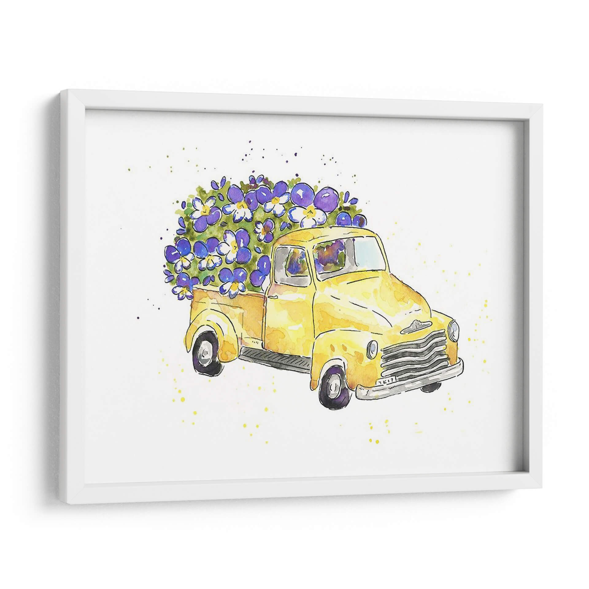 Este encantador cuadro decorativo, titulado 'Camión De Flores Vi' de Catherine McGuire, captura la nostalgia y la alegría de un camión clásico amarillo repleto de vibrantes flores azules y moradas. La técnica de acuarela utilizada por la artista aporta una ligereza y frescura inigualables, con pinceladas sueltas y salpicaduras de color que crean una atmósfera etérea y llena de vida. Los tonos cálidos del amarillo del camión contrastan maravillosamente con los fríos y delicados pétalos de las flores, generando un punto focal dinámico y atractivo. Es una pieza que evoca sentimientos de primavera, dulzura y despreocupación, perfecta para añadir un toque de color y optimismo a cualquier estancia. Ideal para salones modernos, dormitorios acogedores o incluso para dar un aire fresco a una oficina. Este cuadro decorativo es una celebración de la belleza simple y la naturaleza, invitando a la contemplación y al disfrute de los pequeños detalles de la vida. Su estilo único lo convierte en un elemento de conversación y un reflejo de buen gusto.