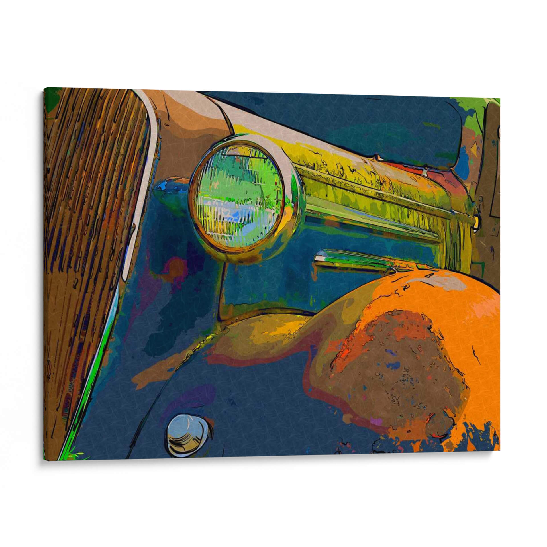 Embárquese en un viaje nostálgico con "Classic Cruisin III", una obra de arte vibrante que captura la esencia de los automóviles clásicos con un estilo contemporáneo y audaz. Este cuadro decorativo presenta un primer plano de un vehículo icónico, destacando su icónica parrilla y faro con una paleta de colores rica y expresiva. Los tonos azules profundos se entrelazan con toques de amarillo, naranja y marrón, creando una composición dinámica que evoca la energía y el espíritu de una época pasada. El estilo artístico, que fusiona elementos del pop art y el expresionismo, aporta una textura visual única y un carácter distintivo a la pieza. "Classic Cruisin III" es ideal para añadir un toque de personalidad y estilo retro a cualquier espacio, ya sea una sala de estar moderna, un estudio o un garaje temático. Su diseño intrigante y sus colores audaces lo convierten en un punto focal que invita a la conversación y estimula la imaginación, celebrando la ingeniería y el diseño automotriz con una perspectiva fresca y artística. Descubra la perfecta fusión de arte y automoción que dará vida a sus paredes.