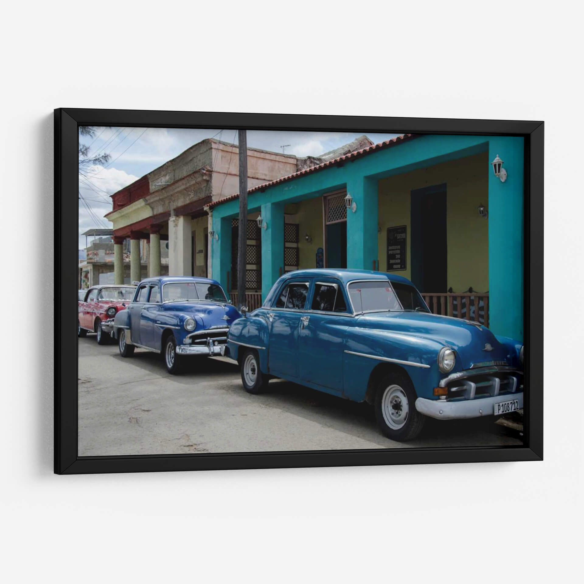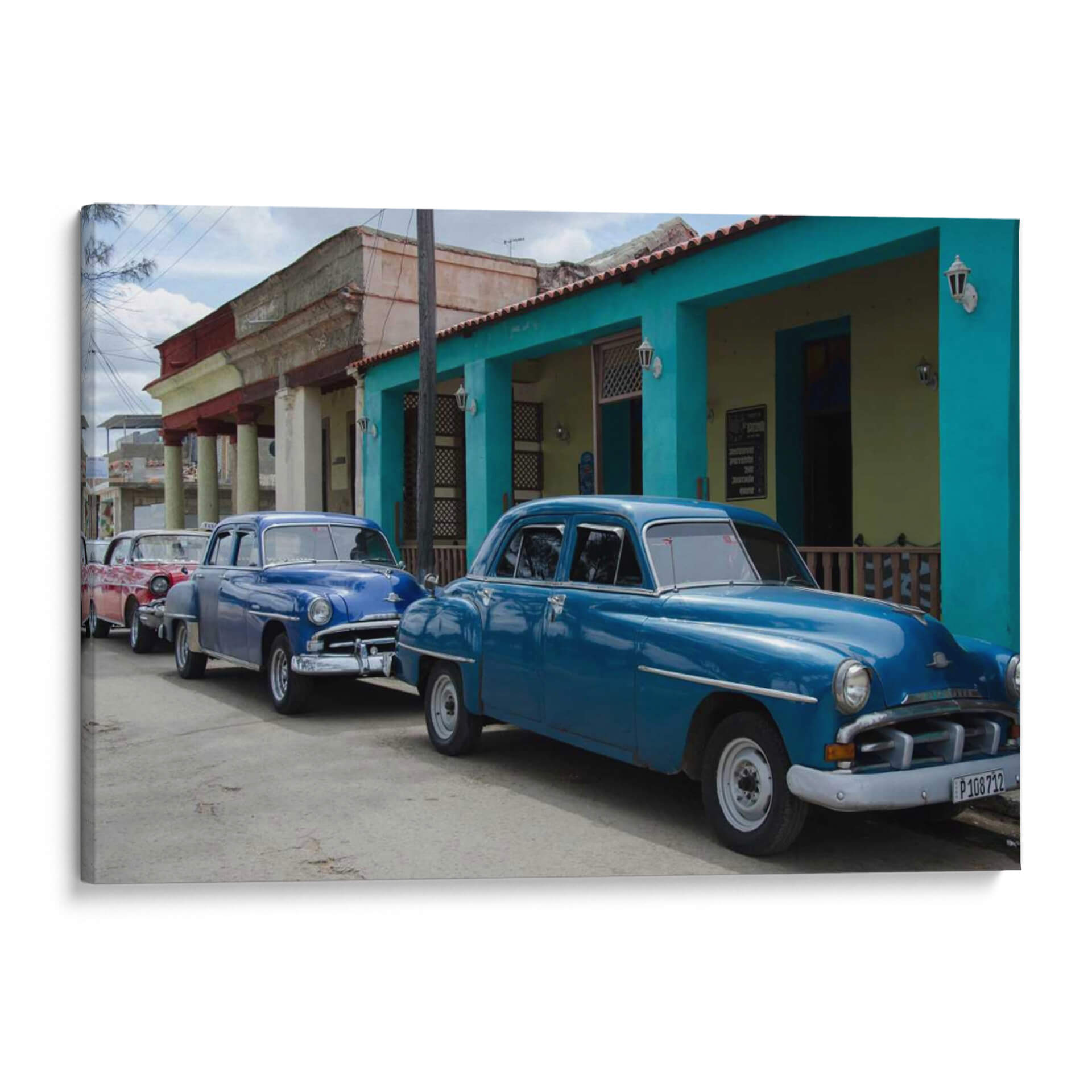 Captura la esencia vibrante de Cuba con "Coches De Cuba Viii", una obra de Laura DeNardo que transporta instantáneamente a las calles coloridas y nostálgicas de la isla. Este cuadro decorativo presenta una hilera de vehículos clásicos, con un prominente coche azul en primer plano que irradia un encanto retro. Los edificios circundantes, con sus fachadas pintadas en tonos vibrantes de azul turquesa y amarillo, junto con detalles arquitectónicos clásicos, crean una atmósfera auténtica y evocadora. La paleta de colores, rica y saturada, combinada con la luz natural, realza la textura y el carácter de la escena, invitando a la contemplación de una época pasada. La composición, con los coches alineados y la perspectiva que se adentra en la calle, sugiere una narrativa de movimiento y vida cotidiana. Esta pieza es ideal para añadir un toque de carácter y color a cualquier salón, estudio u oficina, atrayendo las miradas y generando conversación. Es una invitación a revivir la magia de los viajes y la belleza atemporal del diseño automovilístico clásico. "Coches De Cuba Viii" no es solo una imagen, es una ventana a un mundo lleno de historia y estilo.