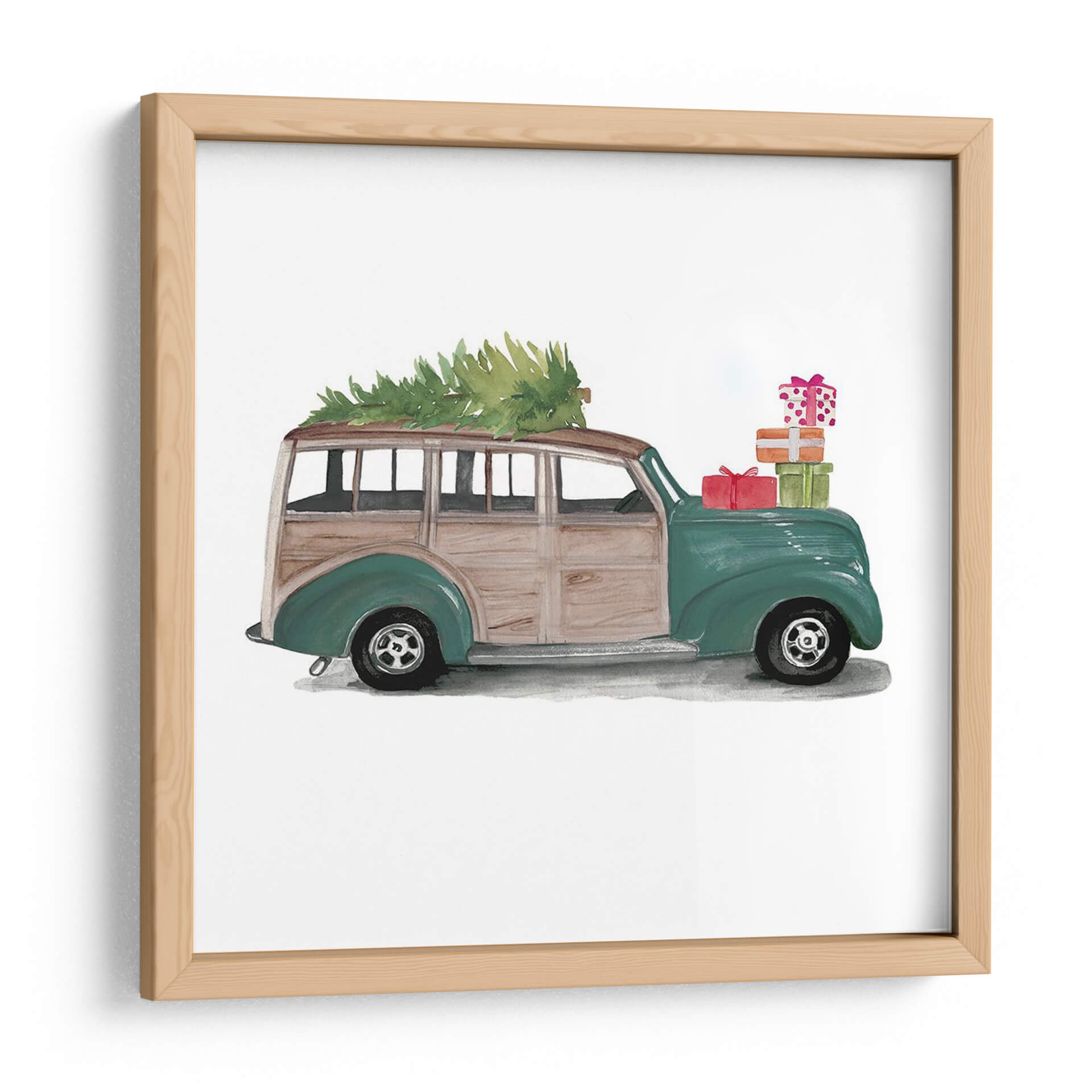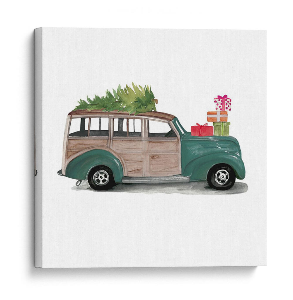 Captura la magia de las fiestas con "Coches De Navidad Iv", una encantadora obra de arte de Jennifer Paxton Parker. Esta pieza evoca una nostálgica sensación navideña, presentando un clásico coche familiar de madera de los años 50, cargado con un frondoso árbol de Navidad en el techo y coloridos regalos apilados sobre el capó. La paleta de colores, dominada por el verde bosque del árbol, el verde azulado del coche y los tonos cálidos de la madera, crea una atmósfera acogedora y festiva. El estilo de acuarela suave y las pinceladas delicadas aportan una textura artesanal y un encanto único a la composición. Ideal para añadir un toque de alegría y espíritu navideño a tu sala de estar, comedor o incluso a un espacio de oficina durante la temporada de invierno. Este cuadro decorativo es perfecto para quienes buscan una pieza que celebre la tradición y la calidez de la Navidad con un toque artístico y contemporáneo. Su diseño atemporal lo convierte en un complemento excepcional para cualquier decoración, inspirando momentos de unión familiar y recuerdo de tiempos pasados. Añade esta encantadora escena a tu hogar y deja que la alegría navideña fluya.