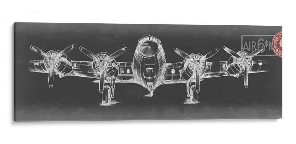 Sumérgete en la historia y la ingeniería con este impactante cuadro decorativo de la "Colección Aeronáutica F" de Ethan Harper. La obra presenta un detallado boceto a tiza de un avión cuatrimotor, evocando una sensación de nostalgia y admiración por la aviación clásica. La paleta de colores monocromática, con un distintivo sello postal rojo de "AIR MAIL", aporta un toque de autenticidad y carácter, mientras que el fondo oscuro y texturizado simula una pizarra, haciendo que el aeroplano destaque con una claridad excepcional. La composición frontal, que abarca toda la anchura del lienzo, captura la majestuosidad y la potencia de esta máquina voladora histórica. Este cuadro es ideal para espacios que buscan un aire de sofisticación y un guiño al pasado, como oficinas, estudios o salas de estar con una estética industrial o vintage. Añade un toque de elegancia atemporal y una pieza de conversación única a tu decoración con esta obra maestra inspirada en la aviación.