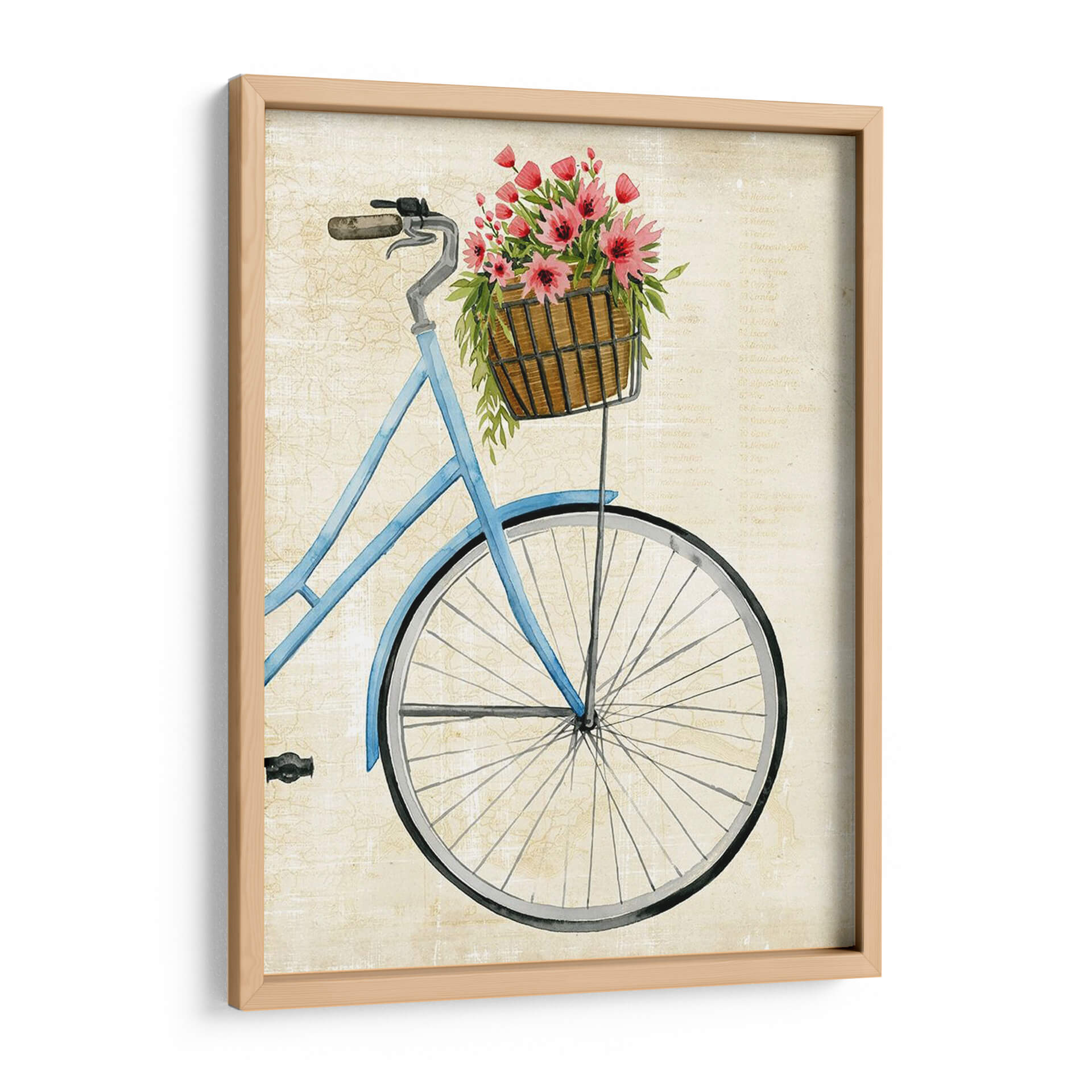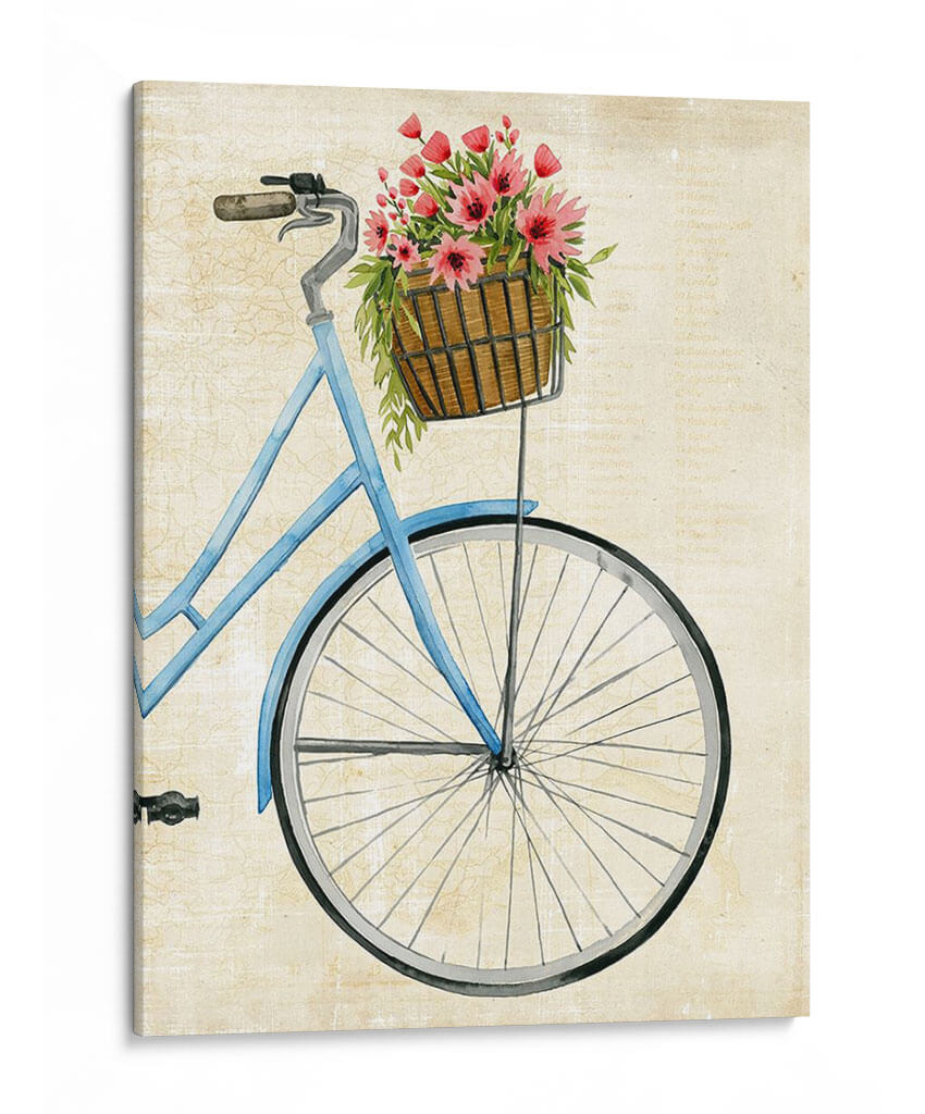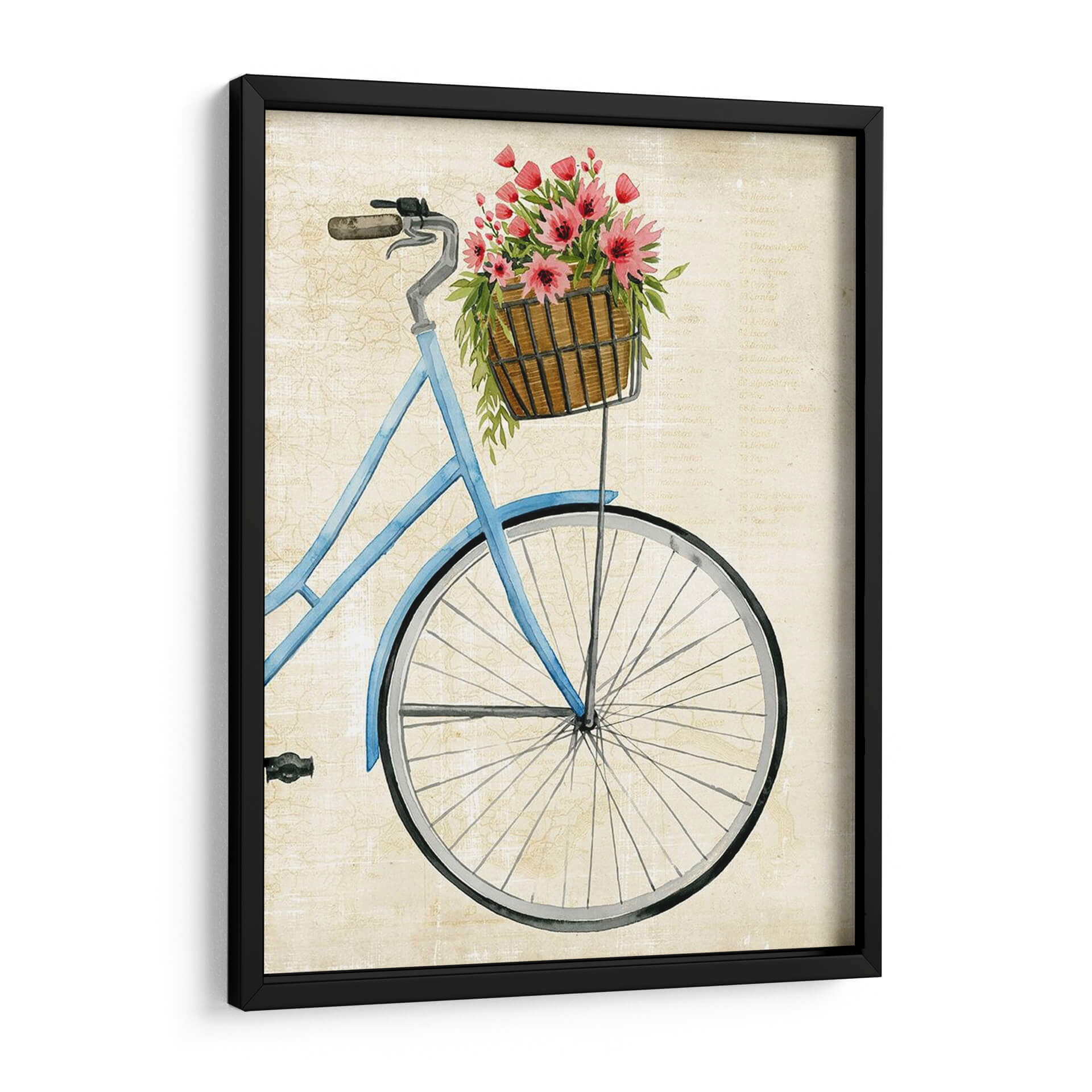 Emb uevo en un viaje visual con "Courier Fleur II", una obra de arte que captura la esencia de la primavera y la delicadeza. Este cuadro decorativo presenta una encantadora bicicleta de color azul cielo, adornada con una cesta rebosante de flores vibrantes en tonos rosados y rojos. El estilo acuarela aporta una ligereza etérea, mientras que el fondo texturizado, reminiscentes de mapas antiguos o papeles desgastados, añade profundidad y un toque nostálgico. La composición se centra en la rueda delantera y el manillar, creando un primer plano íntimo que invita a la contemplación. Es una pieza perfecta para infundir alegría y un aire fresco a cualquier espacio, desde un salón luminoso hasta un dormitorio acogedor o una cocina con encanto. Ideal para quienes buscan una decoración de pared que evoque sentimientos de paz, naturaleza y un toque romántico. "Courier Fleur II" no es solo una imagen, es una invitación a soñar con paseos floridos y momentos de serenidad. Transforma tu hogar con esta pieza única que celebra la belleza simple y la vitalidad de la naturaleza.