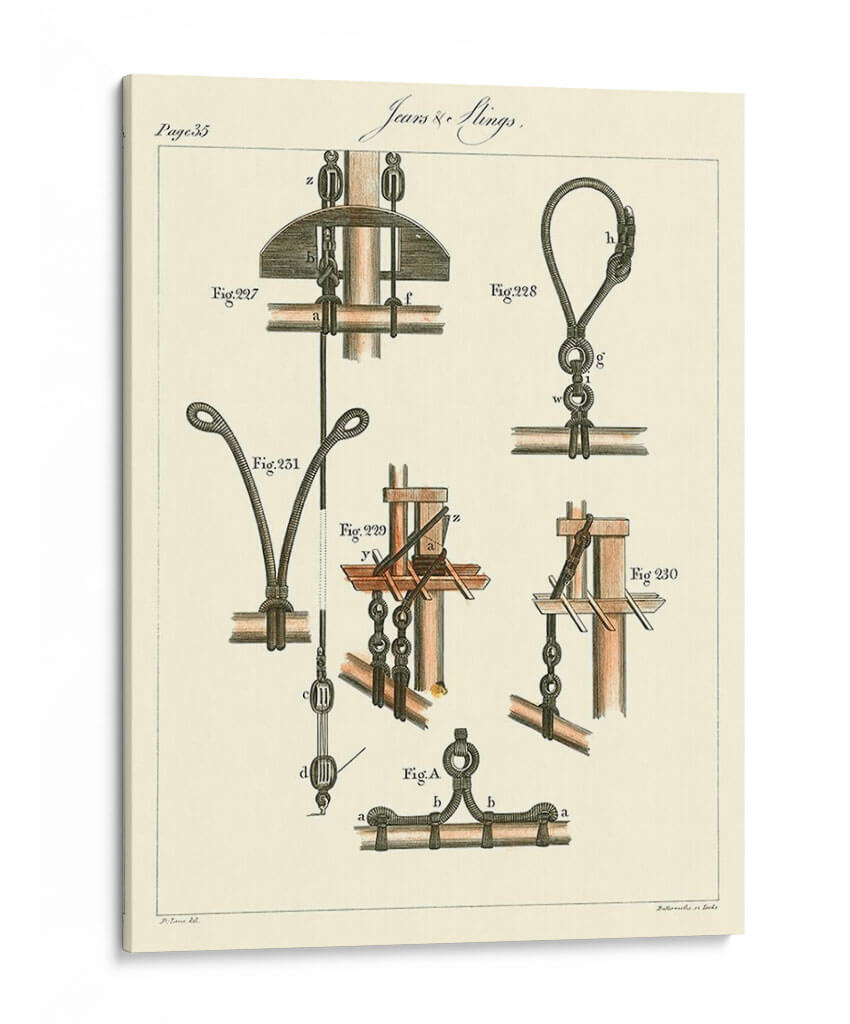 Descubre "Detalles Náuticos Vi", una obra de arte inspirada en la ingeniería naval y los aparejos marítimos. Este cuadro decorativo presenta una detallada ilustración técnica de diversos nudos, poleas y sistemas de sujeción, reminiscentes de las ilustraciones científicas del siglo XVIII. La paleta de colores se centra en tonos tierra y sepia sobre un fondo crema, evocando una sensación de autenticidad histórica y rigor. Los intrincados dibujos de cada componente, etiquetados con figuras y letras, invitan a la contemplación de la precisión y la funcionalidad. Ideal para despachos, estudios o cualquier espacio que valore el conocimiento técnico, la navegación o la historia marítima. Este cuadro decorativo es perfecto para añadir un toque intelectual y de carácter a tu decoración, sirviendo como un recordatorio visual de la ingeniosidad humana en el mar. Su diseño clásico y su enfoque temático lo convierten en una pieza única para coleccionistas y entusiastas de la náutica.