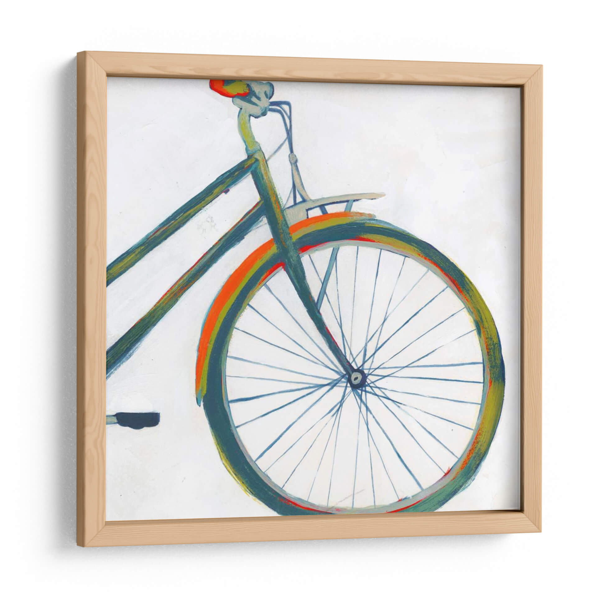 Capta la esencia del movimiento y la nostalgia con "Díptico De Bicicleta II", una obra de arte contemporáneo que celebra la icónica bicicleta. Esta pieza, creada por Grace Popp, presenta un diseño vibrante y estilizado de una bicicleta, centrándose en sus líneas dinámicas y la rueda delantera con sus intrincados radios. La paleta de colores, dominada por tonos verdes azulados, ocres y toques de naranja y rojo, crea una atmósfera juguetona pero sofisticada. El fondo blanco y minimalista permite que la figura central destaque, convirtiéndola en un punto focal atractivo. La técnica de pintura evoca una sensación de boceto rápido y enérgico, aportando autenticidad y carácter a la composición. Este cuadro decorativo es perfecto para infundir un espíritu de aventura y libertad en cualquier espacio, ya sea una sala de estar moderna, un estudio creativo o incluso una oficina. Su estilo único lo hace ideal para quienes buscan añadir un toque de color y personalidad a su decoración, resonando con amantes del diseño y la cultura urbana. Integra esta obra en tu hogar y deja que su diseño evoque recuerdos de paseos al aire libre y la simple alegría del viaje.