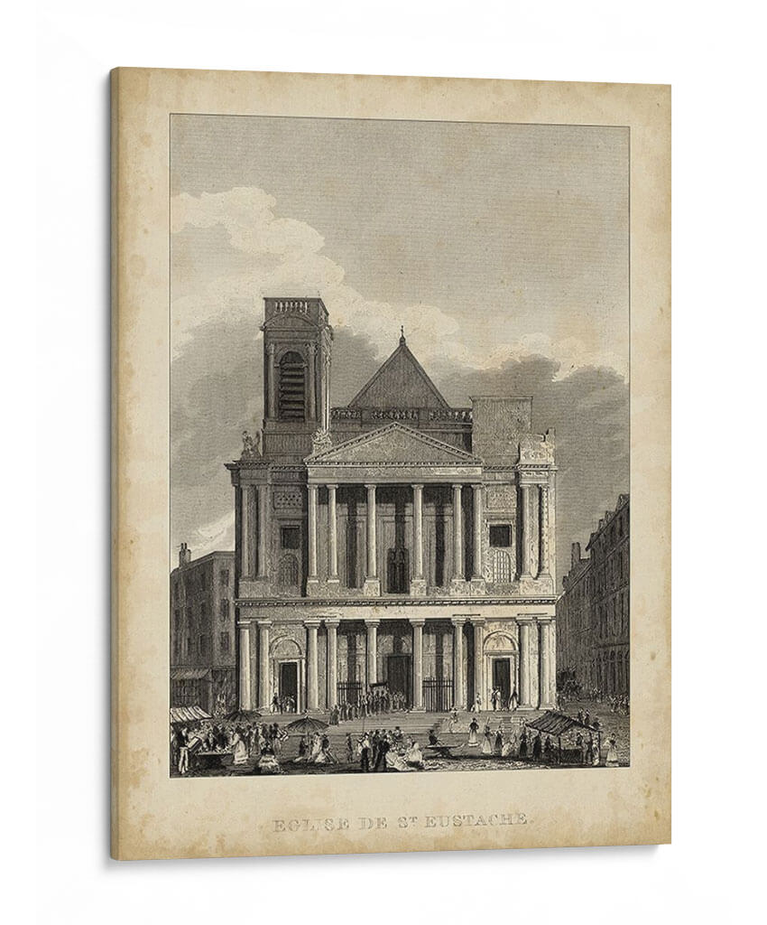 Capture la grandeza arquitectónica y el encanto histórico con este impresionante cuadro decorativo de la Église de Saint-Eustache. La obra, atribuida a A. Pugin, presenta una detallada ilustración en blanco y negro de la majestuosa fachada de la iglesia, realzada por imponentes columnas y un campanario distintivo. La escena se complementa con una animada multitud de figuras de época que pasean y disfrutan del día, añadiendo una sensación de vitalidad y contexto histórico a la composición. La atmósfera general es de sofisticación y serenidad, evocando la tranquilidad de una plaza histórica. Con su paleta monocromática y su detallada estampa, este cuadro es ideal para añadir un toque de elegancia clásica a cualquier espacio, ya sea una sala de estar, un estudio o una oficina. Su diseño atemporal lo convierte en una pieza decorativa versátil que complementa una amplia gama de estilos interiores, desde lo tradicional hasta lo contemporáneo. Añada una pieza de historia y arte a su hogar y cree un punto focal que invite a la contemplación y la admiración.