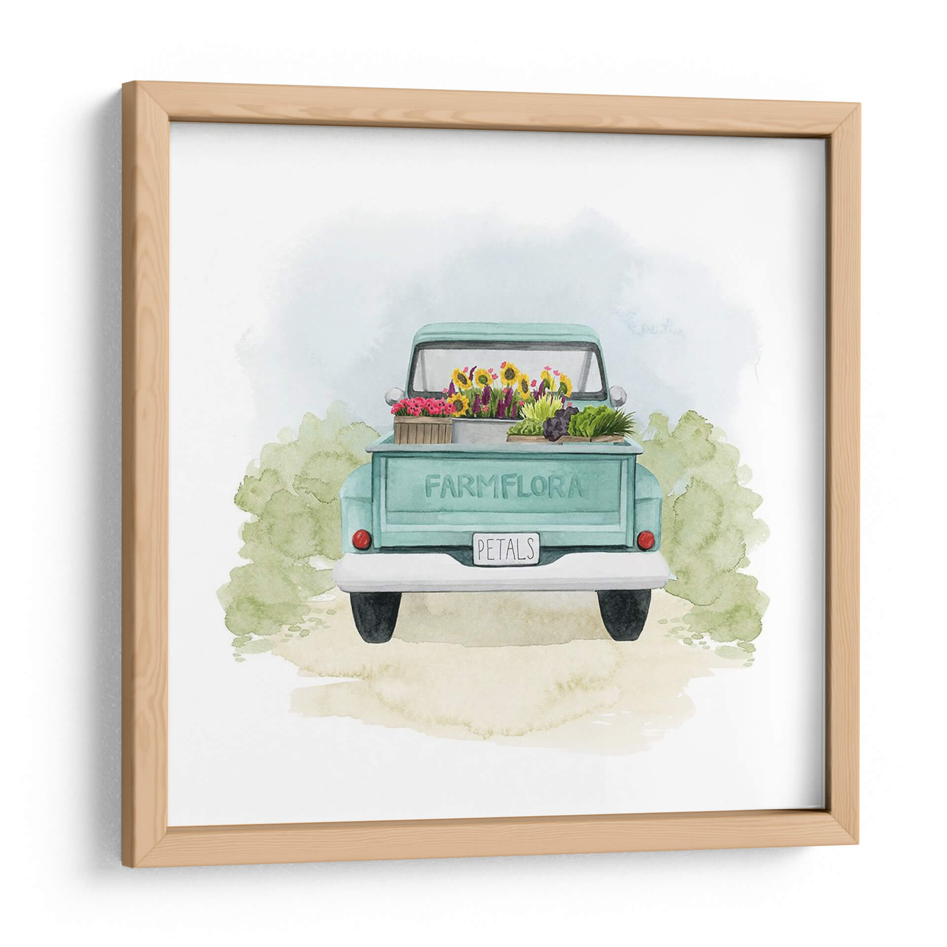 Embárcate en un viaje visual al campo con 'Farm Flora II', una encantadora obra de arte que captura la esencia de una camioneta vintage repleta de flores frescas y vibrantes. Esta pieza, creada por Grace Popp, irradia una sensación de nostalgia y la alegría sencilla de la naturaleza. La paleta de colores se centra en suaves tonos aguamarina para la camioneta, contrastando maravillosamente con los cálidos amarillos de los girasoles, los rosas intensos y los verdes exuberantes de otras flores y follaje. El estilo acuarela de Popp añade una delicadeza etérea, con pinceladas sueltas que evocan el movimiento suave del aire y la frescura de un jardín. El fondo difuminado en tonos pastel y las formas orgánicas de la vegetación circundante crean una atmósfera serena y acogedora. Este cuadro decorativo es perfecto para infundir calidez y un toque rústico-chic a cualquier espacio, ya sea en una cocina, un comedor, una sala de estar o incluso un dormitorio. Su tema universalmente atractivo lo convierte en una adición encantadora para aquellos que aprecian la belleza de la vida rural y la delicadeza floral. Deja que 'Farm Flora II' traiga un soplo de aire fresco y color a tu hogar.