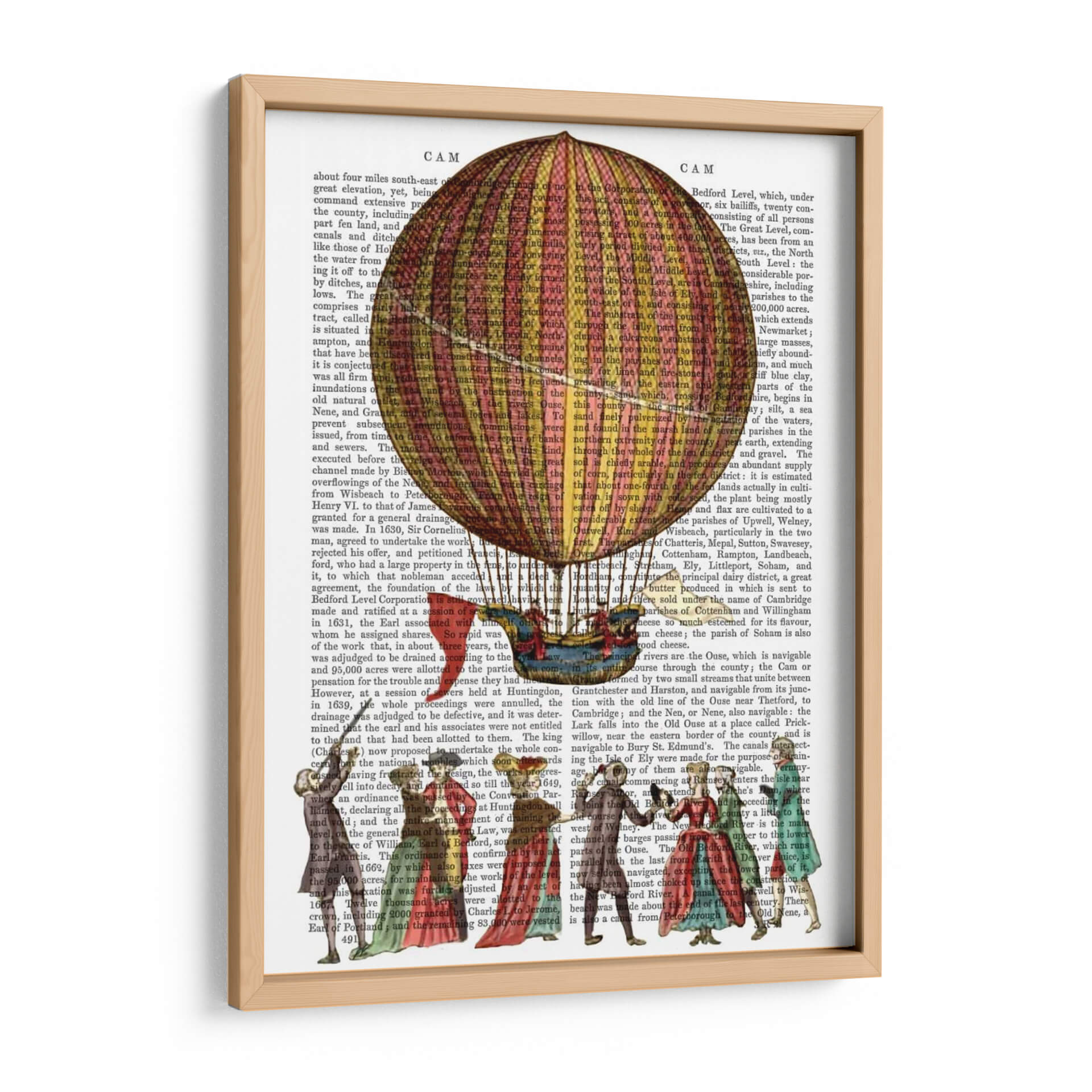 Embárquese en un viaje visual con este cautivador cuadro decorativo titulado 'Globo Aerostático Y Gente' del artista Fab Funky. La obra transporta al espectador a una época de exploración y maravilla, presentando un majestuoso globo aerostático suspendido en el aire sobre una escena que evoca el siglo XVIII. Figuras vestidas con trajes de época observan con asombro, añadiendo un toque humano y narrativo a la composición. Los colores, aunque predominantemente tierra y rojizos en el globo, se combinan con los tonos apagados del texto antiguo que sirve de fondo, creando una atmósfera nostálgica y elegante. Este cuadro es ideal para quienes buscan añadir un elemento de sofisticación histórica y un toque de aventura a su hogar u oficina. La detallada ilustración del globo y las figuras crea un punto focal intrigante, perfecto para salas de estar, estudios o bibliotecas, donde puede iniciar conversaciones y despertar la imaginación. Su estilo único, que fusiona lo histórico con un toque artístico contemporáneo, lo convierte en una pieza versátil, capaz de complementar tanto decoraciones clásicas como modernas, aportando carácter y profundidad a cualquier espacio.