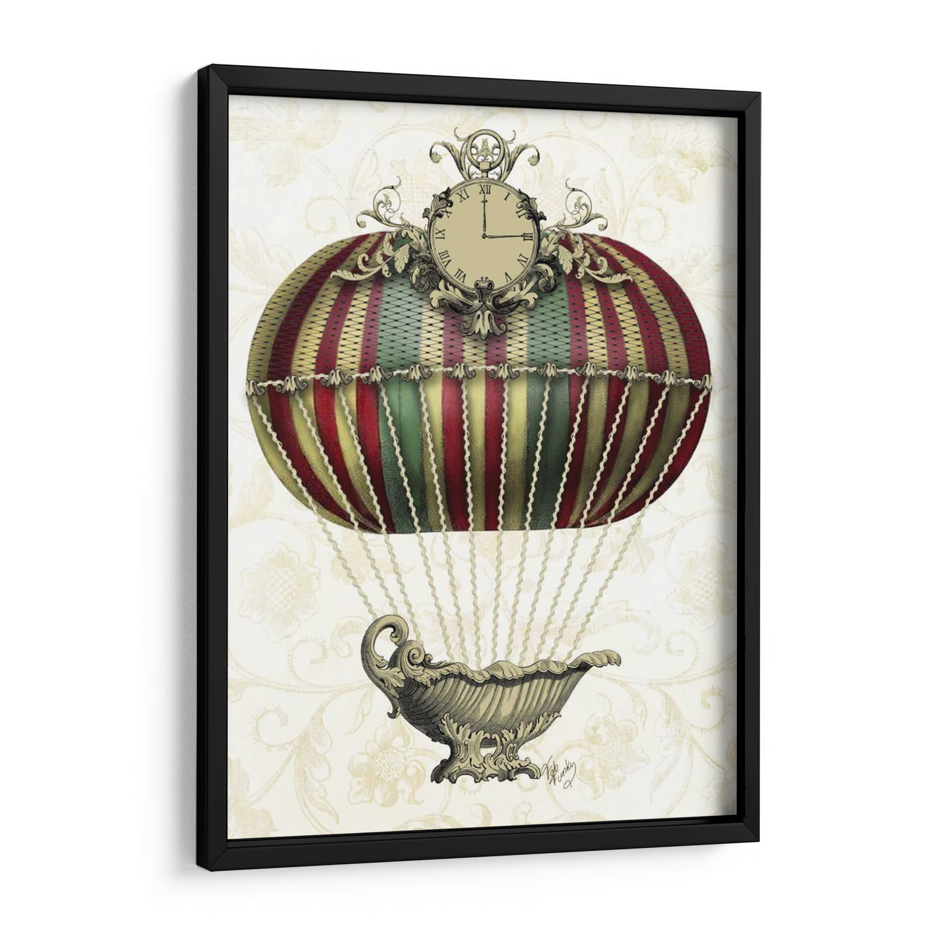 Embárquese en un viaje visual con "Globo Barroco Con Reloj", una obra de arte que fusiona lo clásico con lo imaginativo. Este cuadro decorativo presenta un globo aerostático de estilo victoriano, adornado con rayas vibrantes en tonos rojos, verdes y amarillos, evocando una sensación de aventura y nostalgia. Coronando el globo, un elegante reloj antiguo con intrincados detalles ornamentales añade un toque de sofisticación y un guiño al paso del tiempo. La cesta colgante, de un diseño ornamentado y metálico, completa la escena, sugiriendo un viaje suspendido entre el pasado y el presente. El fondo, con un sutil patrón floral en tonos crema, proporciona un contraste delicado que permite que la pieza central destaque con fuerza. Ideal para salones, estudios o comedores, este cuadro es perfecto para quienes buscan añadir un elemento de carácter, elegancia y un toque de fantasía a su decoración. Su estilo ecléctico lo convierte en una pieza versátil, capaz de complementar tanto ambientes clásicos como contemporáneos, invitando a la conversación y a la admiración.