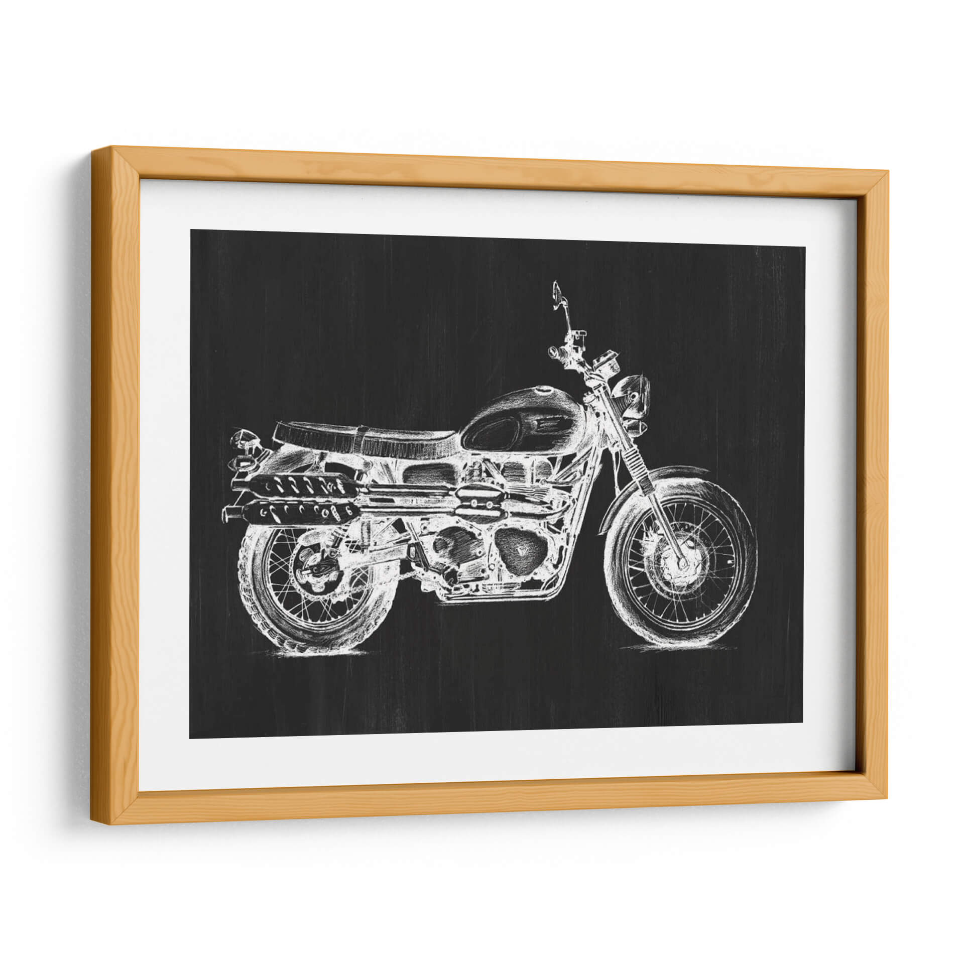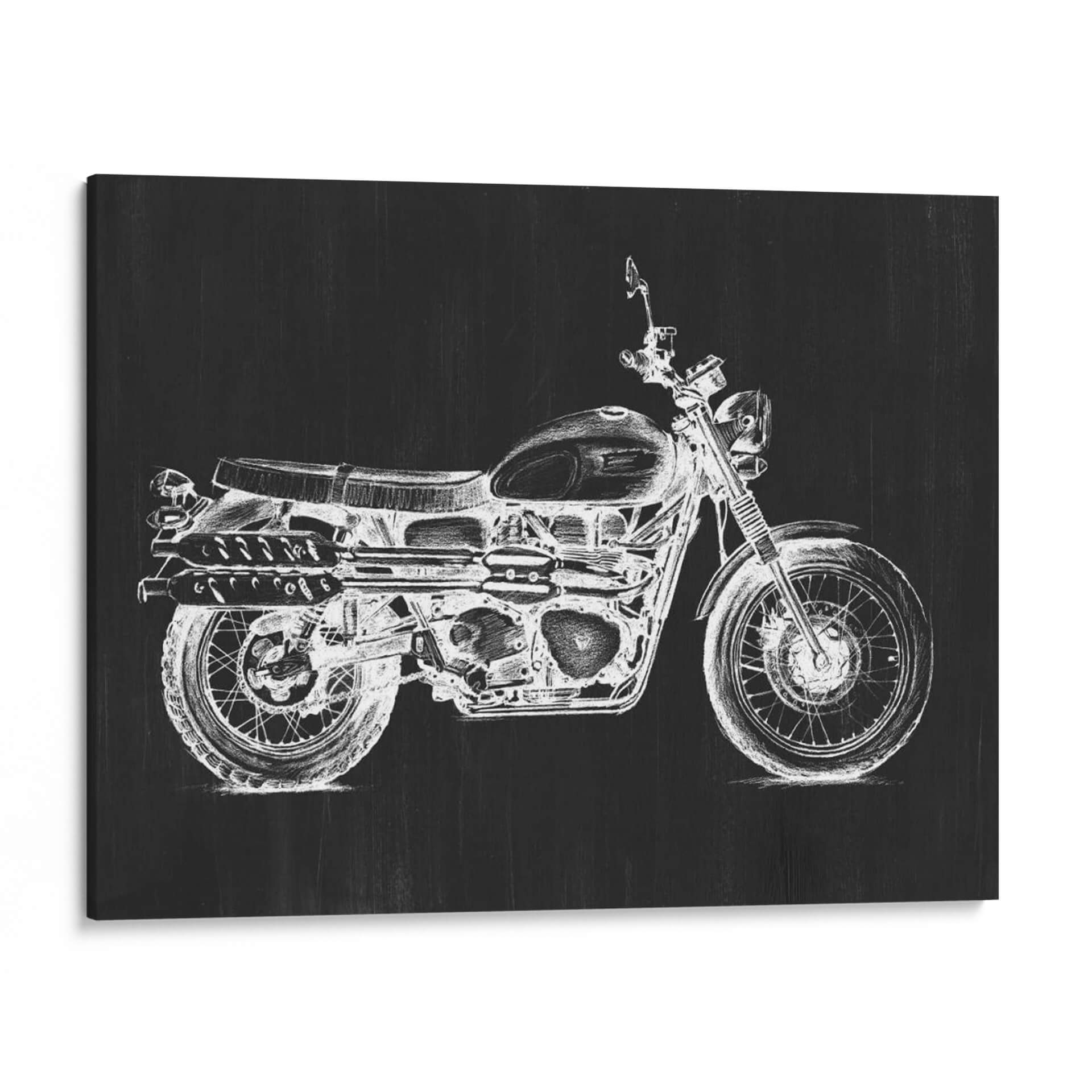 Captura la esencia del espíritu libre y la ingeniería audaz con este cautivador cuadro decorativo de una motocicleta, obra de Megan Meagher. La pieza presenta un detallado boceto a lápiz de una motocicleta clásica sobre un fondo oscuro y texturizado, evocando una sensación de nostalgia y aventura. Los trazos blancos nítidos resaltan las líneas icónicas del vehículo, desde el motor hasta los detalles del manillar y las ruedas, creando un contraste dramático y un impacto visual innegable. Es una obra de arte que celebra la libertad, la velocidad y el diseño atemporal de las motocicletas. Ideal para espacios masculinos, garajes, estudios o cualquier lugar que busque un toque de carácter y rebeldía. Este cuadro decorativo no solo embellecerá tu pared, sino que también servirá como un punto de conversación, invitando a admirar la maestría artística y la pasión por el motociclismo. Añade un aire de sofisticación industrial y un espíritu intrépido a tu decoración interior con esta pieza única de arte mural.