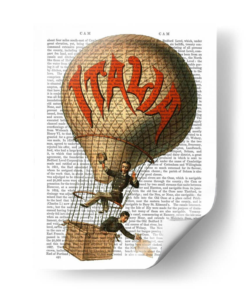 Sumérgete en la nostalgia y la aventura con "Italia Globo De Aire Caliente", una obra de arte inspirada en la época dorada de la exploración aérea. Este cuadro decorativo presenta un globo aerostático vintage, con detalles intrincados en tonos sepia y tierra, flotando sobre un fondo de texto antiguo que evoca la sensación de un mapa o documento histórico. Dos figuras masculinas vestidas con trajes de época se encuentran en la cesta, añadiendo un toque humano y narrativo a la composición. La paleta de colores cálidos y apagados, combinada con las texturas sutiles del papel envejecido, crea una atmósfera de descubrimiento, romanticismo y un viaje atemporal. Ideal para espacios que buscan un aire de sofisticación clásica, como estudios, bibliotecas o salas de estar con un estilo retro o industrial. Este cuadro es perfecto para aquellos que aprecian la historia, la invención y el encanto de los viajes de antaño, añadiendo un punto focal de conversación y elegancia a cualquier pared.