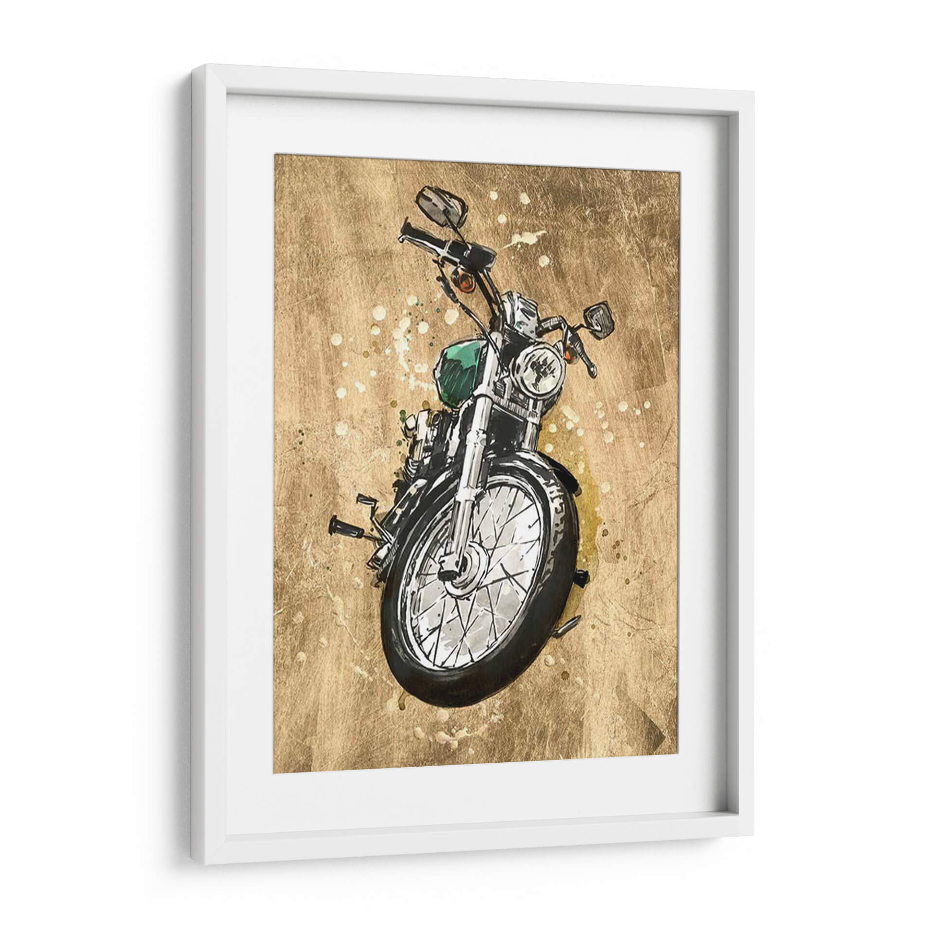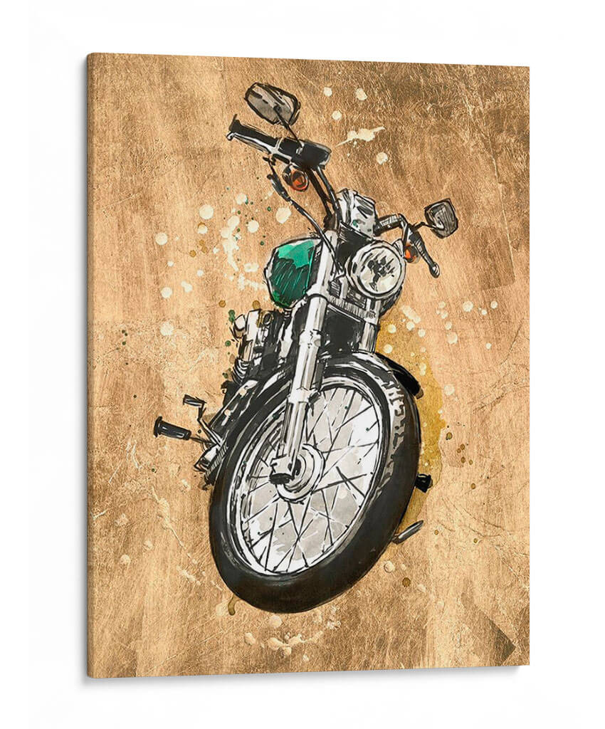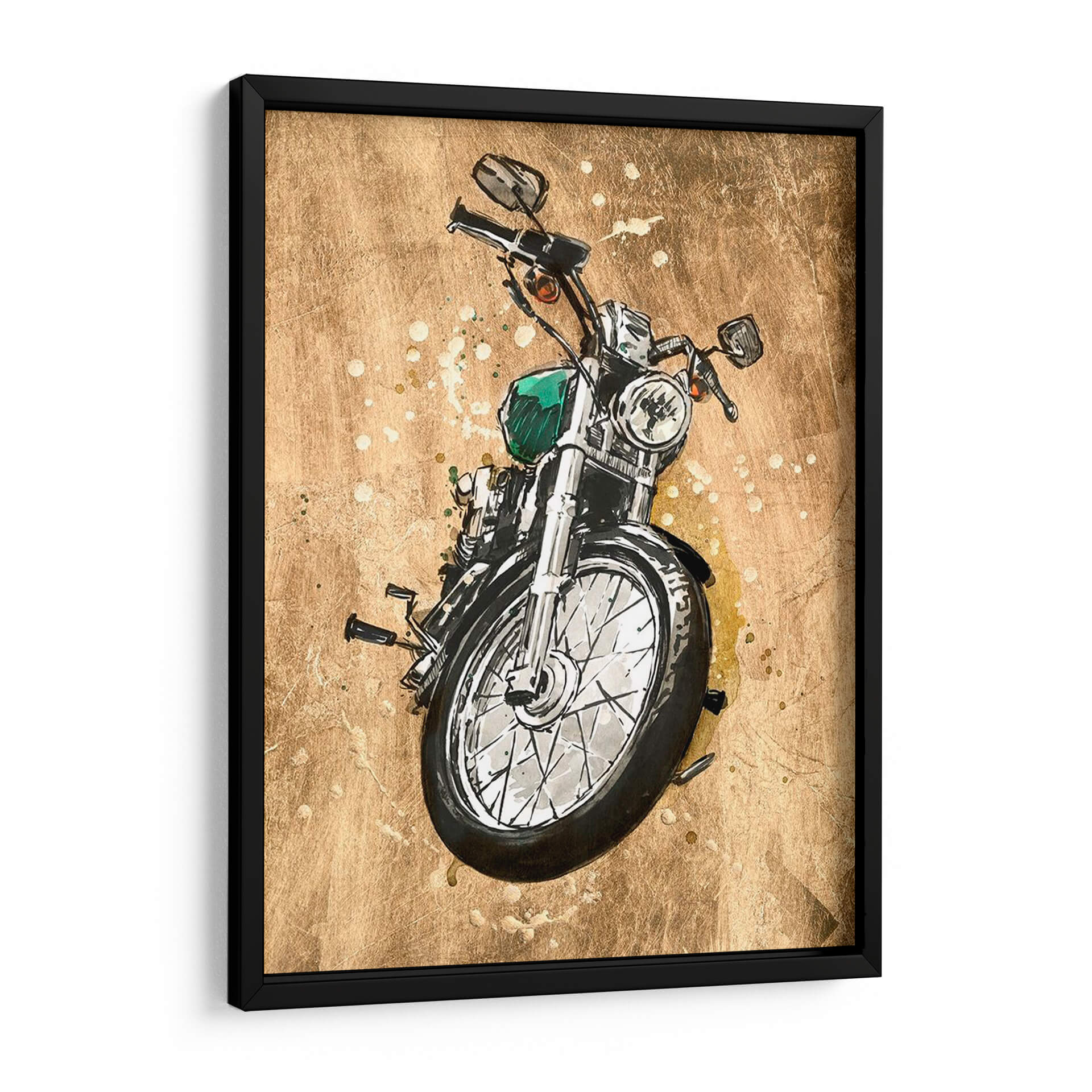 Captura la esencia de la libertad y la aventura con 'Jinete Metálico II', una obra de arte que evoca la potencia y el estilo icónico de las motocicletas clásicas. Este cuadro decorativo presenta una detallada ilustración a trazos de una motocicleta, destacando sus líneas robustas y su presencia imponente. La paleta de colores, dominada por tonos tierra y acentos de verde vibrante en el depósito, crea una atmósfera nostálgica y a la vez audaz, con salpicaduras de pintura que añaden textura y dinamismo a la composición. El fondo, con su acabado rústico y desgastado, realza el carácter vintage de la pieza. Ideal para los amantes de la velocidad, los espíritus rebeldes y aquellos que buscan un elemento decorativo con personalidad para su hogar u oficina. Este cuadro es perfecto para inspirar conversaciones y añadir un toque de carácter a cualquier espacio moderno o industrial. Su diseño versátil lo convierte en una adición impactante para salas de estar, estudios o garajes convertidos en espacios de ocio, resonando con una estética de fuerza y libertad.