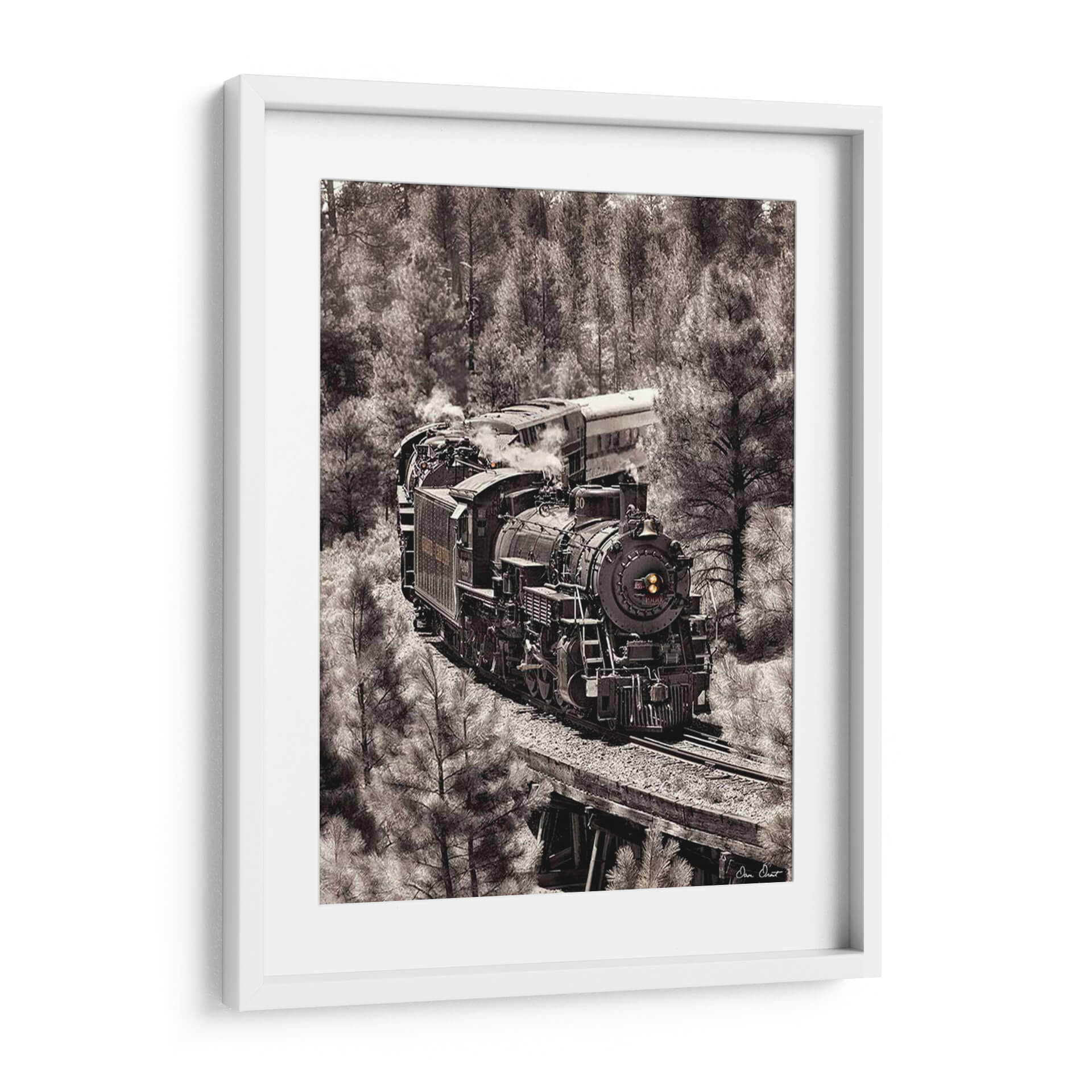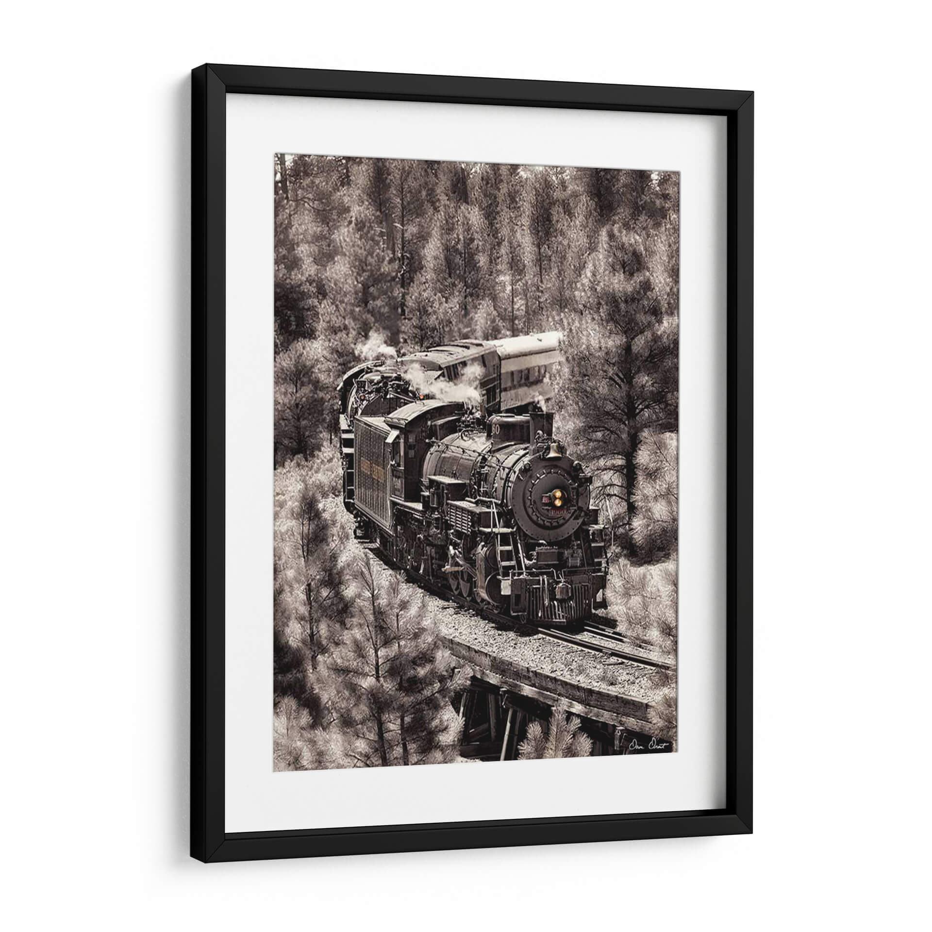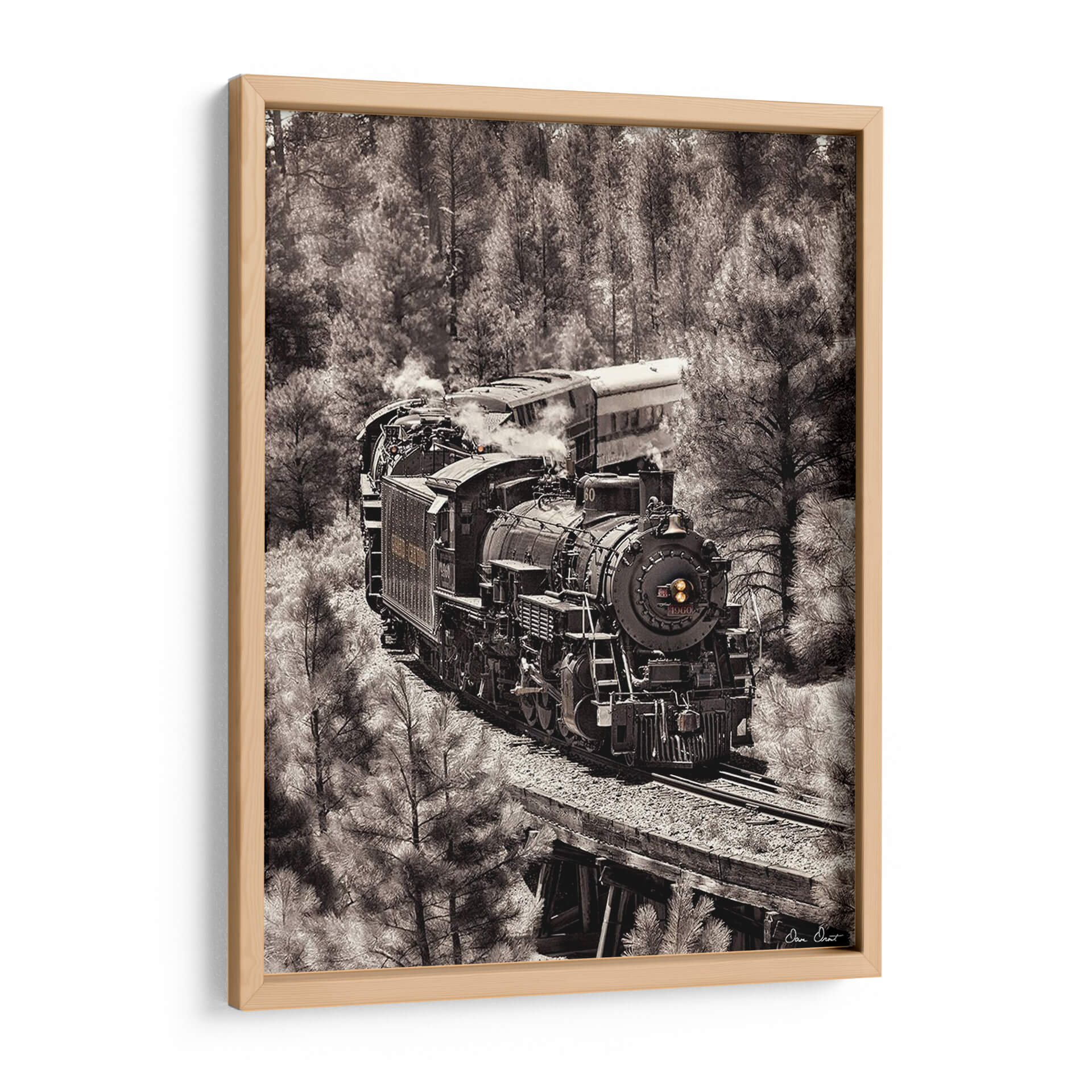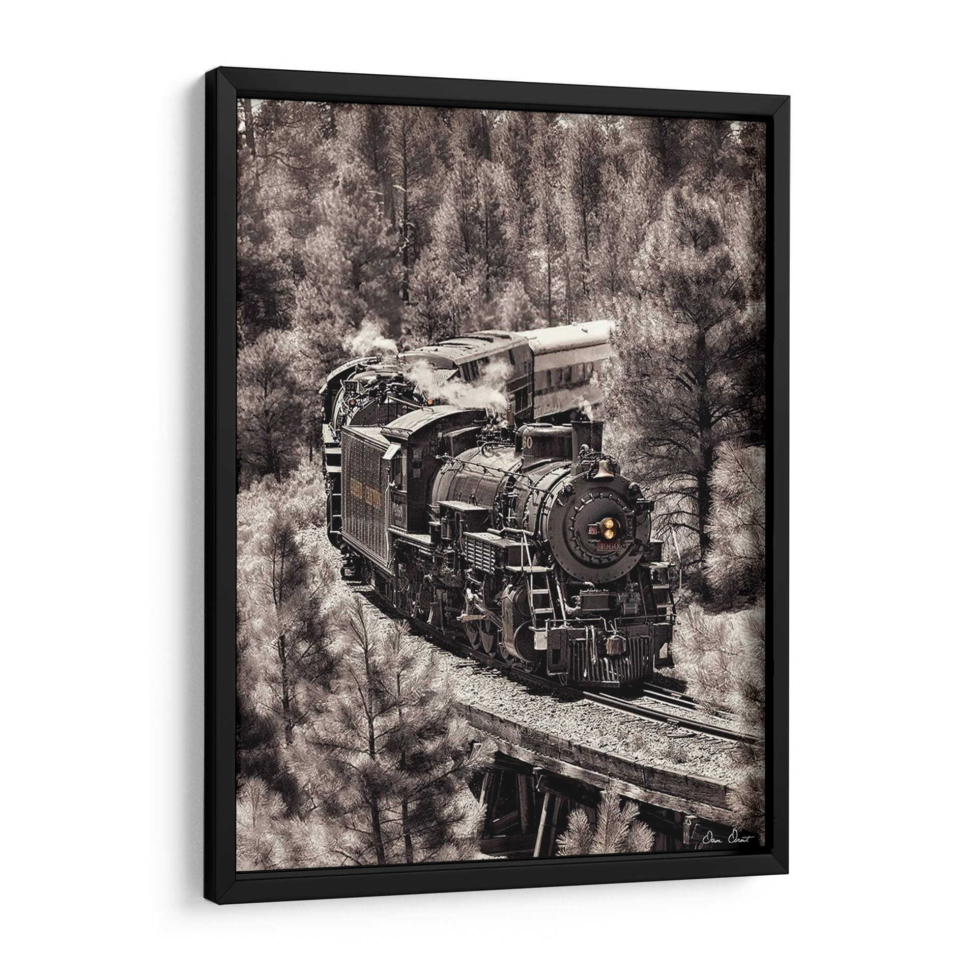 Adéntrate en la nostalgia y el poder de la era del vapor con "Llegada Del Tren III" de David Drost. Esta obra de arte, capturada en un evocador tono sepia, transporta al espectador a un momento de progreso y aventura. La imponente locomotora de vapor, exhalando una nube de humo mientras avanza sobre un puente rústico, se alza majestuosa contra un denso bosque de pinos. Los detalles intrincados de la máquina, desde sus ruedas hasta su faro encendido, narran historias de viajes pasados y la fuerza indomable de la ingeniería. El contraste entre la robustez del tren y la delicadeza de la vegetación circundante crea una composición visualmente impactante. "Llegada Del Tren III" es más que una simple imagen; es una invitación a revivir la emoción de los grandes viajes y a admirar la belleza atemporal de la historia industrial. Ideal para añadir un toque de carácter y sofisticación a tu sala de estar, estudio u oficina, este cuadro decorativo se convertirá en un punto focal que inspira conversación y evoca un sentido de viaje y descubrimiento en cualquier espacio.