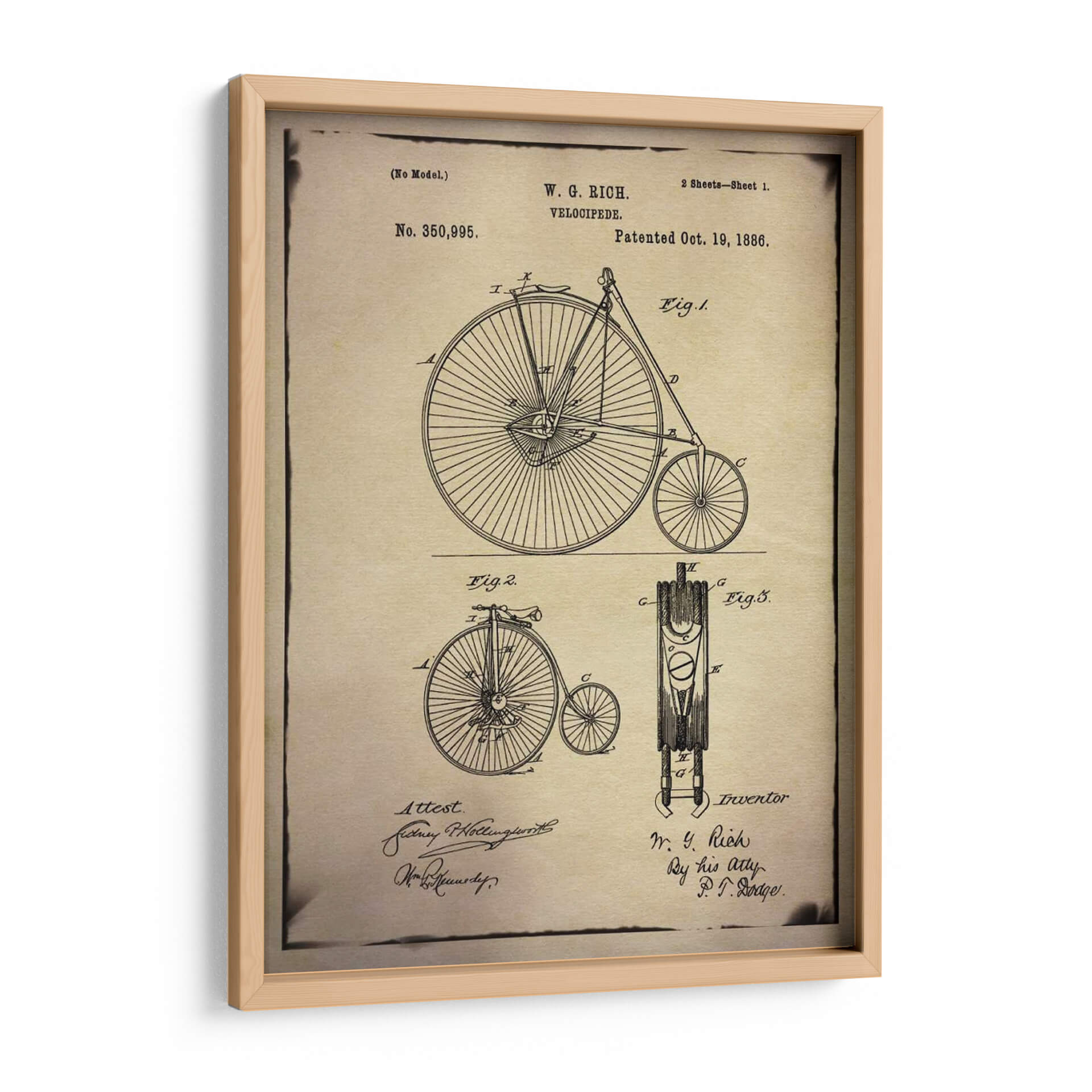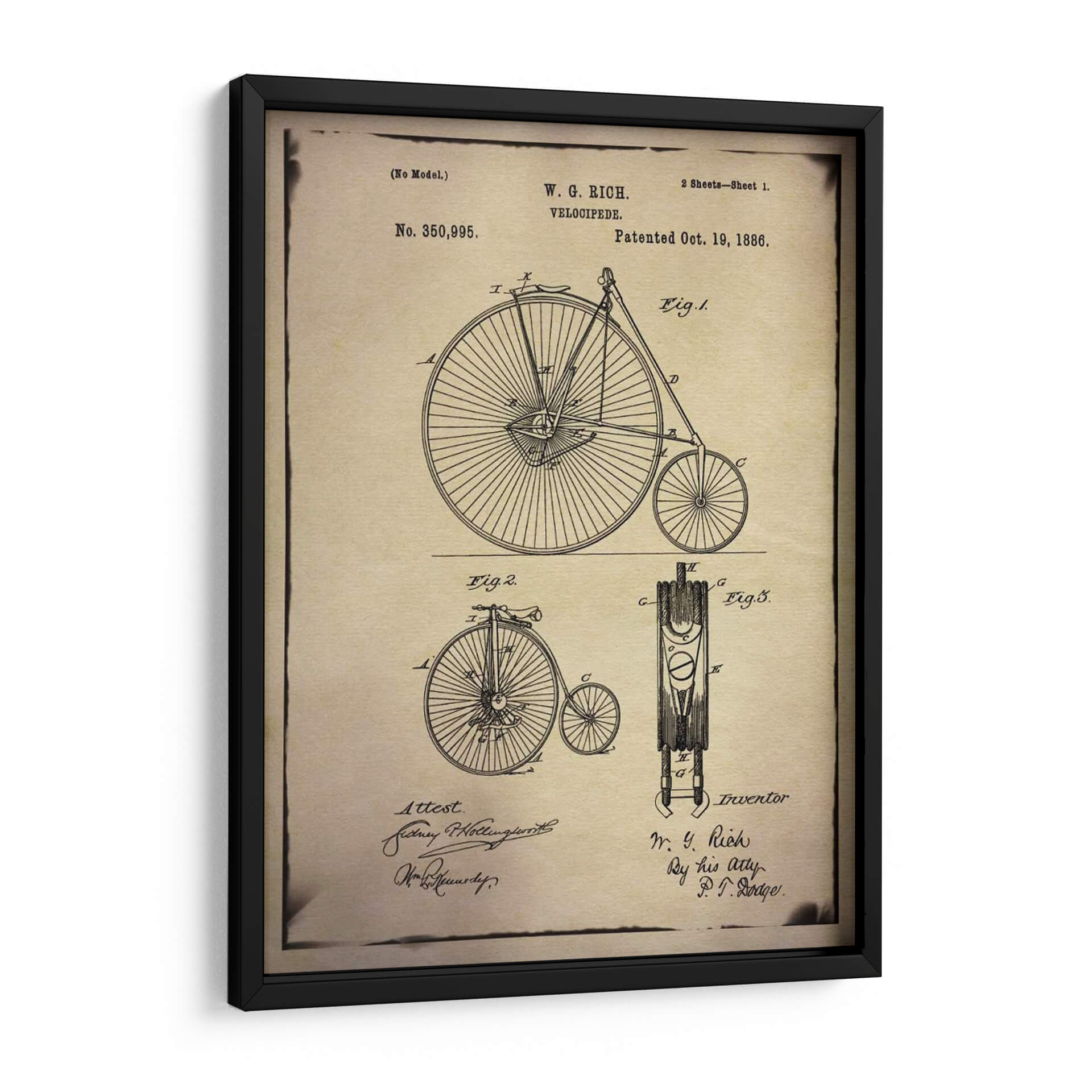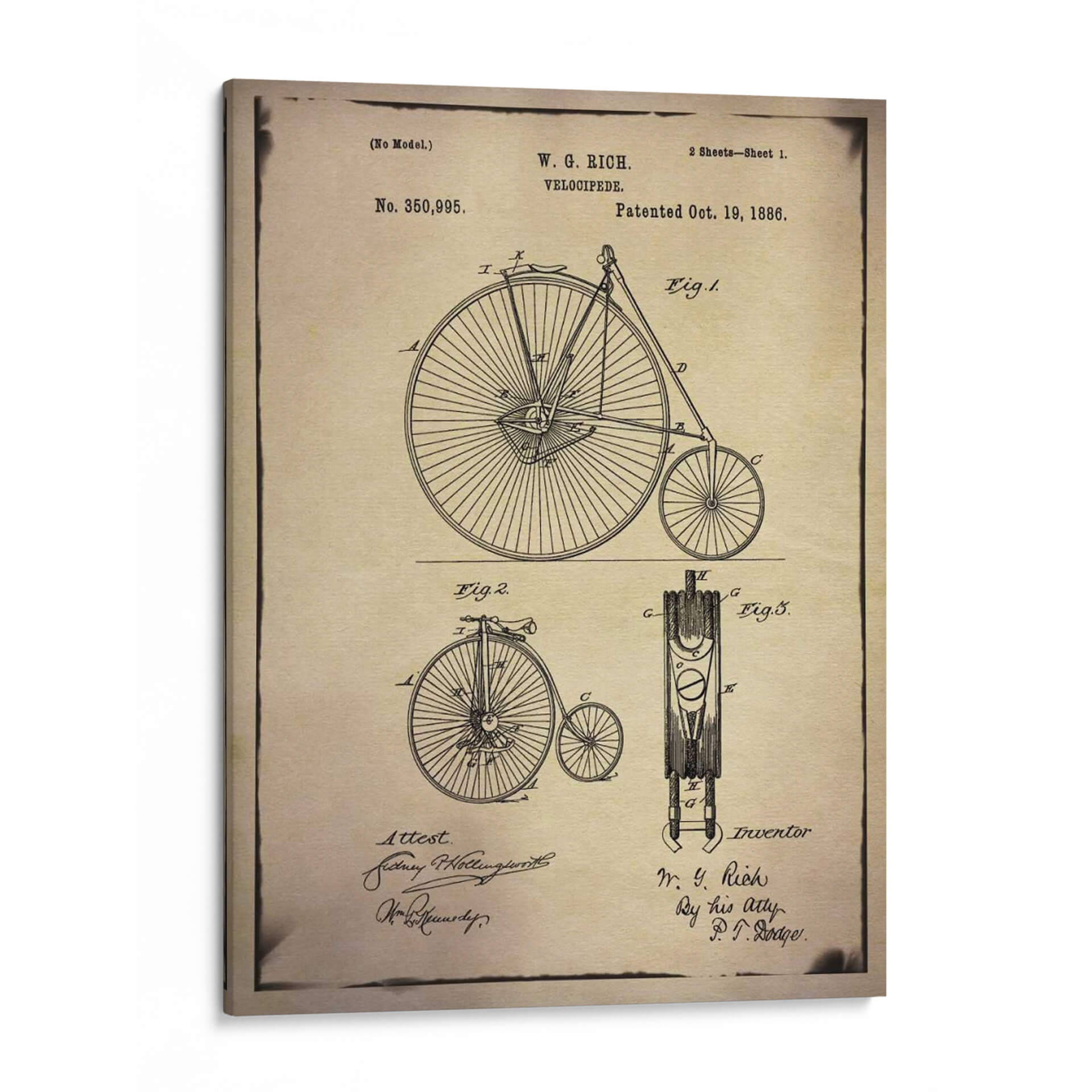 Revive la era dorada de la ingeniería con esta detallada representación de una patente de bicicleta, una pieza de arte decorativo que evoca nostalgia y admiración por la innovación. La obra, titulada "Patente De Bicicleta 1 Buff" y creada por GI ArtLab, presenta un diseño lineal y nítido sobre un fondo texturizado que simula papel antiguo, capturando la esencia de los planos técnicos del siglo XIX. Los múltiples diagramas, etiquetados con figuras y anotaciones manuscritas, no solo ilustran la mecánica de un velocípedo clásico, sino que también rinden homenaje al ingenio de sus inventores. La paleta de colores, dominada por sepia, beige y negro, confiere una atmósfera vintage y sofisticada, ideal para espacios que buscan un toque de historia y carácter. Este cuadro decorativo es perfecto para entusiastas de la historia, ciclistas, o para añadir un elemento de conversación y estilo retro a oficinas, estudios o salas de estar modernas. Su diseño atemporal y su temática única lo convierten en una adición distintiva a cualquier colección de arte de pared, inspirando admiración por el diseño y la perseverancia humana.