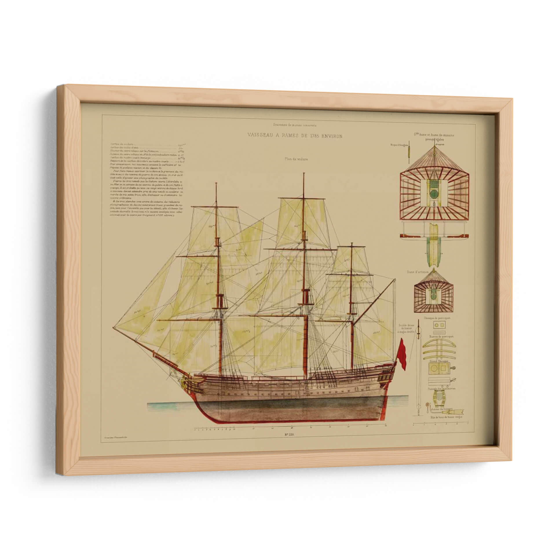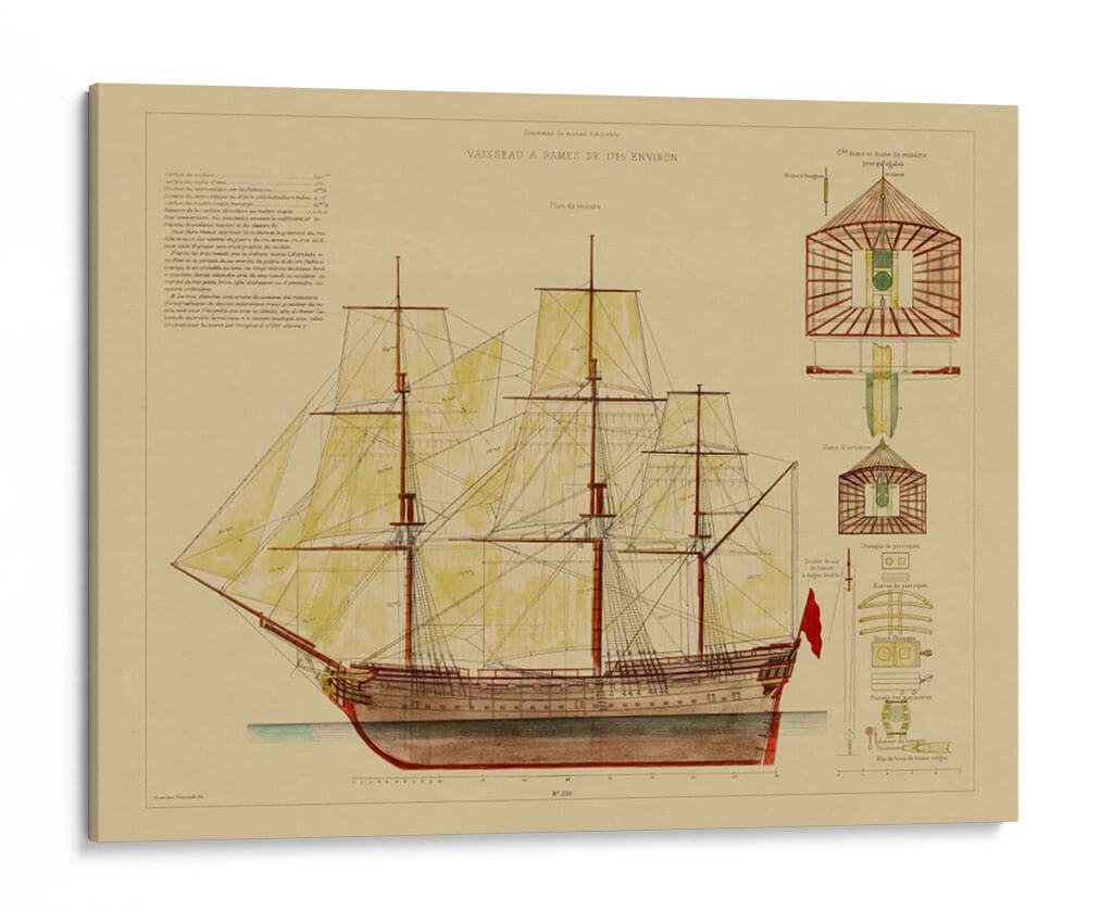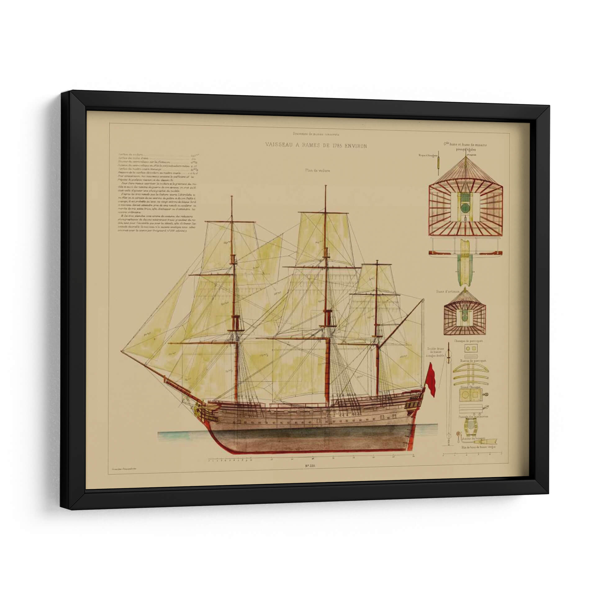 Embárquese en un viaje al pasado con el cuadro decorativo "Plan De Envío Antiguo VIII", una obra maestra del artista Vision Studio. Este detallado grabado, que evoca la época dorada de la navegación, presenta una embarcación de vela con intrincados detalles de aparejos y velas. La paleta de colores se centra en tonos sepia y beige, creando una atmósfera nostálgica y serena, complementada por sutiles toques de rojo en la bandera y detalles de la embarcación. La composición, rica en elementos técnicos y explicativos, se divide en la vista principal del barco y diagramas auxiliares que muestran su estructura interna y componentes. Es una pieza perfecta para amantes de la historia marítima, la ingeniería naval o para aquellos que buscan añadir un toque de sofisticación clásica y aventura a su hogar u oficina. Ideal para despachos, bibliotecas o salones que busquen un punto focal con carácter y una narrativa visual cautivadora. Este cuadro decorativo no solo embellece el espacio, sino que también inspira la curiosidad y el asombro por la ingeniosidad del pasado.