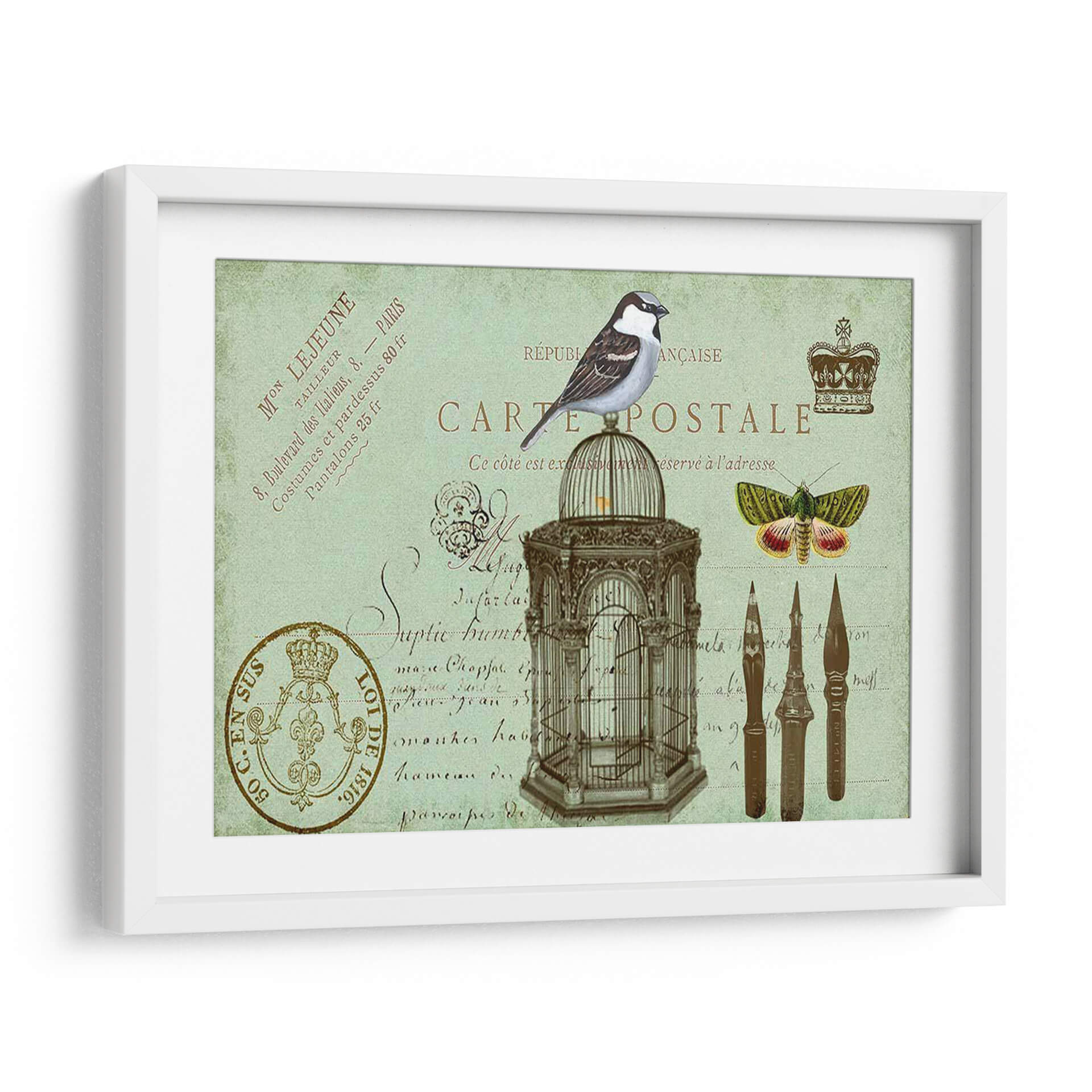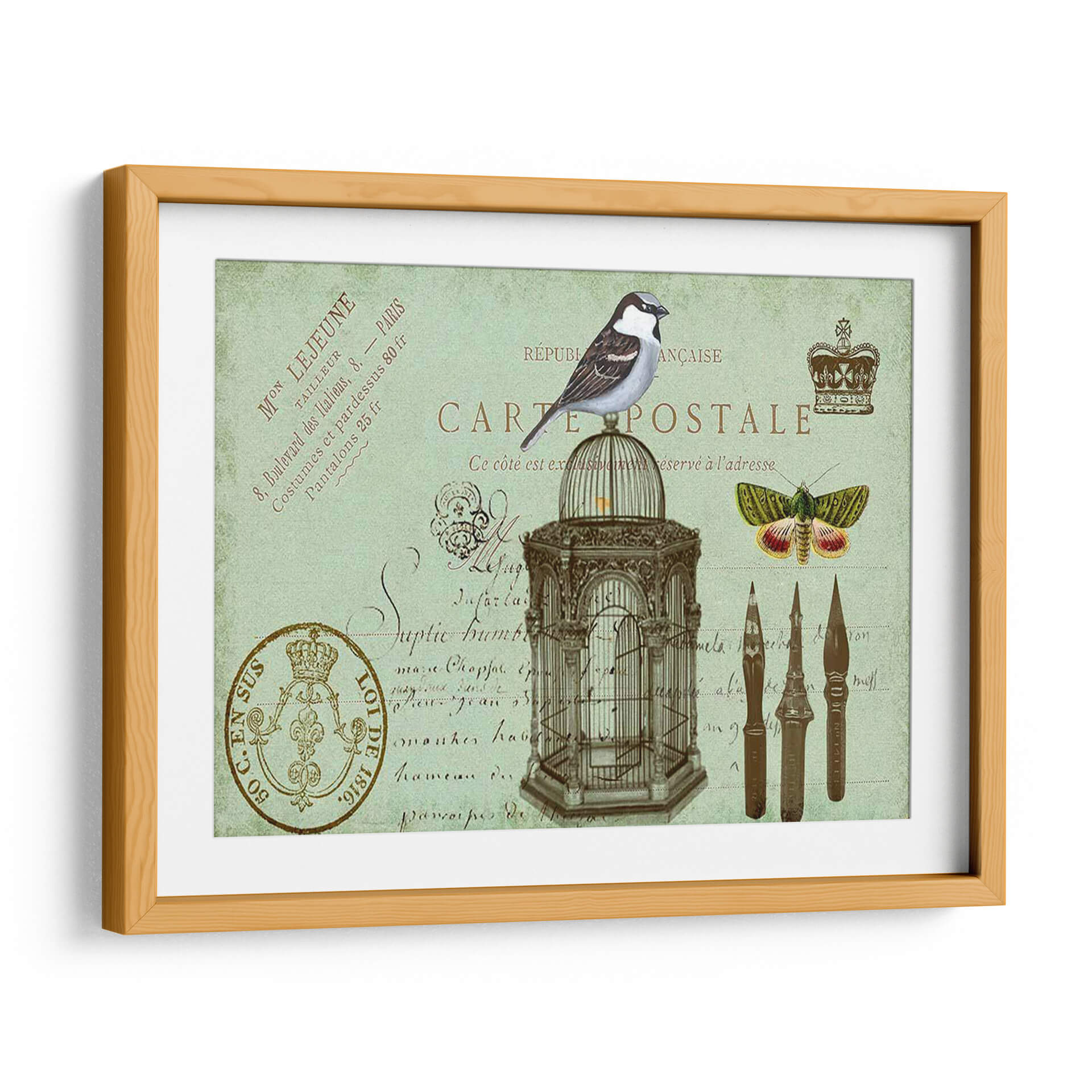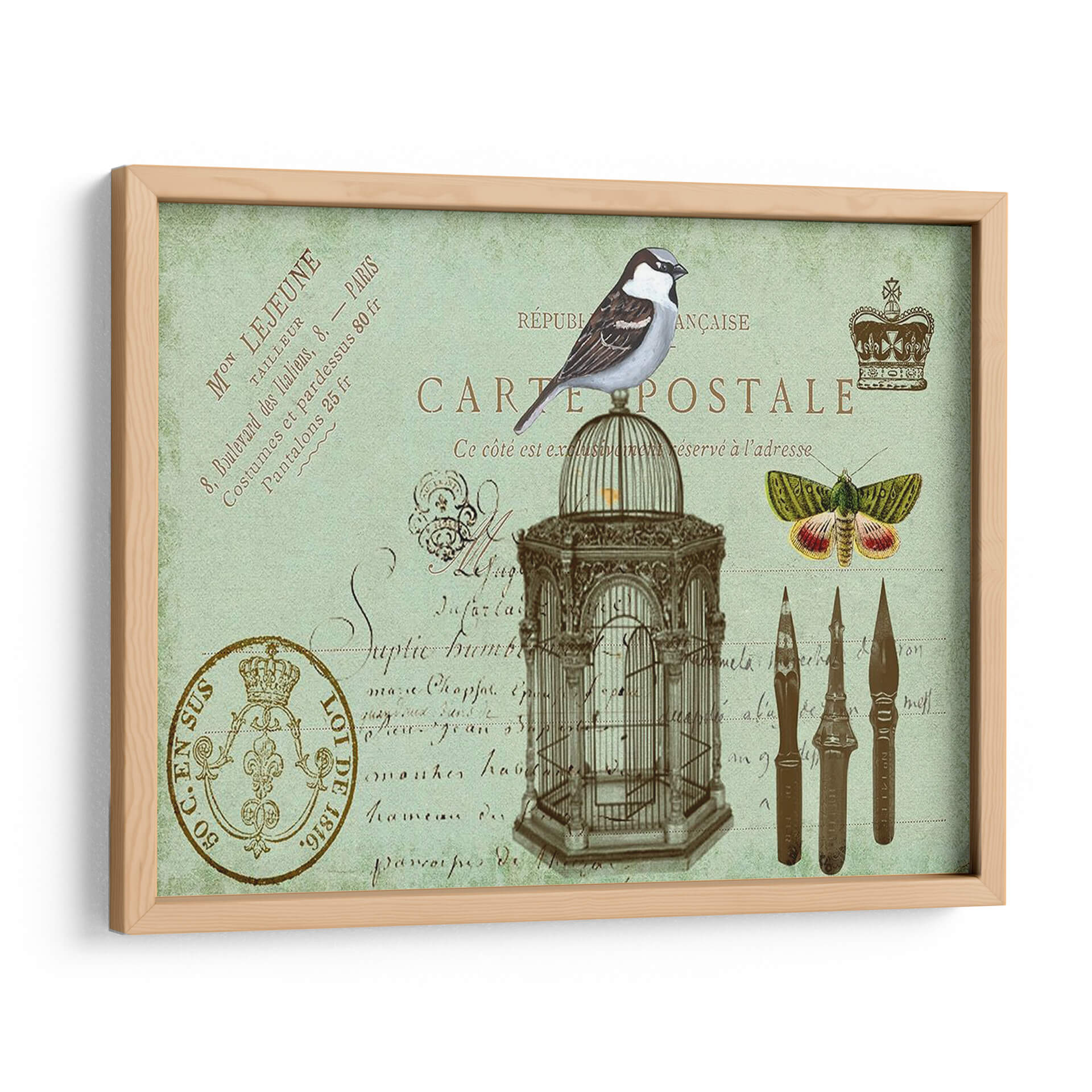 Sumérgete en la elegancia atemporal de "Postales de Paris II" de Sandy Lloyd, una obra de arte que evoca un encanto vintage y una sofisticación sutil. Esta cautivadora pieza presenta un delicado pájaro posado sobre una ornamentada jaula de pájaros, acompañado por una mariposa detallada y elementos gráficos de época que recuerdan a antiguas cartas y sellos postales. La paleta de colores, dominada por suaves tonos verdosos y terrosos con toques de dorado, crea una atmósfera serena y nostálgica. El estilo collage digital, inspirado en elementos de París y la estética de "ephemera", añade profundidad y textura visual. Este cuadro decorativo es perfecto para quienes buscan añadir un toque de historia, naturaleza y refinamiento a su hogar u oficina. Imagina esta obra aportando calma y carácter a tu sala de estar, un toque de inspiración a tu estudio, o una nota de elegancia discreta a tu dormitorio. "Postales de Paris II" no es solo una decoración, es una ventana a un mundo de belleza clásica y detalles intrincados, ideal para espacios que celebran el estilo y la memoria.