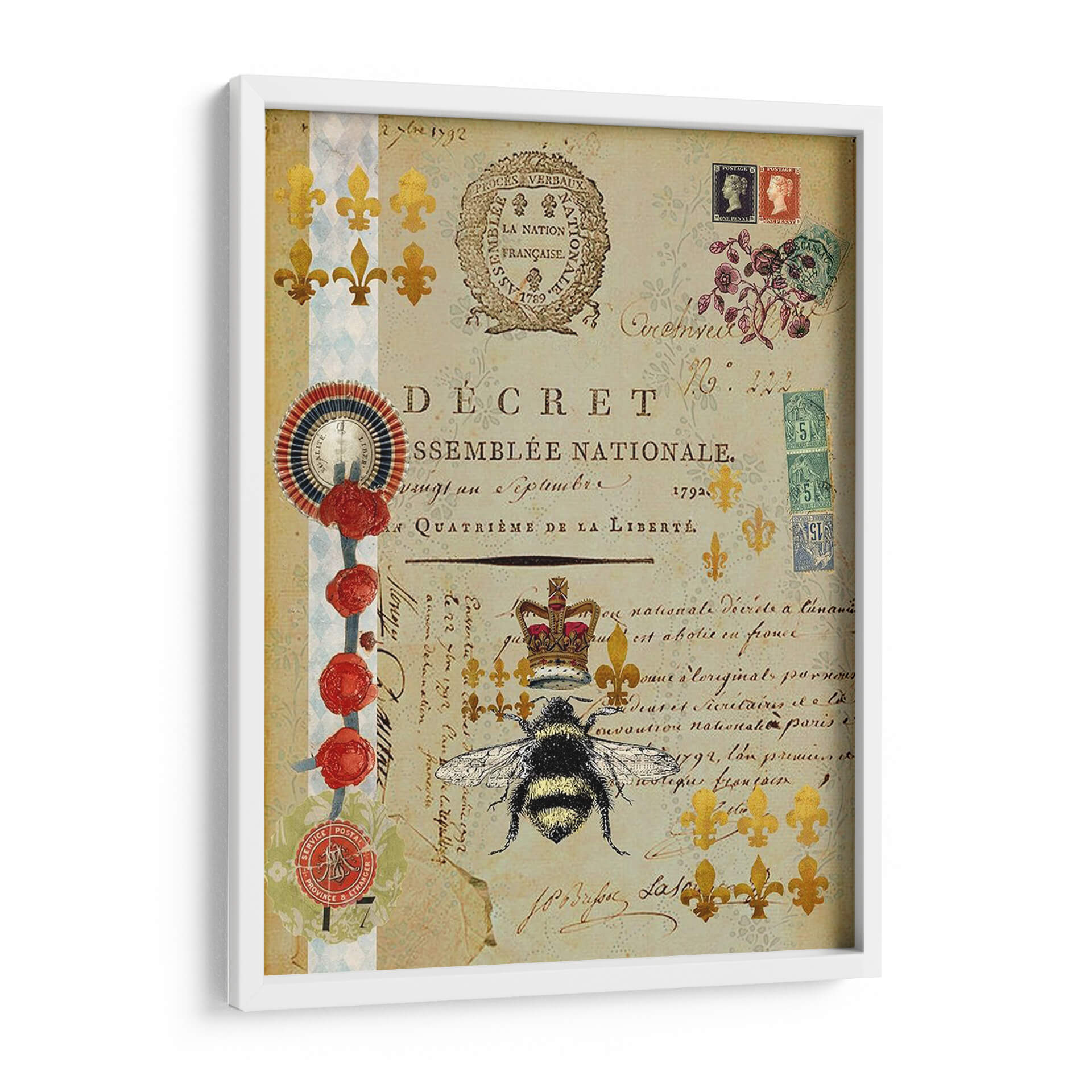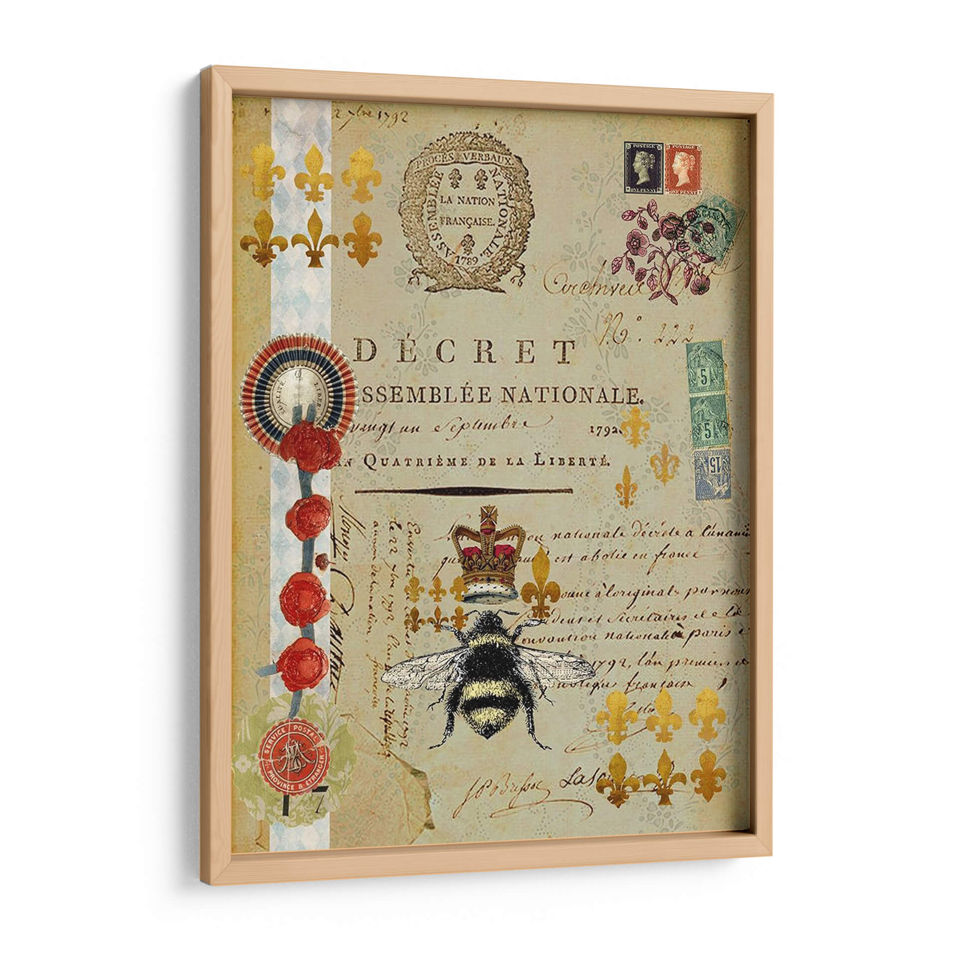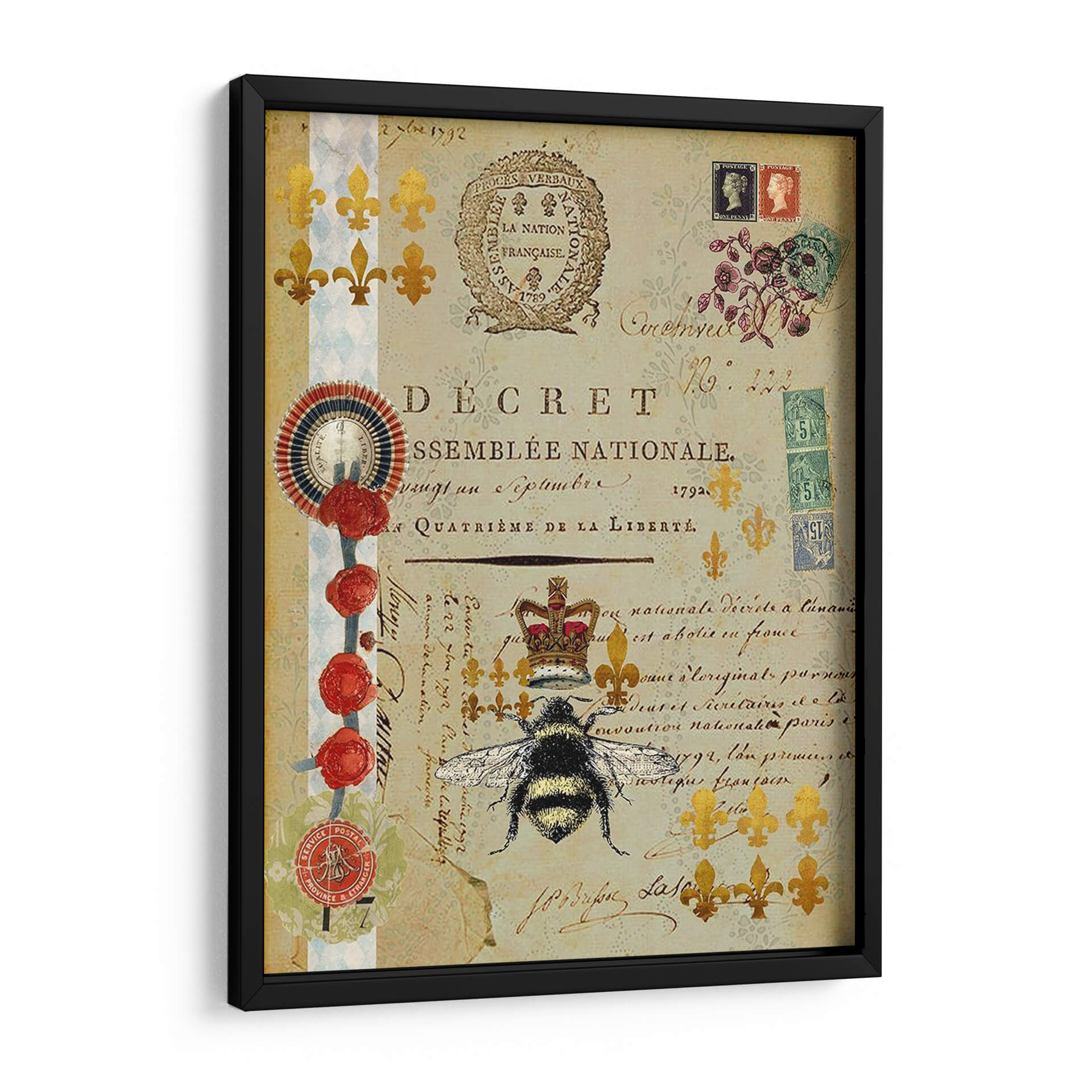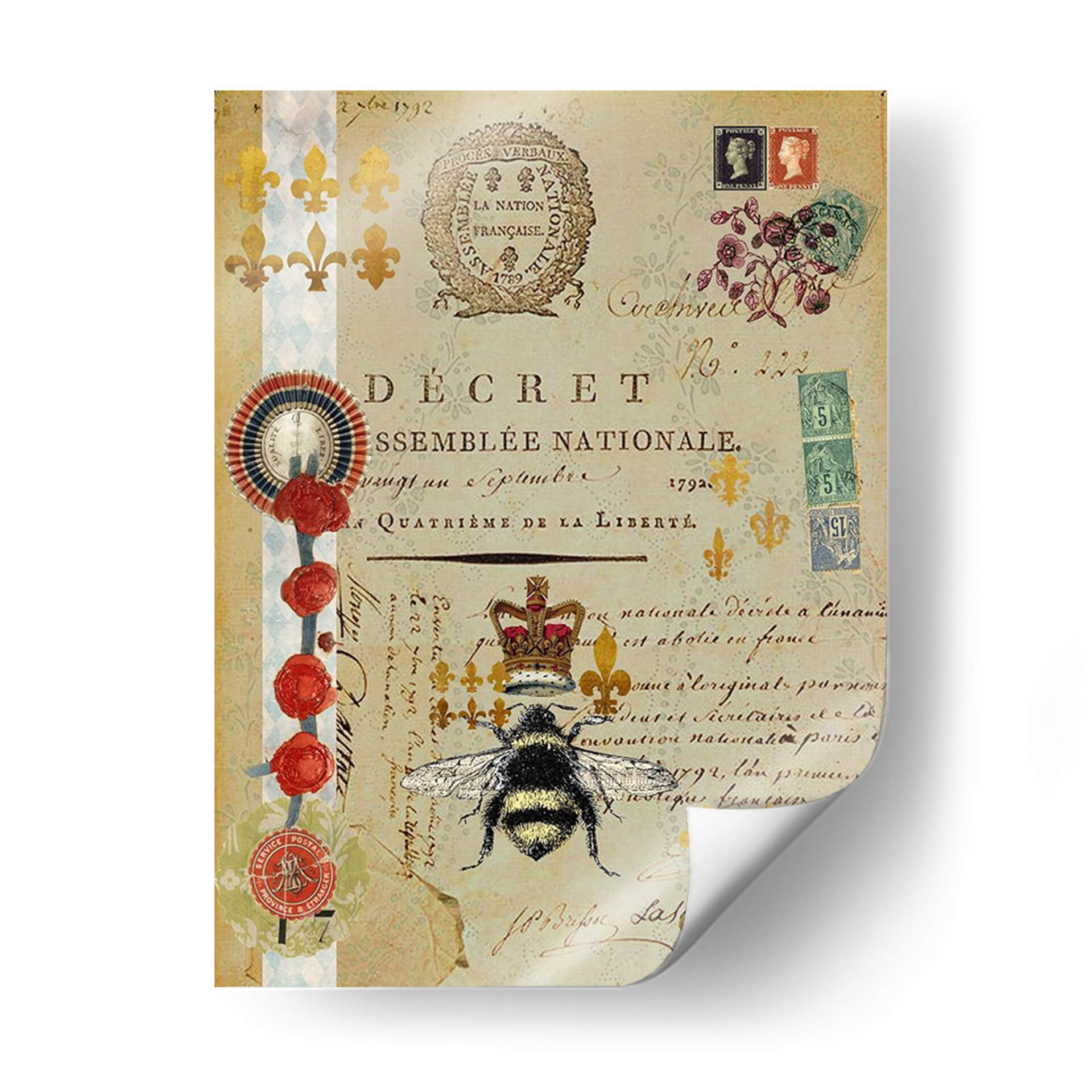 Embellezca su espacio con el evocador cuadro decorativo "Postales De Paris Xiii" de Sandy Lloyd. Esta obra de arte digital captura la esencia de un collage vintage francés, transportándolo a una época de elegancia y misterio. La composición presenta elementos icónicos como sellos postales antiguos, decretos gubernamentales y el emblemático 'fleur-de-lis' dorado, que aportan un aire de sofisticación histórica. Destaca una detallada ilustración de una abeja coronada, añadiendo un toque de intriga y realeza a la pieza. La paleta de colores, dominada por tonos sepia, beige y acentos dorados, crea una atmósfera cálida y nostálgica, perfecta para añadir profundidad y carácter a cualquier habitación. Este cuadro decorativo es ideal para complementar estilos de decoración clásicos, vintage o eclécticos, funcionando como un punto focal cautivador en salones, estudios u oficinas. Su diseño intrincado y su rica historia visual invitan a la contemplación, convirtiéndolo en una adición única a su colección de arte de pared.