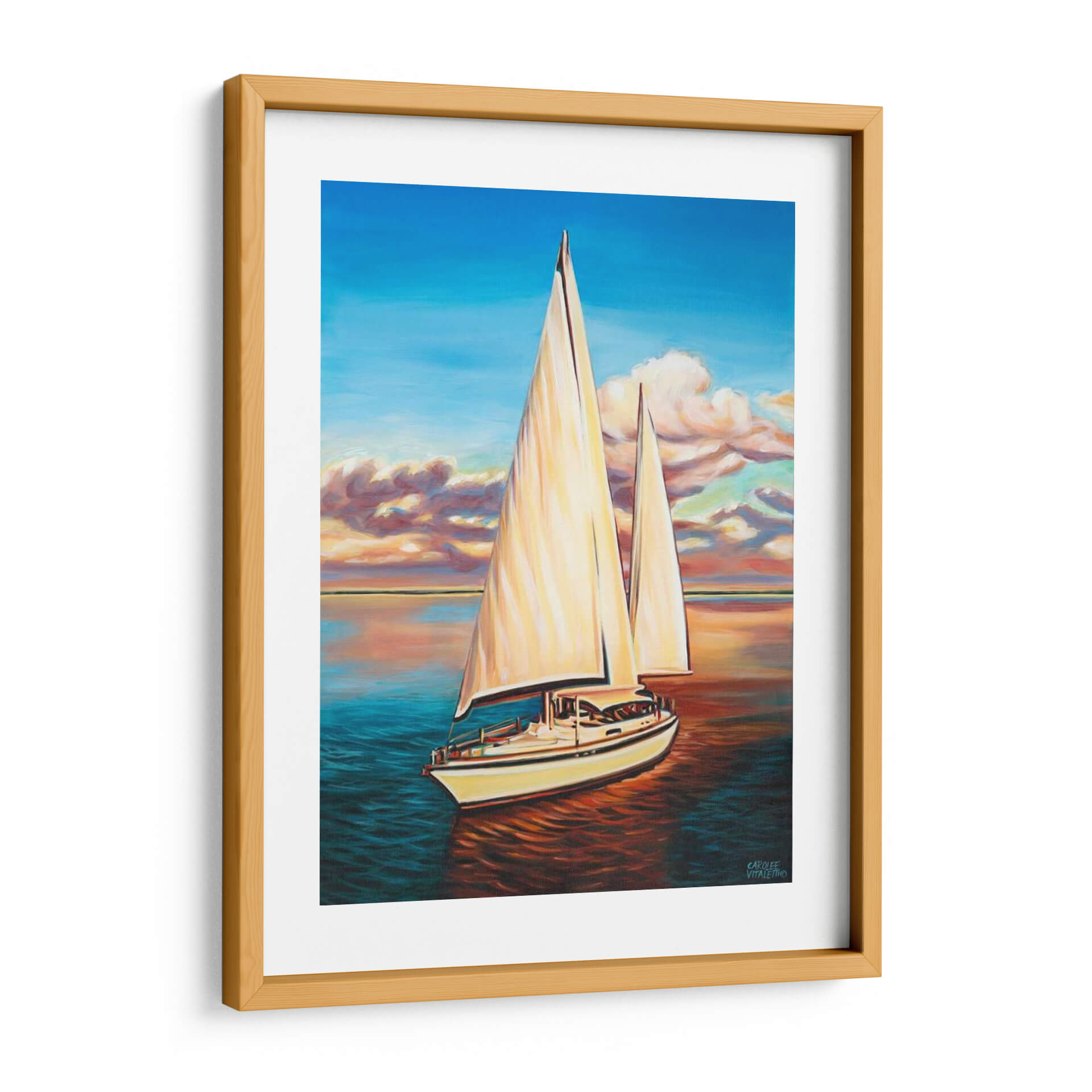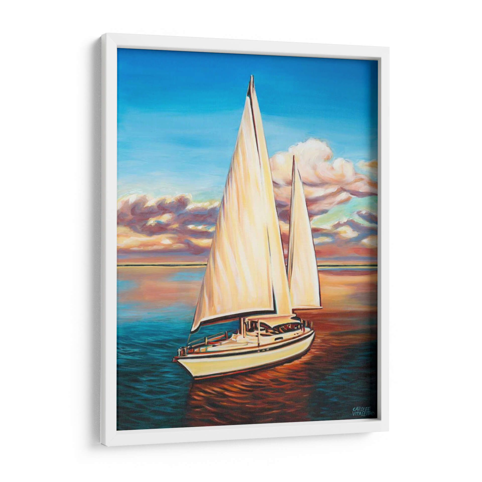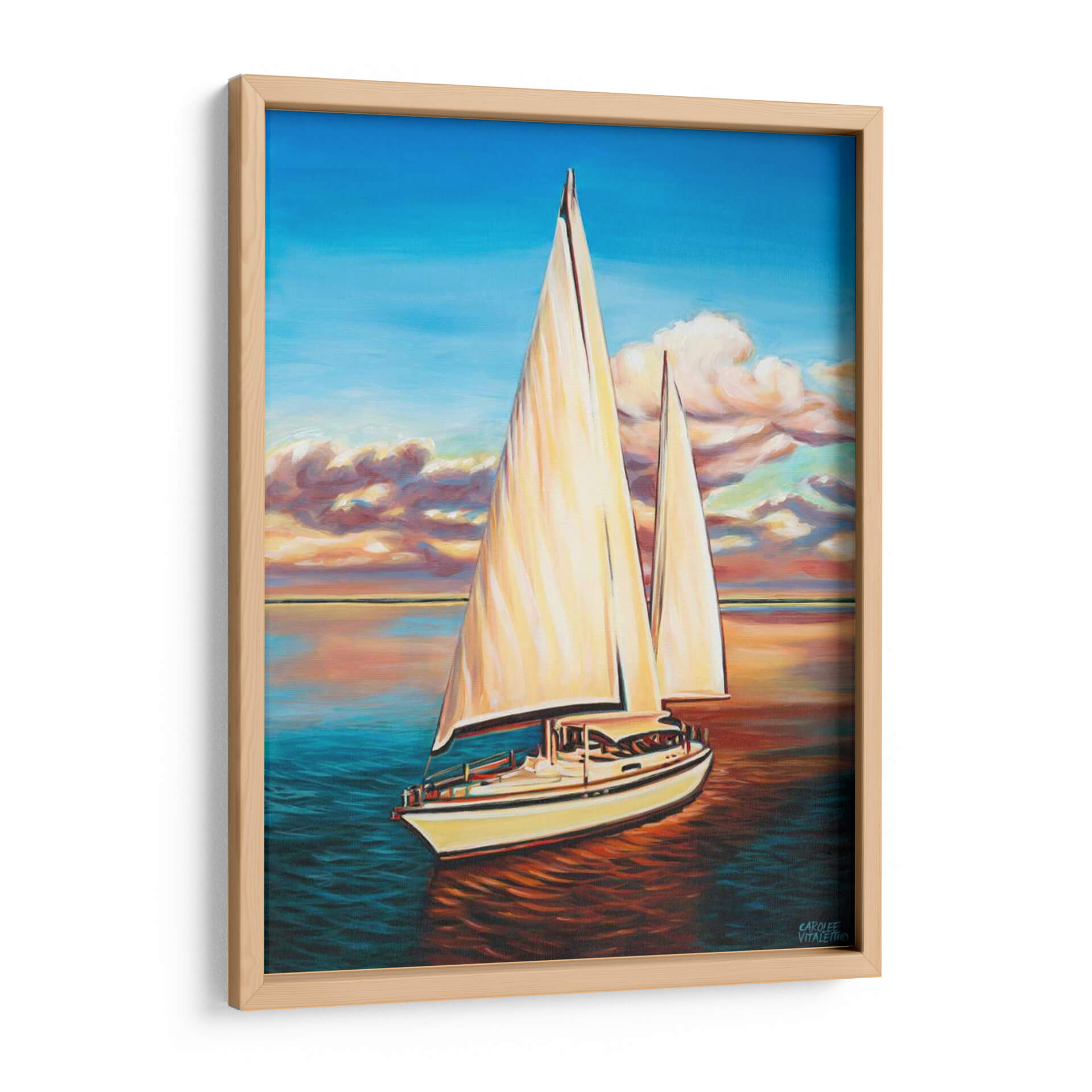 Sumérgete en la serenidad del mar con "Puesta De Sol Crucero I", una obra de arte que captura la esencia de la navegación al atardecer. Carolee Vitaletti nos presenta un cuadro decorativo donde un velero blanco navega en un mar de tonos azules profundos, reflejando los vibrantes colores del cielo al anochecer. Las nubes, teñidas de naranjas, rosas y dorados, crean un telón de fondo espectacular que se fusiona con el horizonte, invitando a la contemplación y la calma. La luz del sol poniente baña las velas del barco, otorgándole una luminosidad cálida y acogedora, mientras que las aguas turquesas y cobrizas alrededor crean un juego de luces y sombras fascinante. Este cuadro es perfecto para añadir un toque de elegancia y tranquilidad a cualquier espacio, ya sea una sala de estar, un dormitorio o una oficina. Su estilo realista con toques impresionistas evoca una sensación de paz y aventura, transportando al espectador a un viaje imaginario por alta mar. "Puesta De Sol Crucero I" es más que una simple decoración de pared; es una invitación a soñar y a escapar de la rutina diaria, convirtiendo tu hogar en un refugio de inspiración y belleza. Añade esta pieza única a tu colección y deja que su atmósfera pacífica transforme tu ambiente.