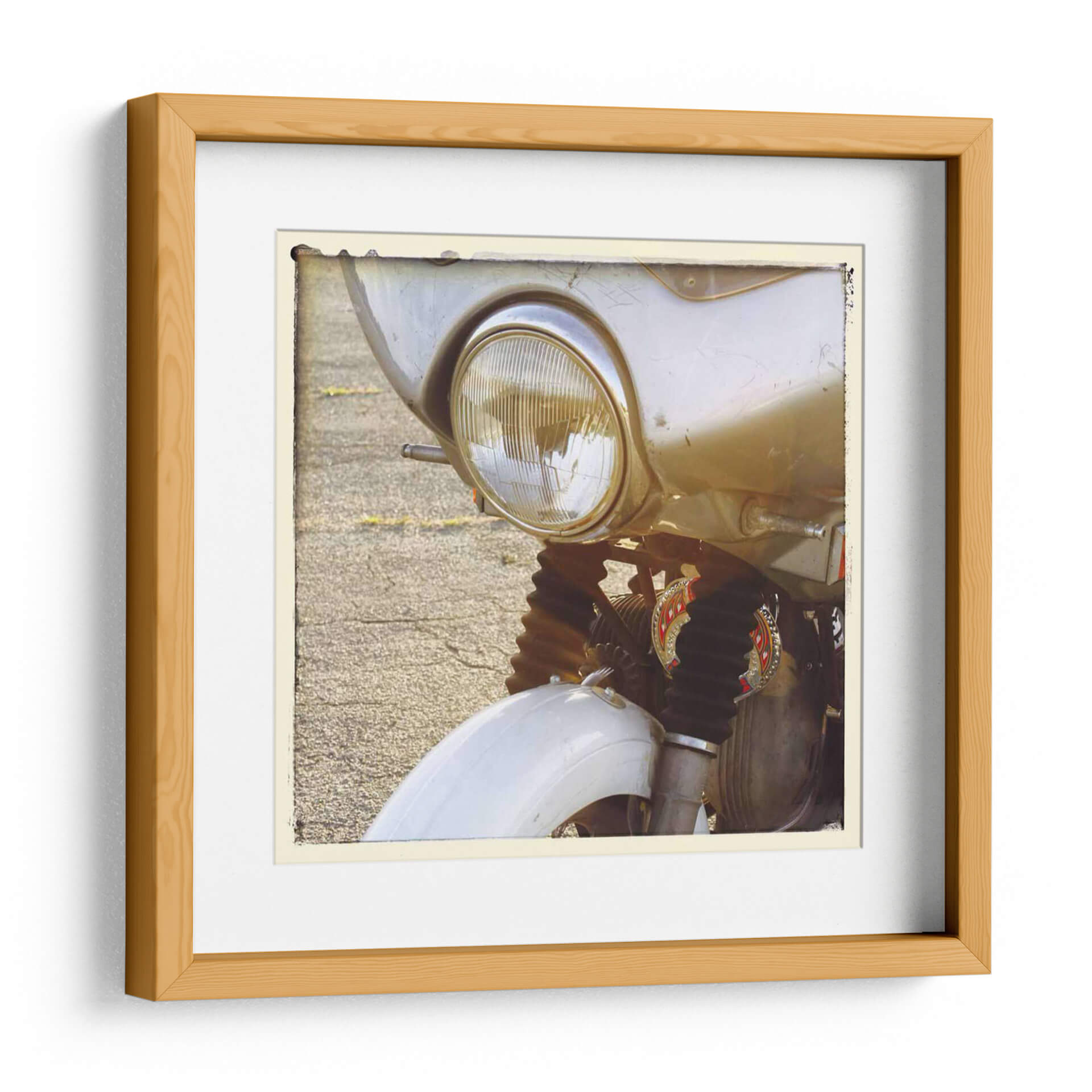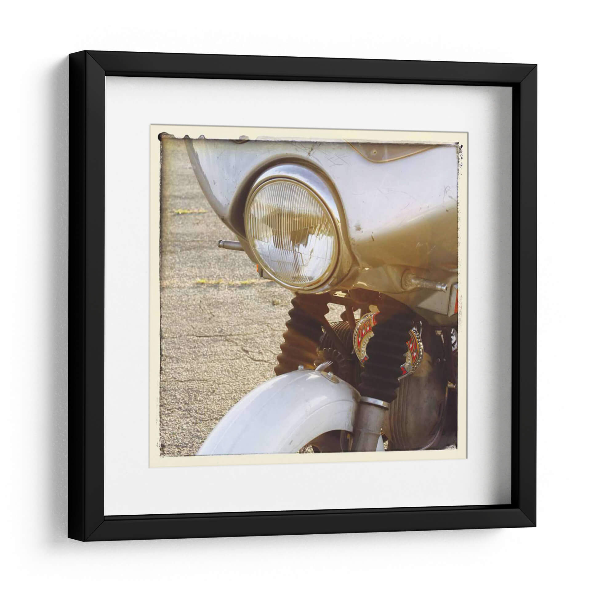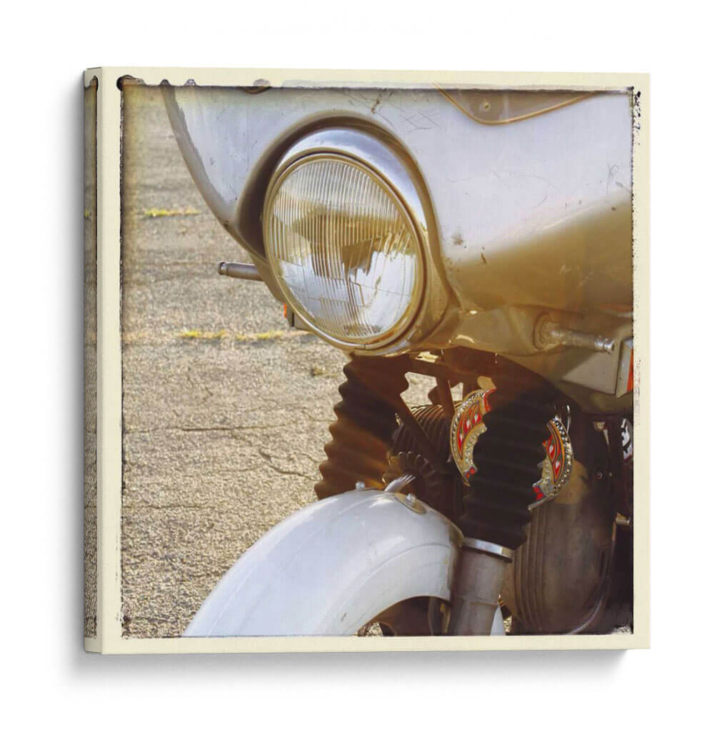 Captura la esencia de la nostalgia y la potencia con "Puesta Del Atardecer Ii", una obra de arte que rinde homenaje a la icónica ingeniería de motocicletas. Este cuadro decorativo se centra en los detalles intrincados de una motocicleta clásica, destacando el faro brillante, el guardabarros blanco pulido y los resortes de suspensión texturizados. La paleta de colores, dominada por tonos metálicos, blancos cremosos y acentos de rojo y dorado en los emblemas, evoca una sensación de atemporalidad y elegancia vintage. La composición fotográfica, que se adentra en un primer plano detallado, invita a la contemplación de la artesanía y el diseño que definieron una era. Ideal para los entusiastas de las motocicletas, los amantes de lo retro o cualquiera que busque añadir un toque de carácter y sofisticación a su hogar u oficina. Este cuadro decorativo es una pieza que habla de aventura, libertad y un aprecio por la maquinaria bien hecha, convirtiéndose en un punto focal cautivador en cualquier espacio moderno o de inspiración industrial.