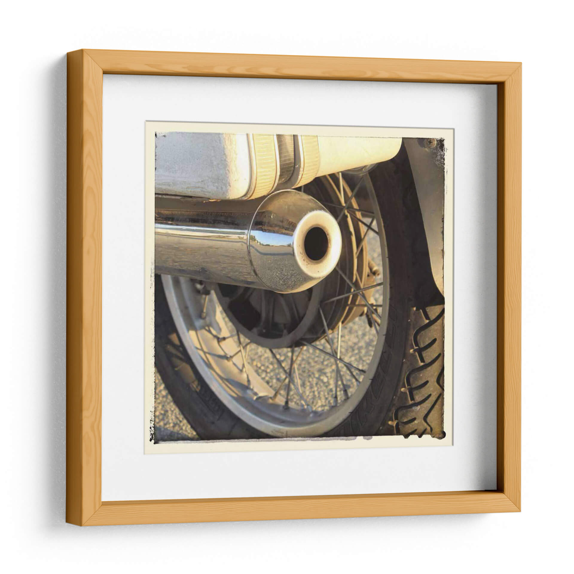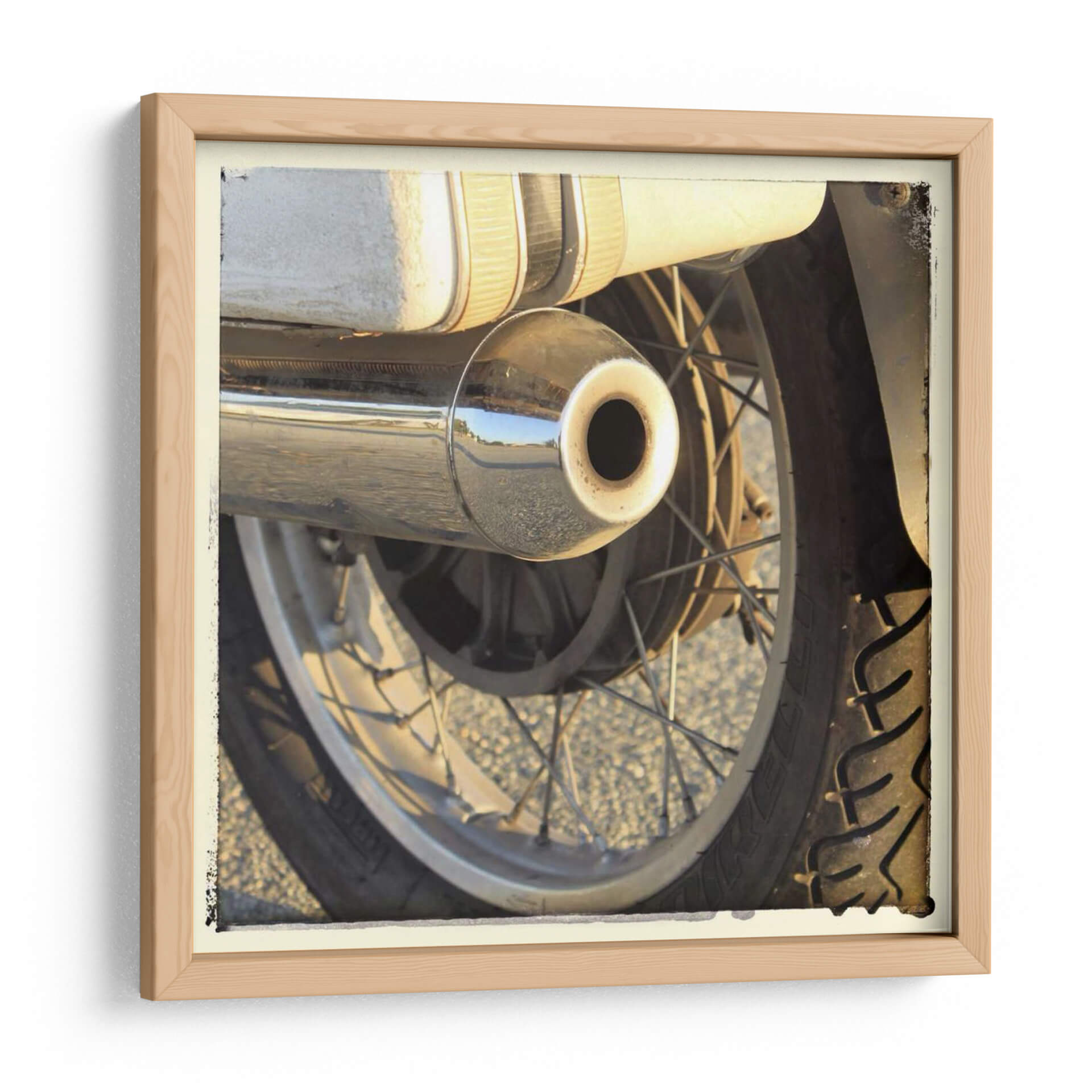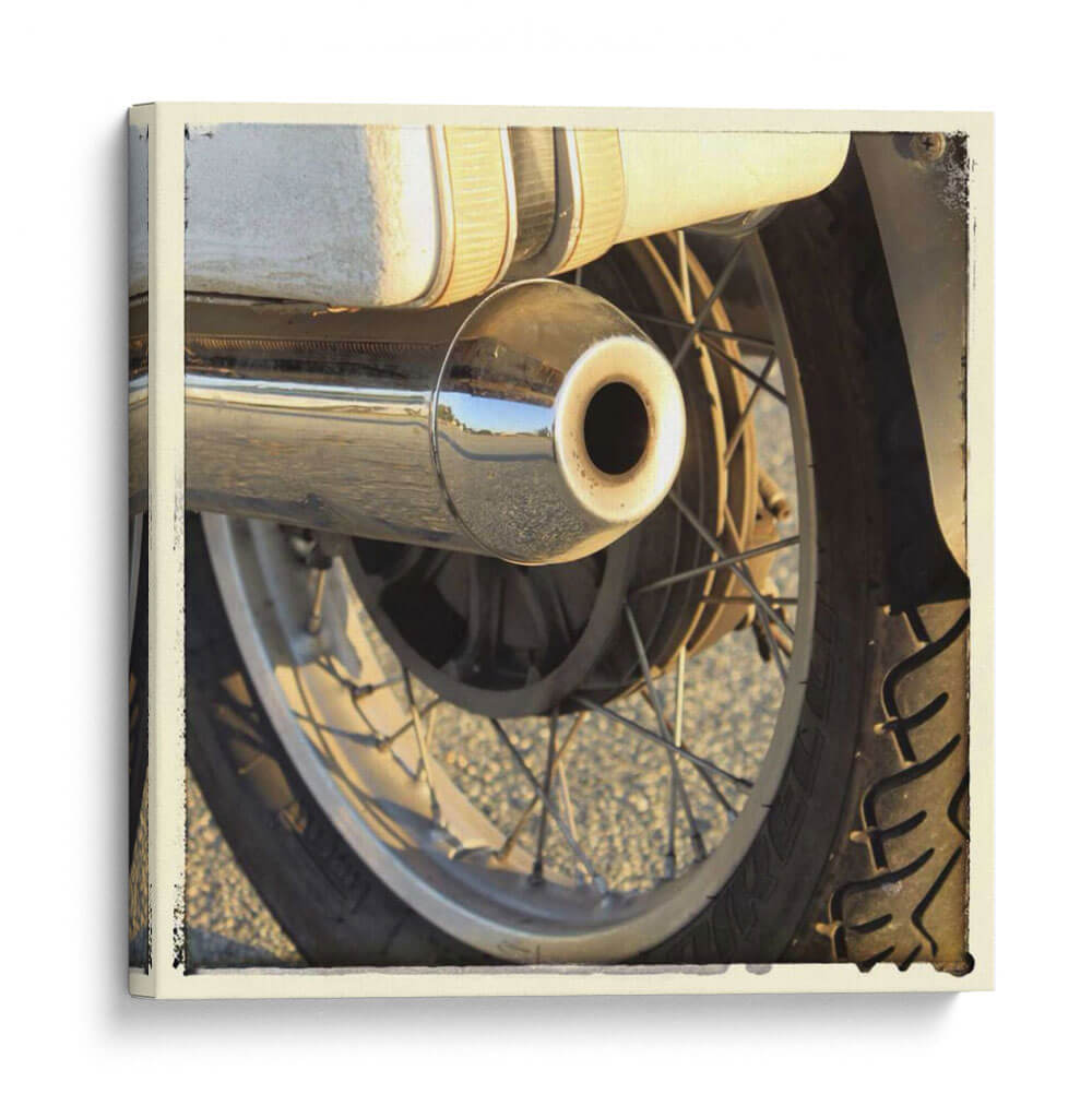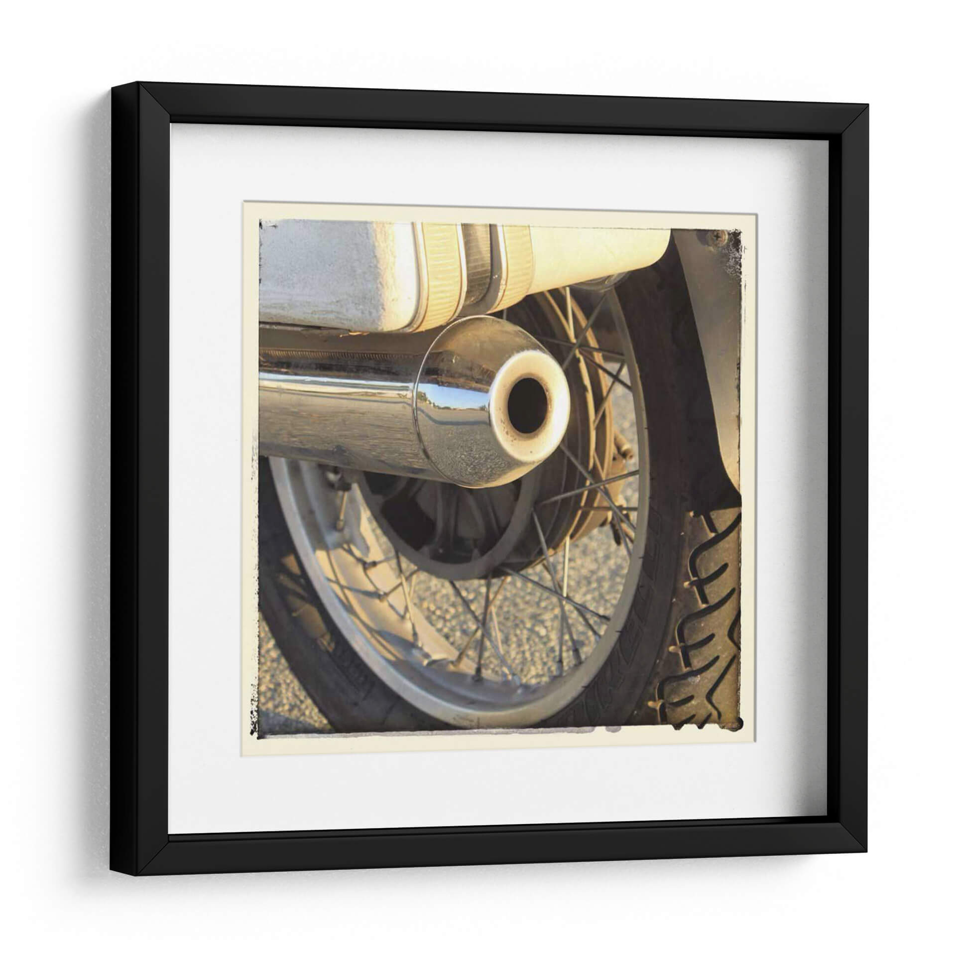 Captura la esencia de la aventura y la estética retro con este evocador cuadro decorativo, "Puesta En El Atardecer III", de Renee W. Stramel. La obra se centra en el detalle icónico de una motocicleta, destacando el brillo cromado del tubo de escape y la intrincada estructura de la rueda con radios. La paleta de colores se compone de tonos cálidos y terrosos, con el dorado del atardecer reflejándose en las superficies metálicas, creando una atmósfera nostálgica y ligeramente melancólica. La composición fotográfica, un primer plano detallado, resalta la textura del asfalto y los componentes mecánicos, invitando a una contemplación pausada. Este cuadro decorativo es ideal para espacios que buscan un toque de carácter y una conexión con el estilo de vida sobre dos ruedas. Perfecto para salones modernos, estudios de diseño o incluso garajes convertidos en espacios de ocio, aportará una personalidad única y un aire de sofisticación industrial. Sumérgete en la narrativa visual de esta pieza, que evoca la libertad de la carretera y la belleza encontrada en los detalles cotidianos de la maquinaria.