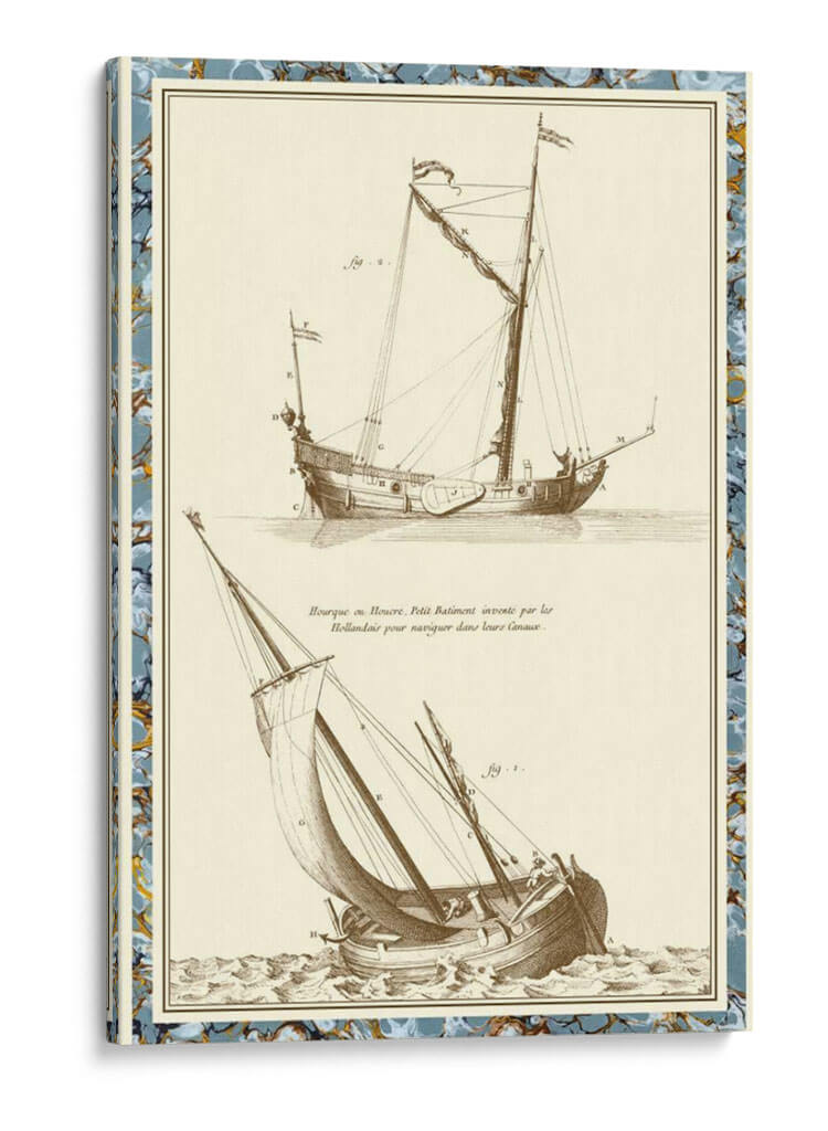 Este cuadro decorativo, titulado "Schemática Del Barco Ii" por Vision Studio, transporta al espectador a una era de navegación y descubrimiento. La obra presenta un detallado grabado de dos embarcaciones a vela, cada una representada con precisión técnica y un aire de autenticidad histórica. Los barcos, uno en aguas tranquilas y otro enfrentando olas agitadas, evocan la dualidad de la vida en el mar: la calma y la tempestad. La paleta de colores sepia y marfil, junto con las finas líneas del grabado, crea una atmósfera nostálgica y elegante. Los detalles intrincados del aparejo, los cascos y las velas invitan a una contemplación profunda, rindiendo homenaje a la ingeniería naval y la aventura. Ideal para aquellos que aprecian la historia marítima, el arte técnico o buscan añadir un toque de sofisticación clásica a su decoración. Este cuadro decorativo es perfecto para un estudio, una biblioteca o un salón, añadiendo un punto focal de interés y una conversación. Su diseño atemporal lo convierte en una elección versátil para diversos estilos decorativos, desde el tradicional hasta el ecléctico.