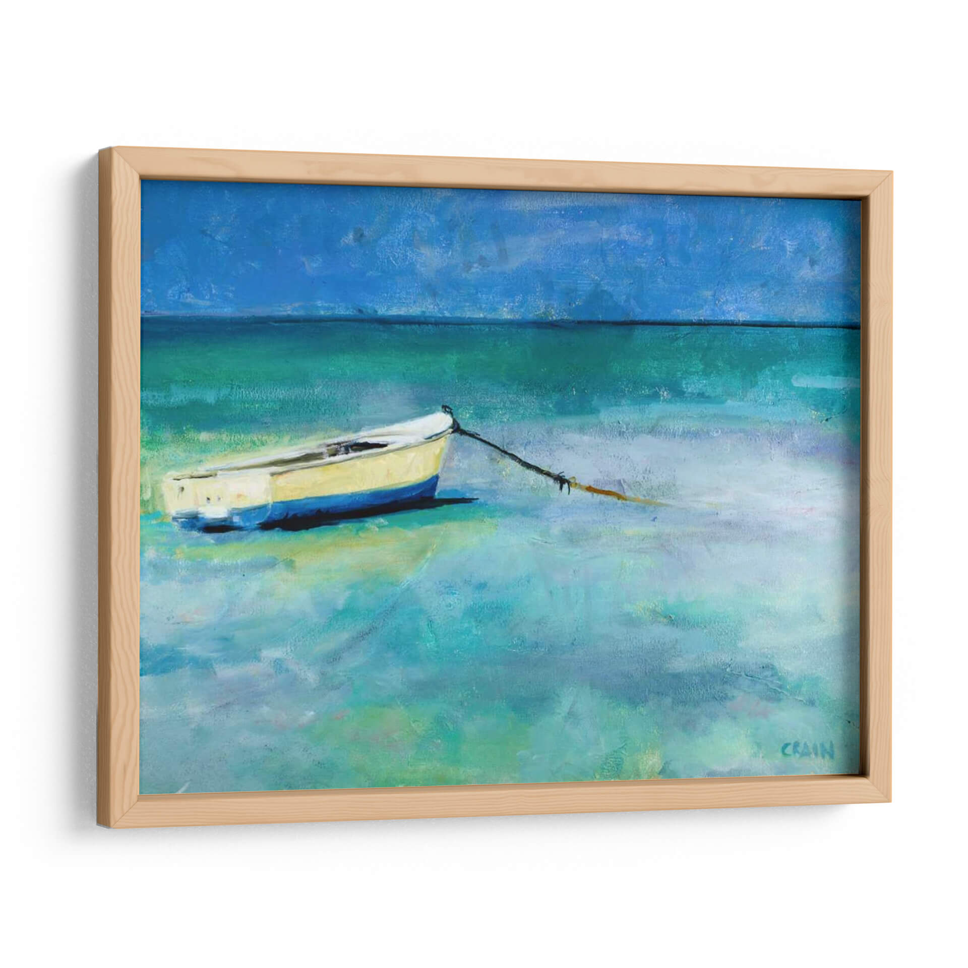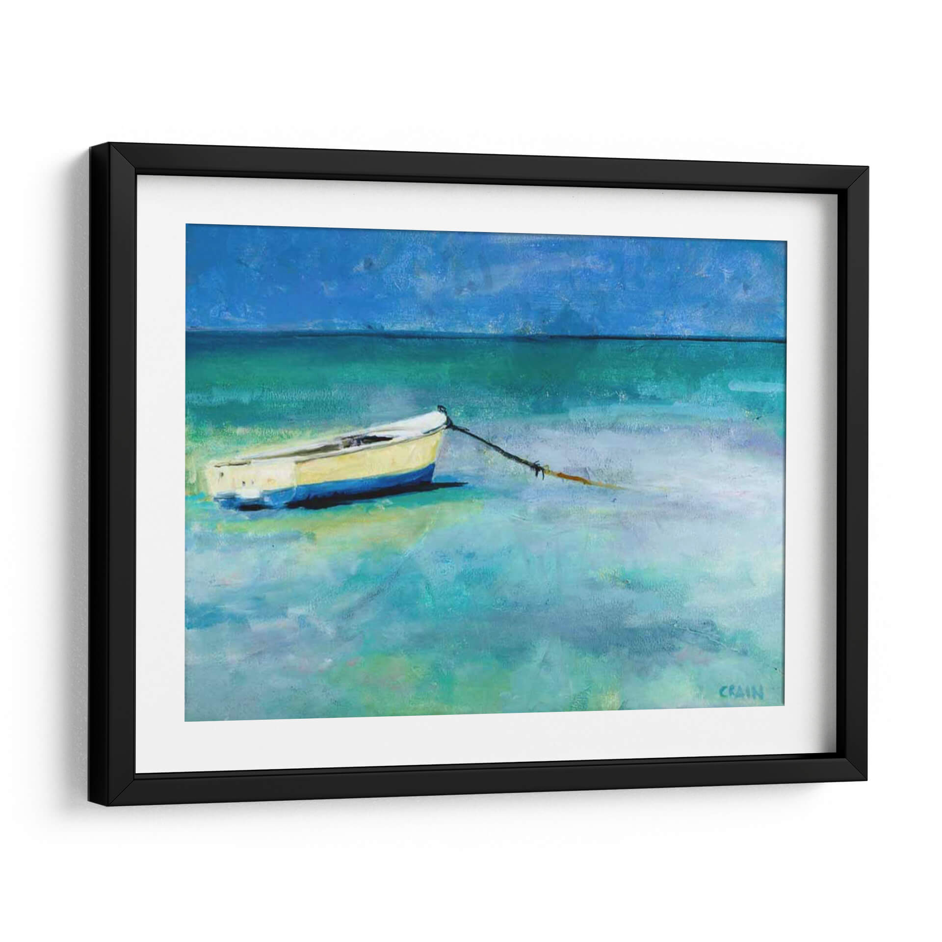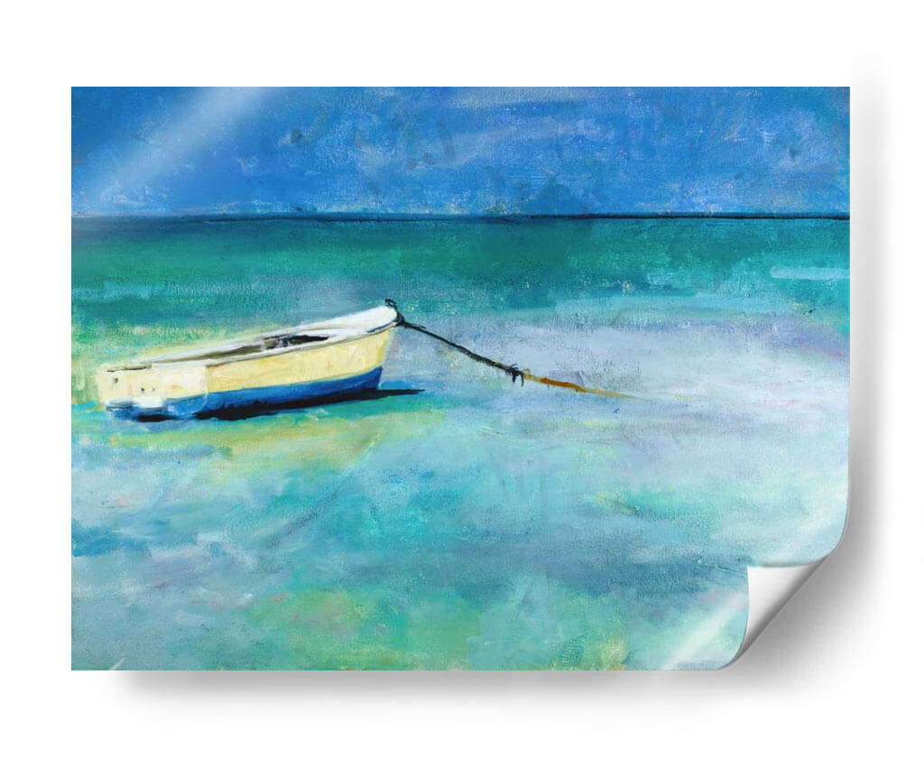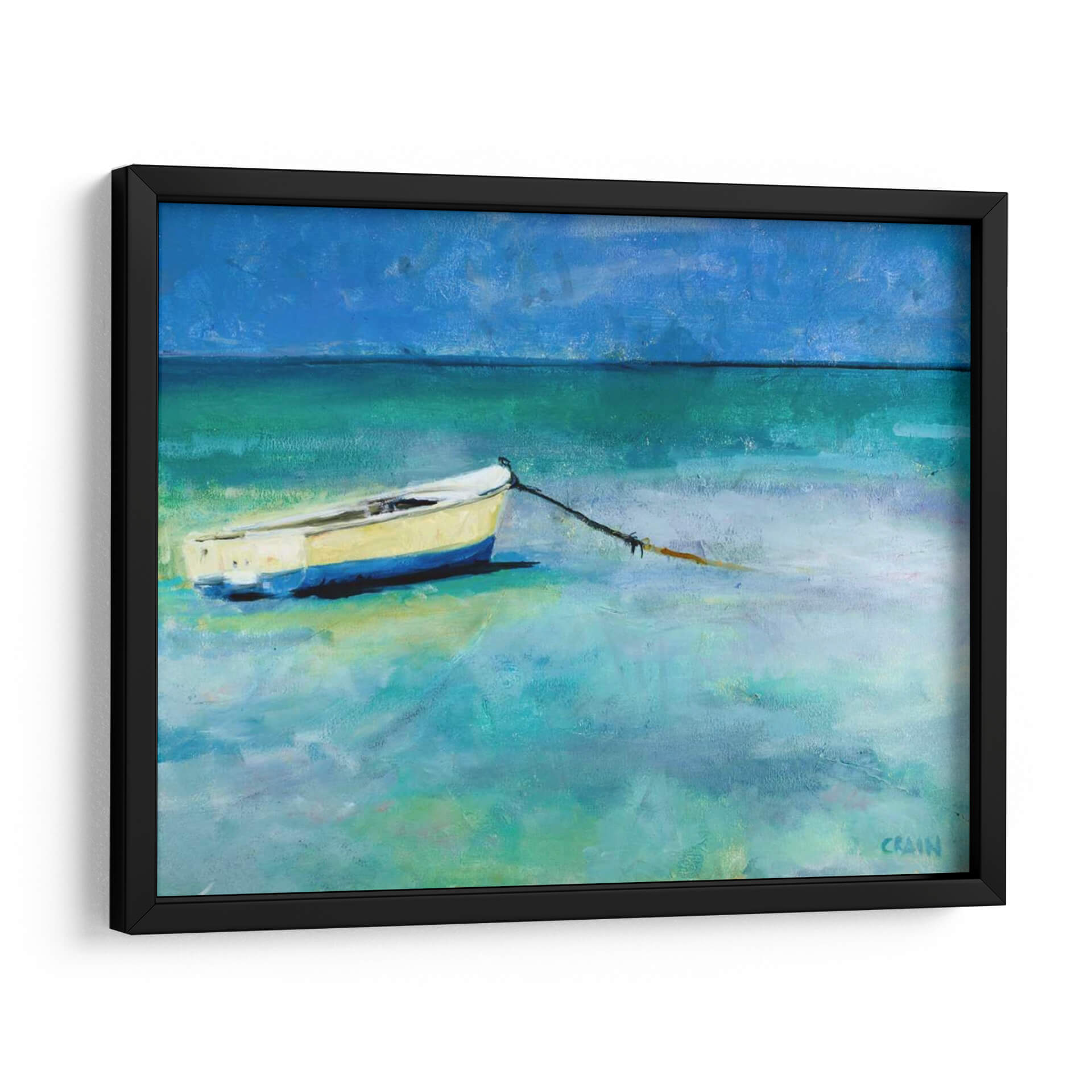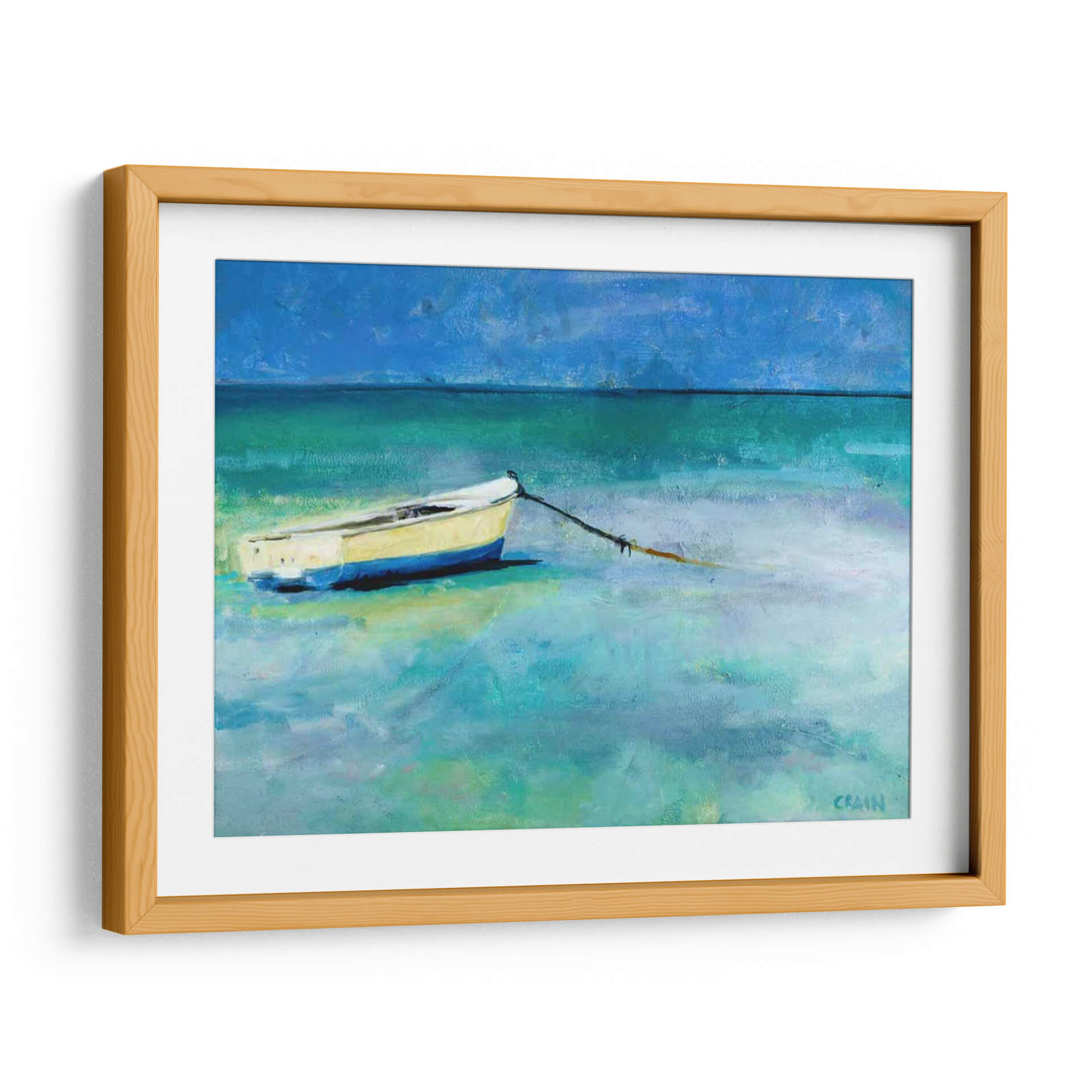 Sumérgete en la serena belleza del mar con "Taxi Acuático", una cautivadora obra de arte de Curt Crain. Este cuadro decorativo captura un solitario bote amarillo y azul flotando sobre aguas cristalinas, evocando una profunda sensación de calma y tranquilidad. La vibrante paleta de azules intensos y verdes turquesas, con sutiles toques de amarillo, crea una atmósfera relajante y refrescante, perfecta para transformar cualquier espacio en un oasis de paz. El estilo pictórico y la pincelada suelta de Crain añaden una textura rica y una sensación de movimiento al agua, invitando al espectador a contemplar la inmensidad y la pureza del océano. "Taxi Acuático" es más que una simple decoración; es una invitación a desconectar del ajetreo diario y reconectar con la naturaleza. Ideal para salones, dormitorios o estudios que buscan un toque de serenidad costera y un punto focal artístico lleno de color. Añade esta pieza única a tu colección y deja que su atmósfera pacífica inunde tu hogar, recordándote la belleza simple y efímera de un día en el mar.