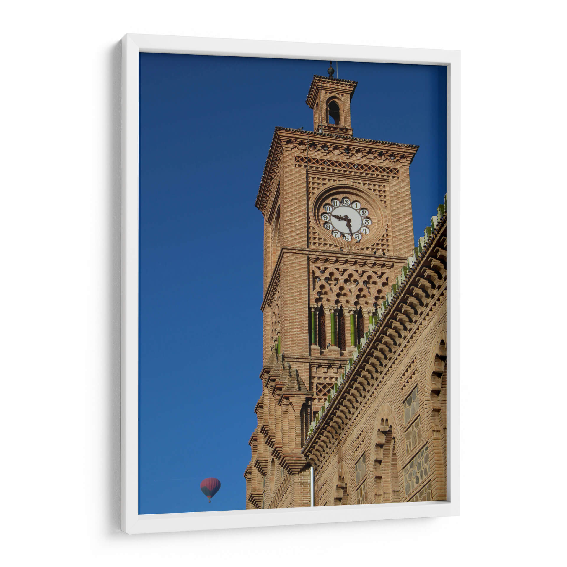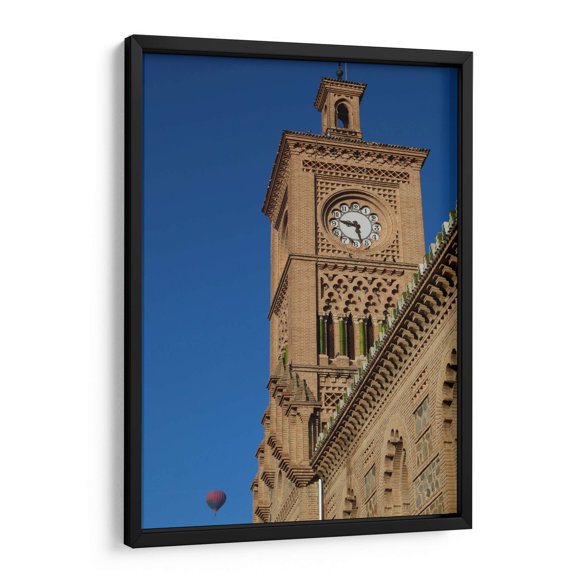 Capta la majestuosidad de la arquitectura histórica con este evocador cuadro decorativo de la "Torre de la estación de trenes en Toledo". La obra, capturada con una perspectiva que realza su imponente presencia, se centra en la detallada fachada de ladrillo de la torre, adornada con intrincados patrones y un gran reloj que parece detener el tiempo. El vibrante cielo azul profundo actúa como un telón de fondo sereno, contrastando maravillosamente con los tonos cálidos y terrosos de la construcción. Un toque de color y dinamismo se añade con la presencia de un globo aerostático solitario flotando en la distancia, sugiriendo aventura y libertad. Este cuadro decorativo es perfecto para añadir un toque de elegancia, historia y un aire de exploración a cualquier espacio. Ideal para salones, estudios u oficinas, inspira conversaciones y evoca la belleza de los viajes y los momentos atemporales. La composición equilibra la solidez arquitectónica con la ligereza del cielo, creando una pieza visualmente atractiva que combina la fuerza del pasado con la serenidad del presente. Transforma tu hogar u oficina en una galería personal con esta impresionante representación de un hito arquitectónico, invitando a la contemplación y al asombro en tu día a día.