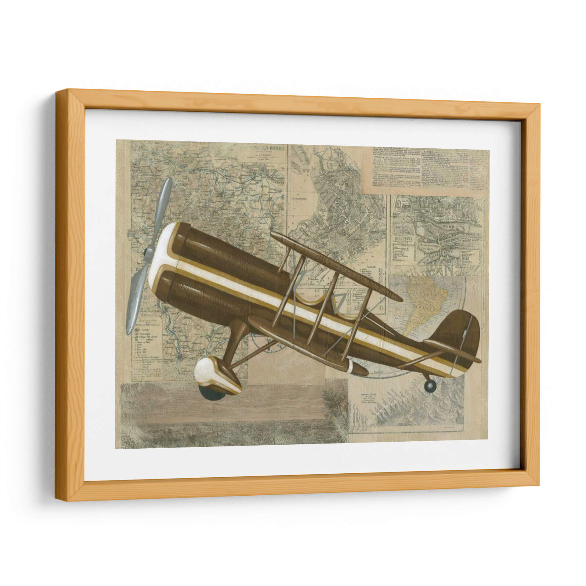 Embárquese en un viaje a través del tiempo y el espacio con "Tour Por Avión I", una cautivadora obra de arte de Chariklia Zarris. Esta pieza evoca una sensación de aventura y nostalgia, presentando un biplano detallado en tonos marrones y dorados que parece flotar sobre un collage de mapas antiguos. Los colores cálidos y terrosos, combinados con las texturas sutiles de los mapas y los fragmentos de texto, crean una atmósfera de exploración y descubrimiento. El estilo artístico, que mezcla elementos realistas con una estética de collage vintage, lo convierte en un punto focal intrigante para cualquier espacio. Ideal para darle un toque de carácter a una oficina en casa, una sala de estar o incluso un dormitorio con temática de viajes. "Tour Por Avión I" no es solo una decoración; es una invitación a soñar con horizontes lejanos y la emoción de la aviación temprana. Los detalles intrincados del avión y la superposición de mapas invitan a la contemplación, haciendo de esta pieza un tema de conversación garantizado. Añada un toque de sofisticación vintage y un espíritu aventurero a su hogar con este cuadro decorativo único.