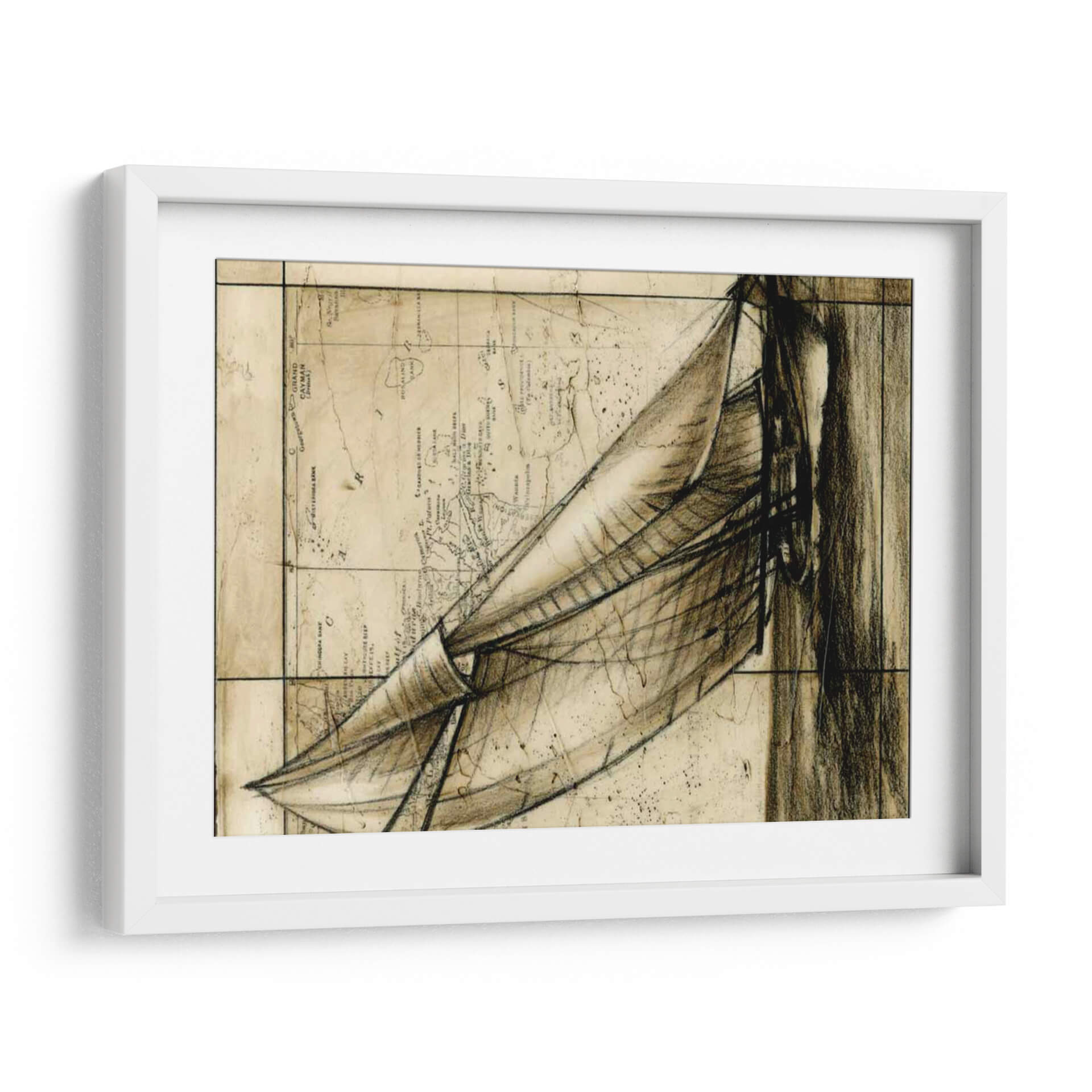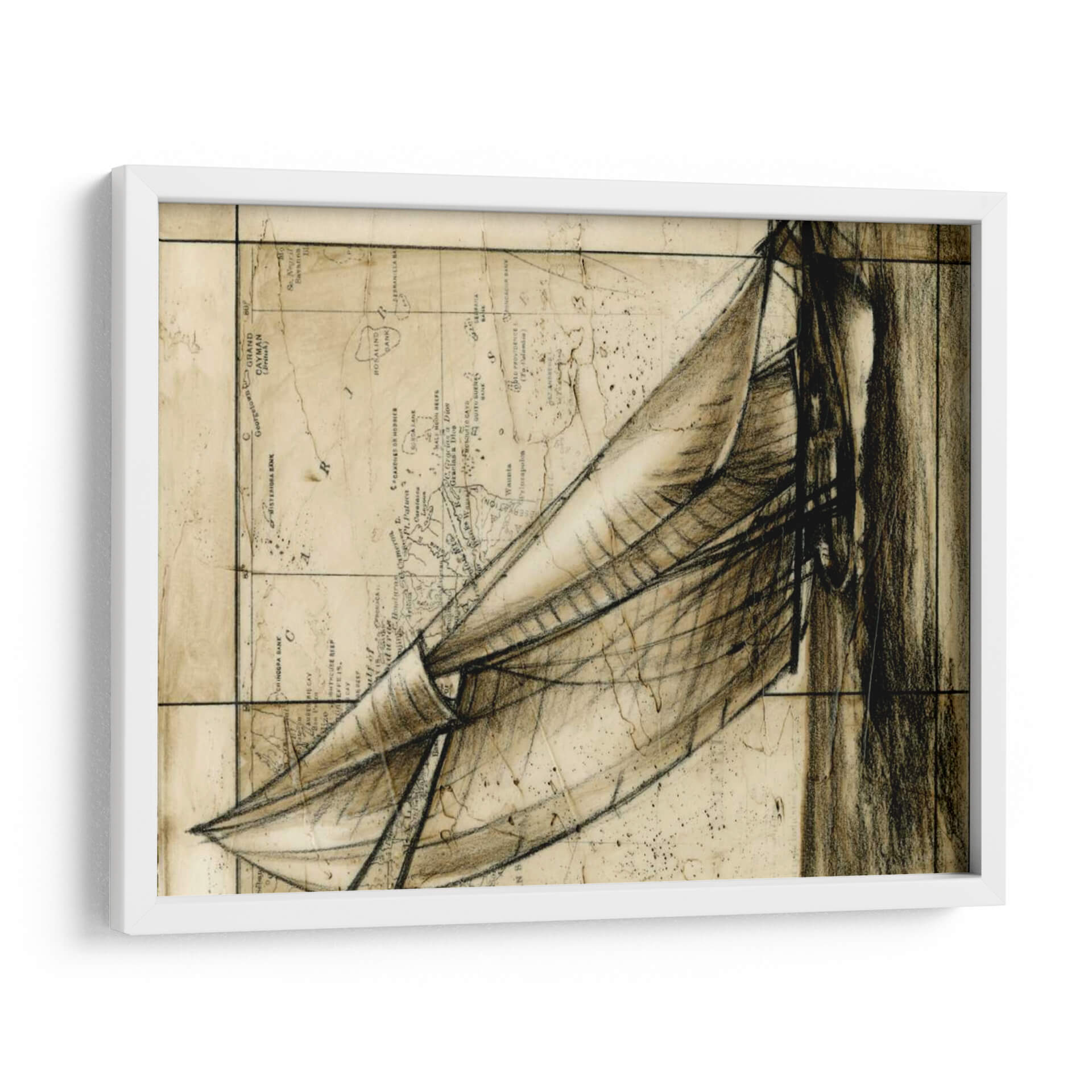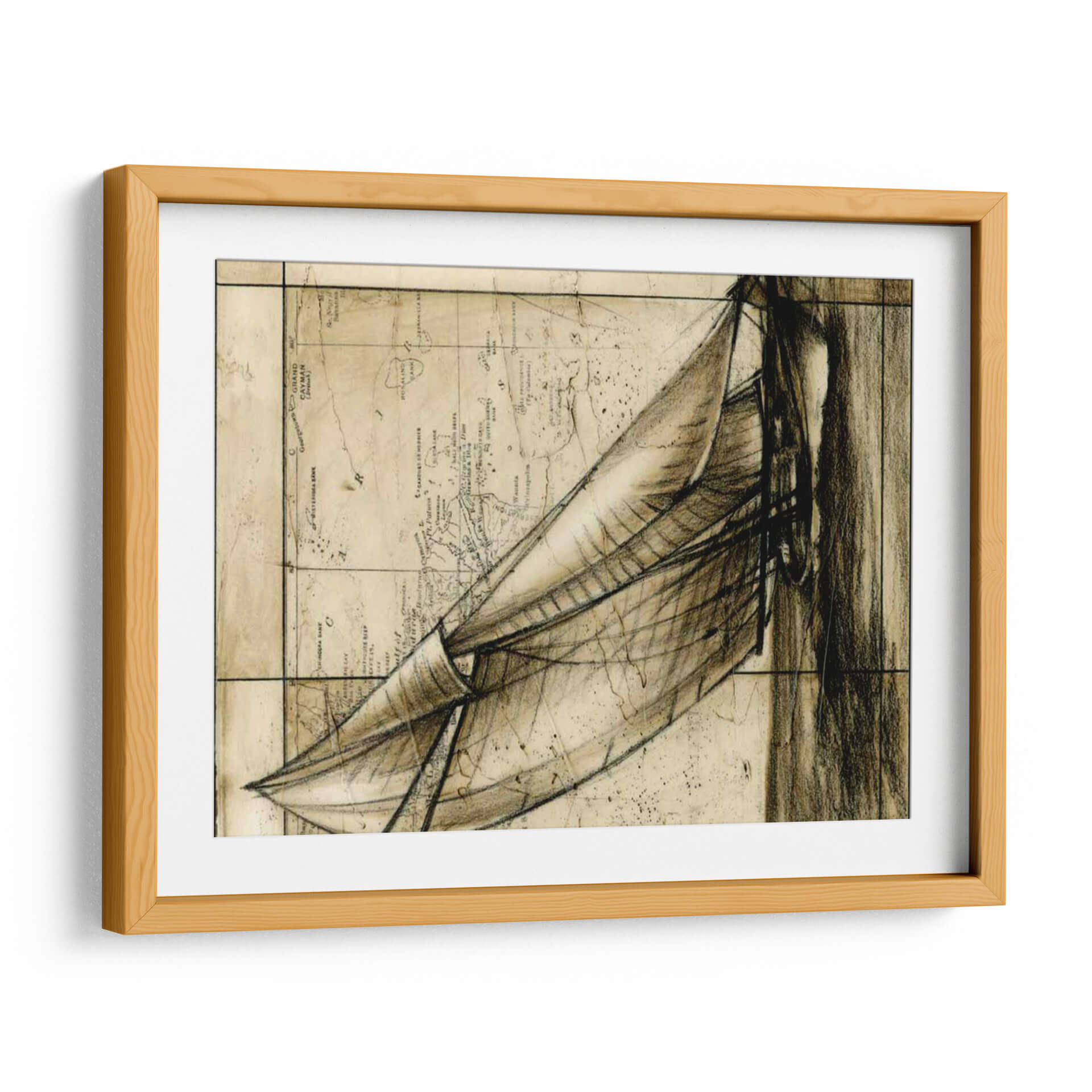 Sumérgete en la evocadora obra de arte 'Tradewinds II' de Ethan Harper, una pieza que captura la esencia de la navegación y la aventura con un estilo distintivo. Este cuadro decorativo presenta una vela de barco dibujada con trazos de carboncillo y lápiz sobre un fondo que simula un antiguo mapa náutico, evocando un aire de misterio y exploración. La paleta de colores se centra en tonos sepia y ocres, creando una atmósfera nostálgica y serena que transporta al espectador a épocas pasadas. La técnica de sombreado y el detalle en las líneas confieren profundidad y realismo a la vela, contrastando sutilmente con la textura desgastada del mapa. Ideal para espacios que buscan un toque de sofisticación vintage y un guiño a los viajes y descubrimientos. 'Tradewinds II' es perfecto para añadir un punto de interés y conversación a tu sala de estar, estudio u oficina, inspirando sueños de horizontes lejanos y la libertad del mar. Una elección artística que combina la delicadeza del dibujo con la robustez del espíritu explorador, aportando carácter y elegancia a cualquier decoración.
