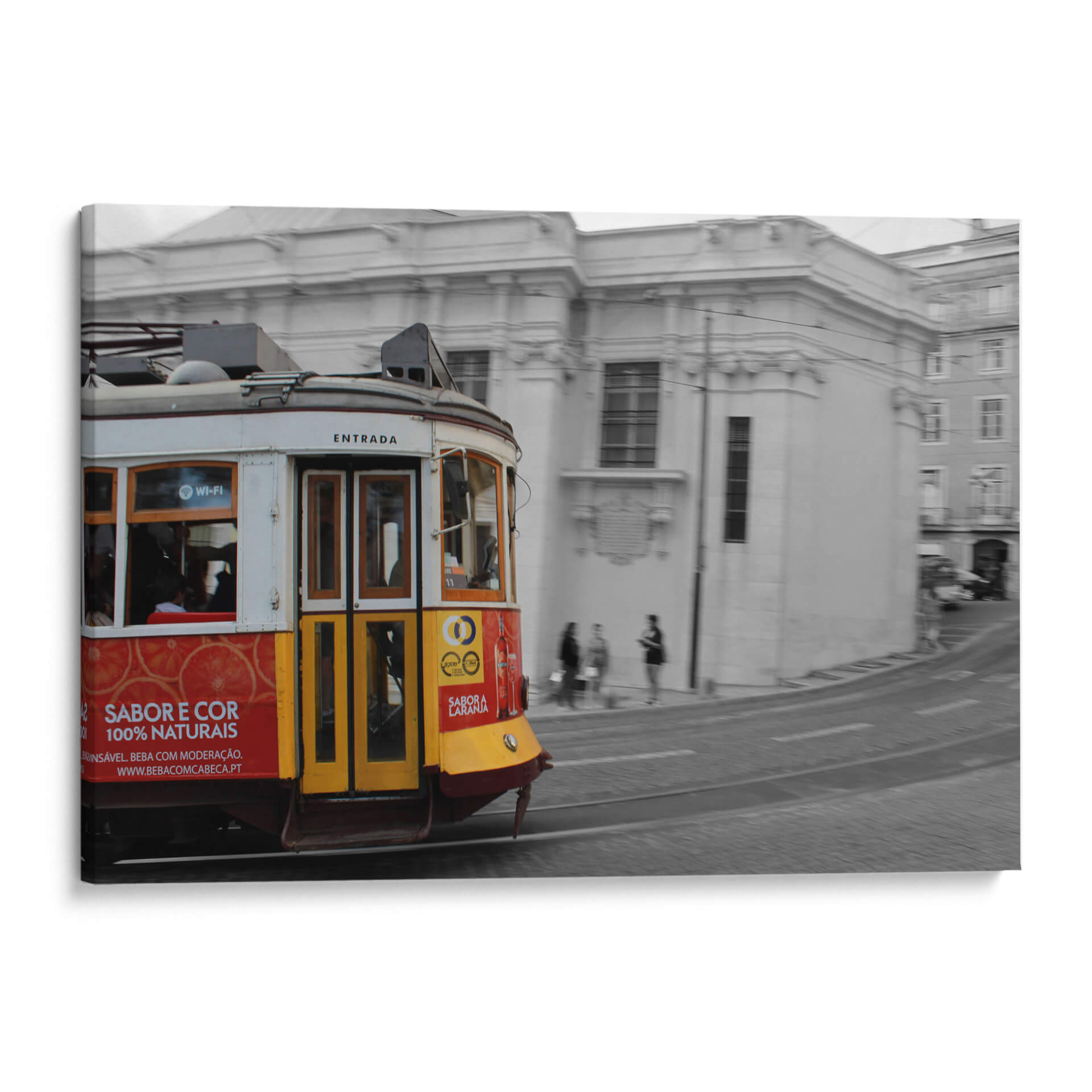 Captura la esencia vibrante de Lisboa con este cautivador cuadro decorativo de un tranvía clásico en movimiento. La obra, titulada 'Tren a Lisboa' por Carlos Franken, fusiona la arquitectura urbana en escala de grises con el protagonismo de un icónico tranvía amarillo y rojo, creando un contraste visual impactante. Los detalles del tranvía, como sus ventanas de madera y los anuncios publicitarios, añaden una capa de autenticidad y vida a la escena. La composición, con el tranvía capturado en pleno recorrido por las adoquinadas calles de la ciudad, evoca una sensación de movimiento y viaje, transportando al espectador directamente a las pintorescas calles portuguesas. La paleta de colores, sutilmente utilizada para resaltar el tranvía, permite que los tonos cálidos de este contrasten armónicamente con el fondo más sobrio, generando un punto focal dinámico. Este cuadro es ideal para añadir un toque de carácter y nostalgia a cualquier espacio, desde salas de estar modernas hasta estudios de trabajo o pasillos, invitando a la reflexión sobre la belleza de los viajes y la vida urbana. Transforma tu hogar u oficina con esta pieza única de arte de pared.