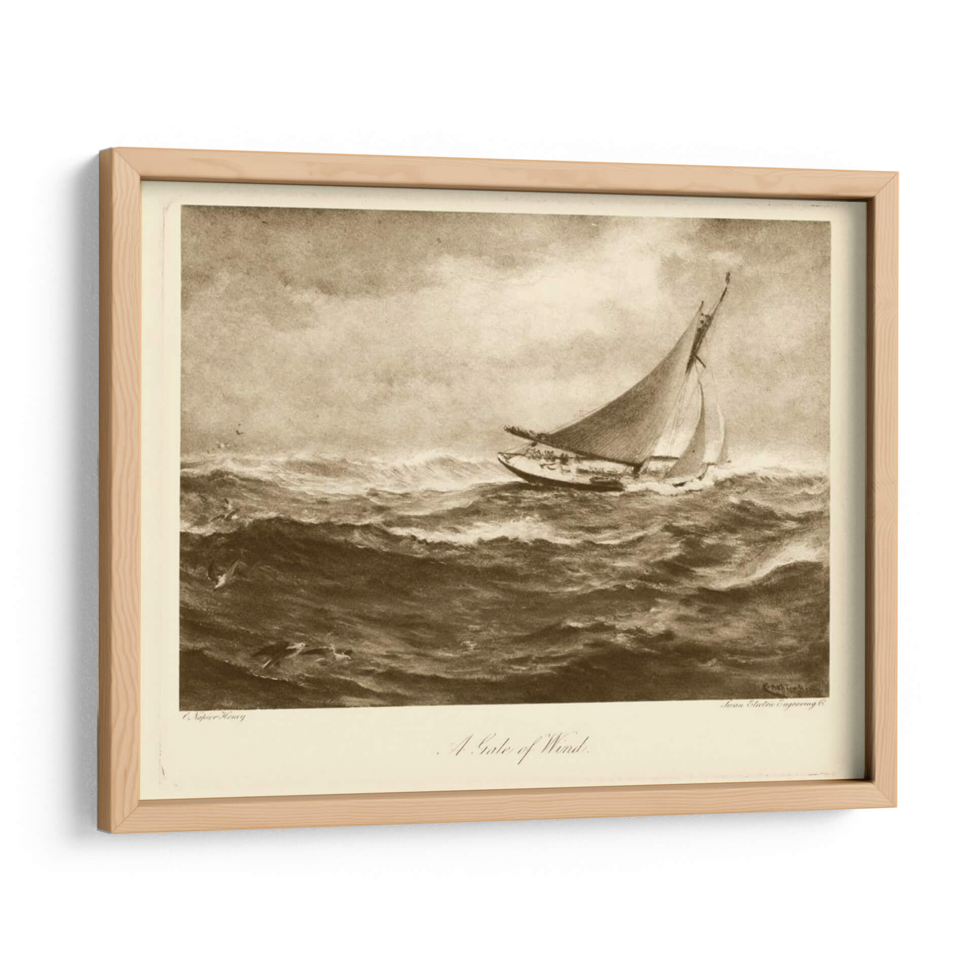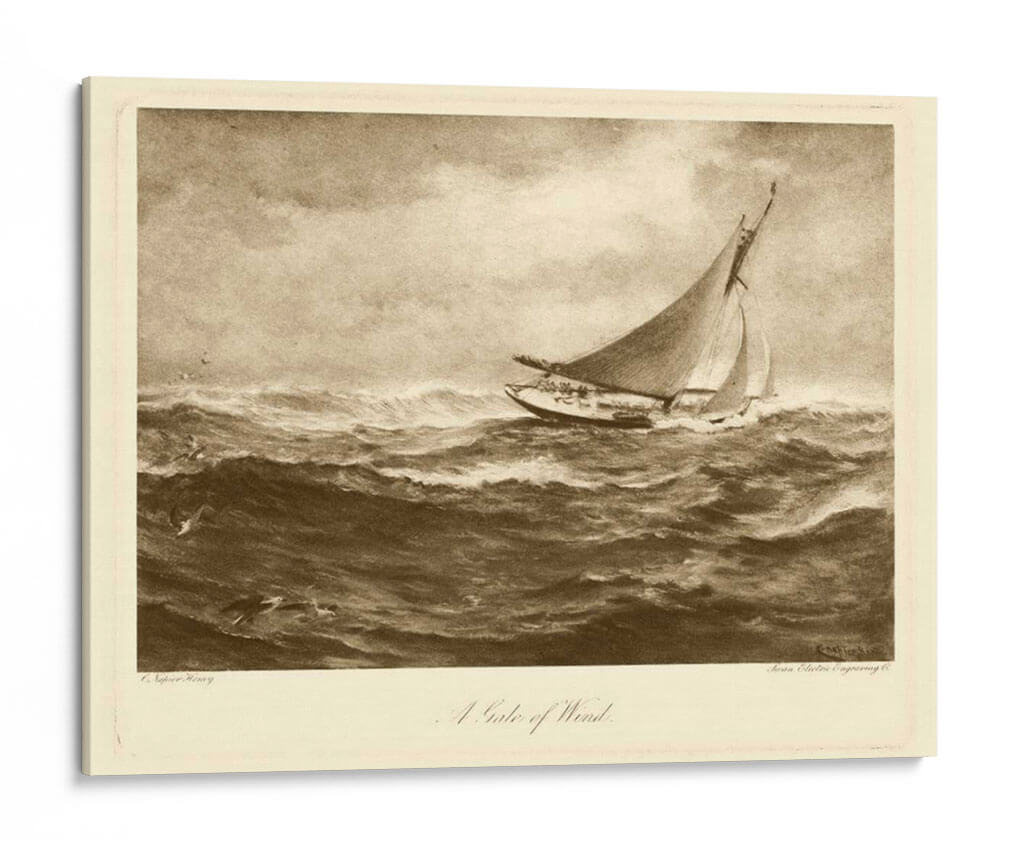 Sumérgete en la fuerza y el dramatismo de 'Un Vendaval de Viento', una obra de arte que captura la majestuosidad de la navegación en alta mar. Este cuadro decorativo retrata un velero luchando contra olas embravecidas y un cielo tormentoso, evocando una sensación de poder indomable y la belleza inherente a la naturaleza salvaje. La paleta de sepia y tonos tierra crea una atmósfera clásica y nostálgica, mientras que la detallada representación de las olas y el viento transmite la intensidad del momento. La composición dinámica, con el velero inclinado por la fuerza del temporal, invita a la contemplación sobre la resiliencia y la aventura. Ideal para salones, estudios o cualquier espacio que busque una dosis de energía y carácter, esta pieza se convertirá en un punto focal que inspira historias de coraje y exploración. Añade un toque de arte marítimo clásico a tu decoración con esta impactante representación de la lucha del hombre contra los elementos.